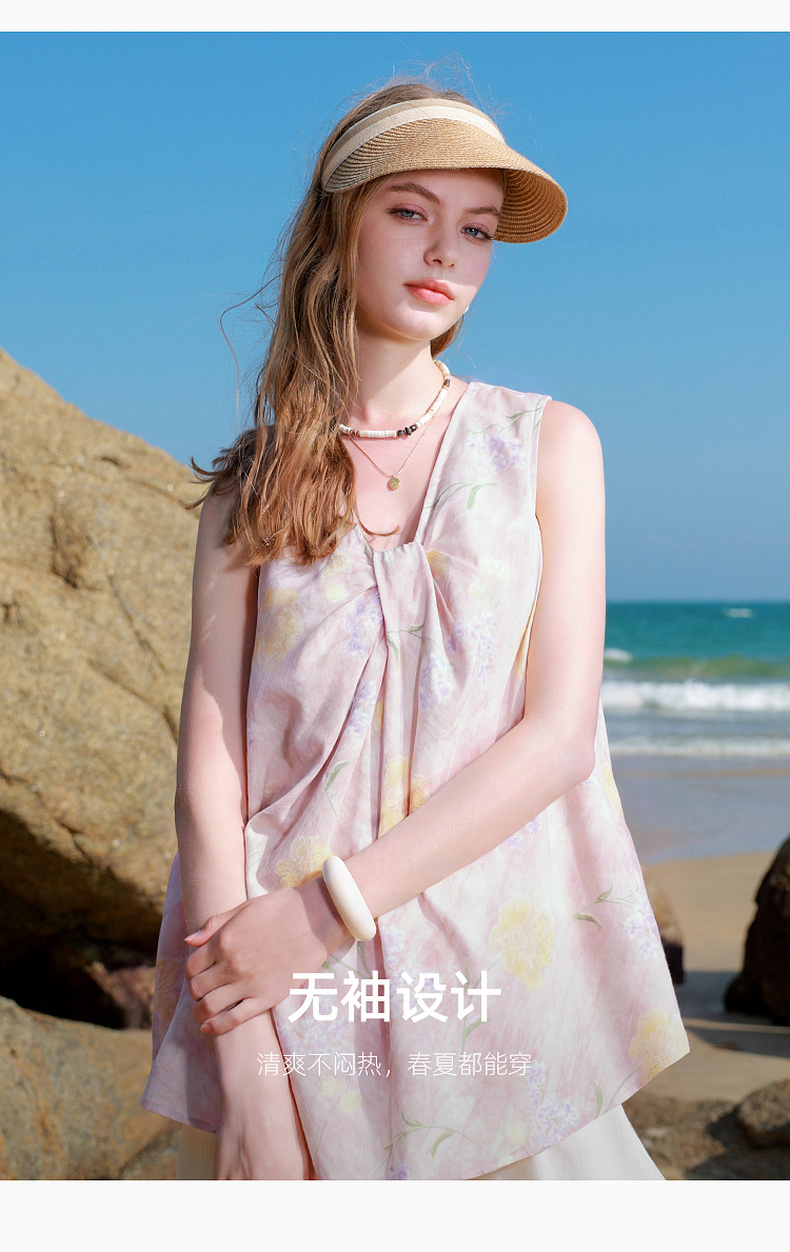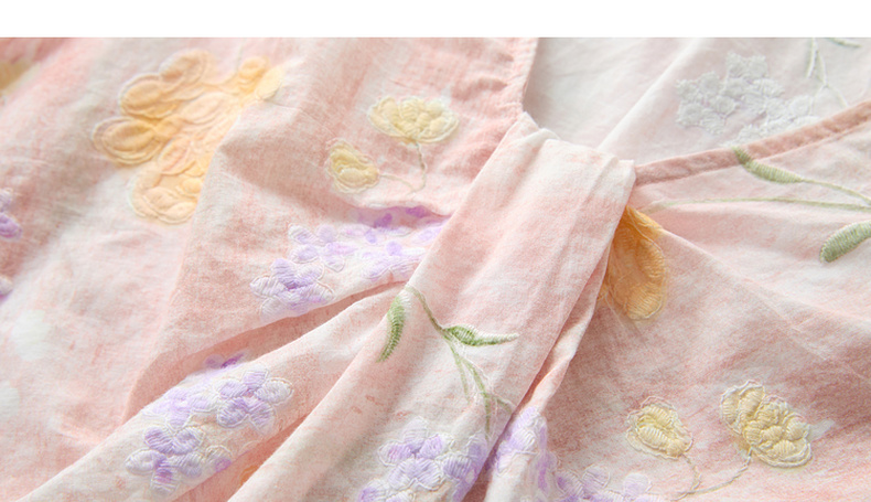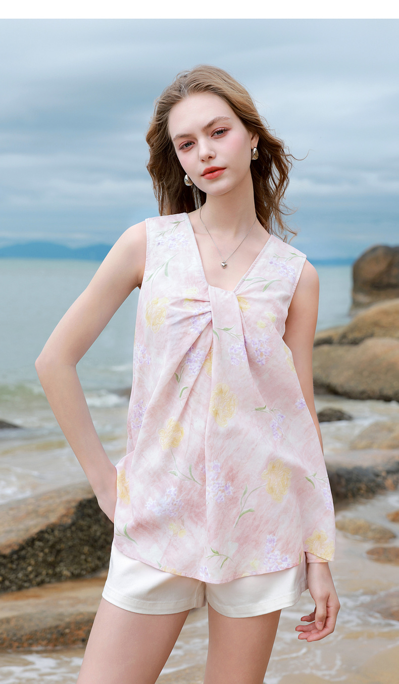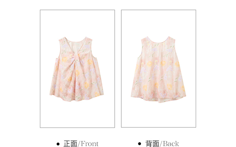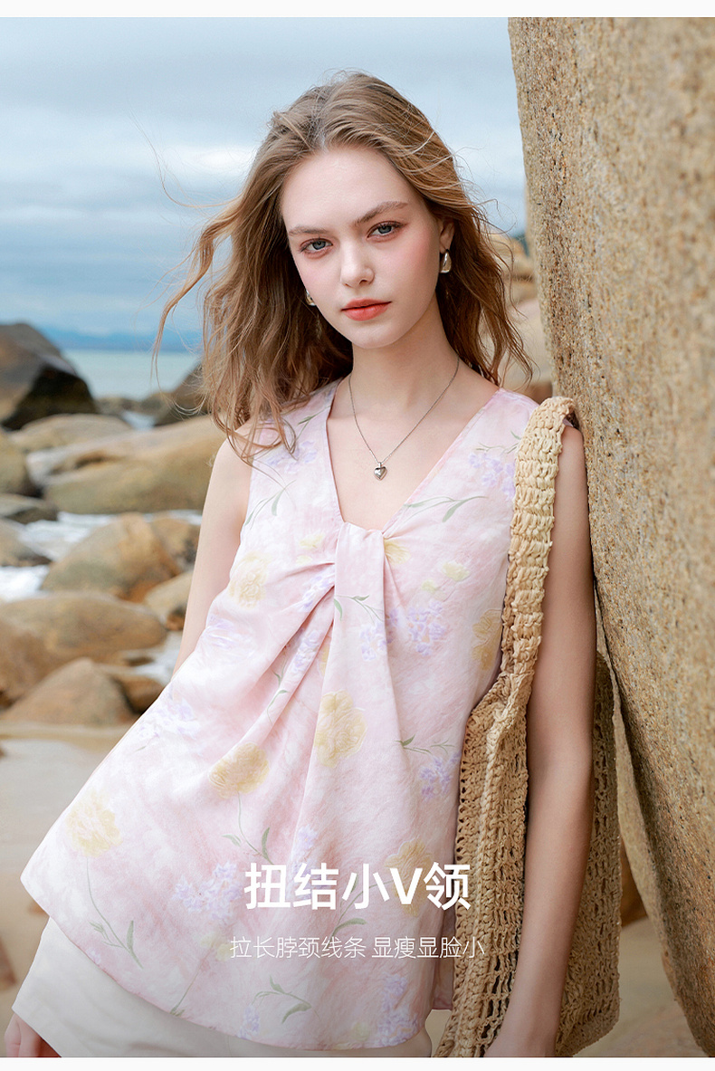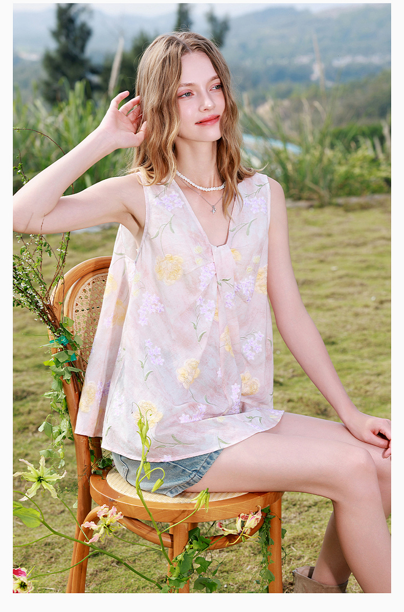 【100棉】三彩2026春季新款V领印花绣花小衫衬衣宽松娃娃衫M