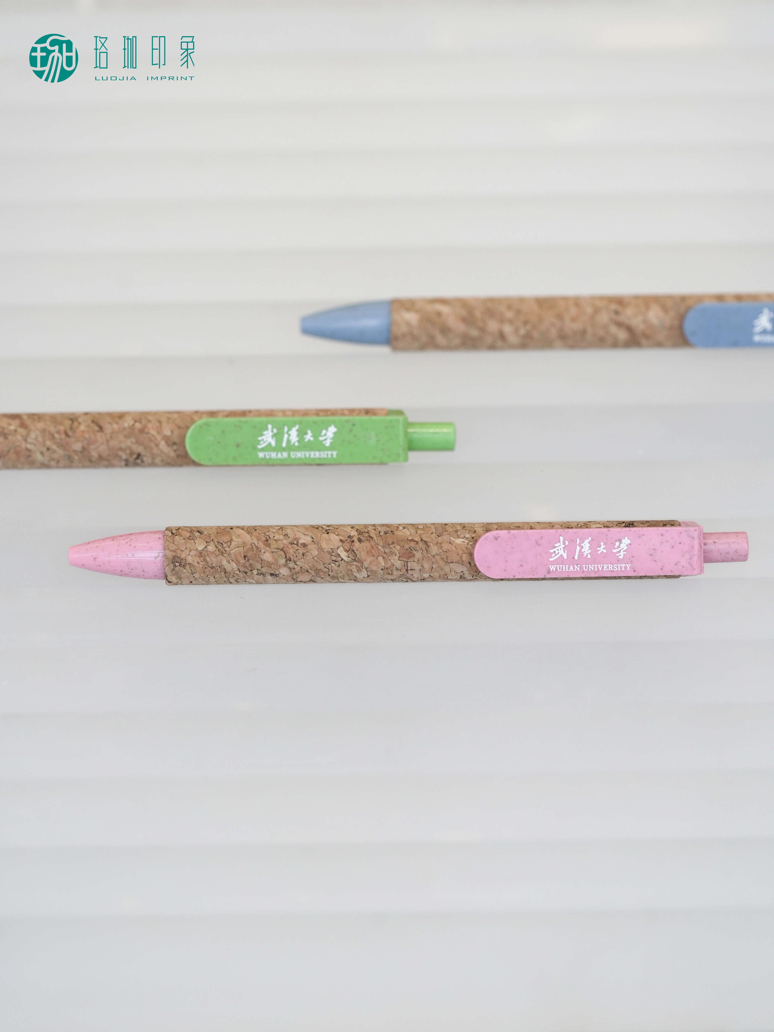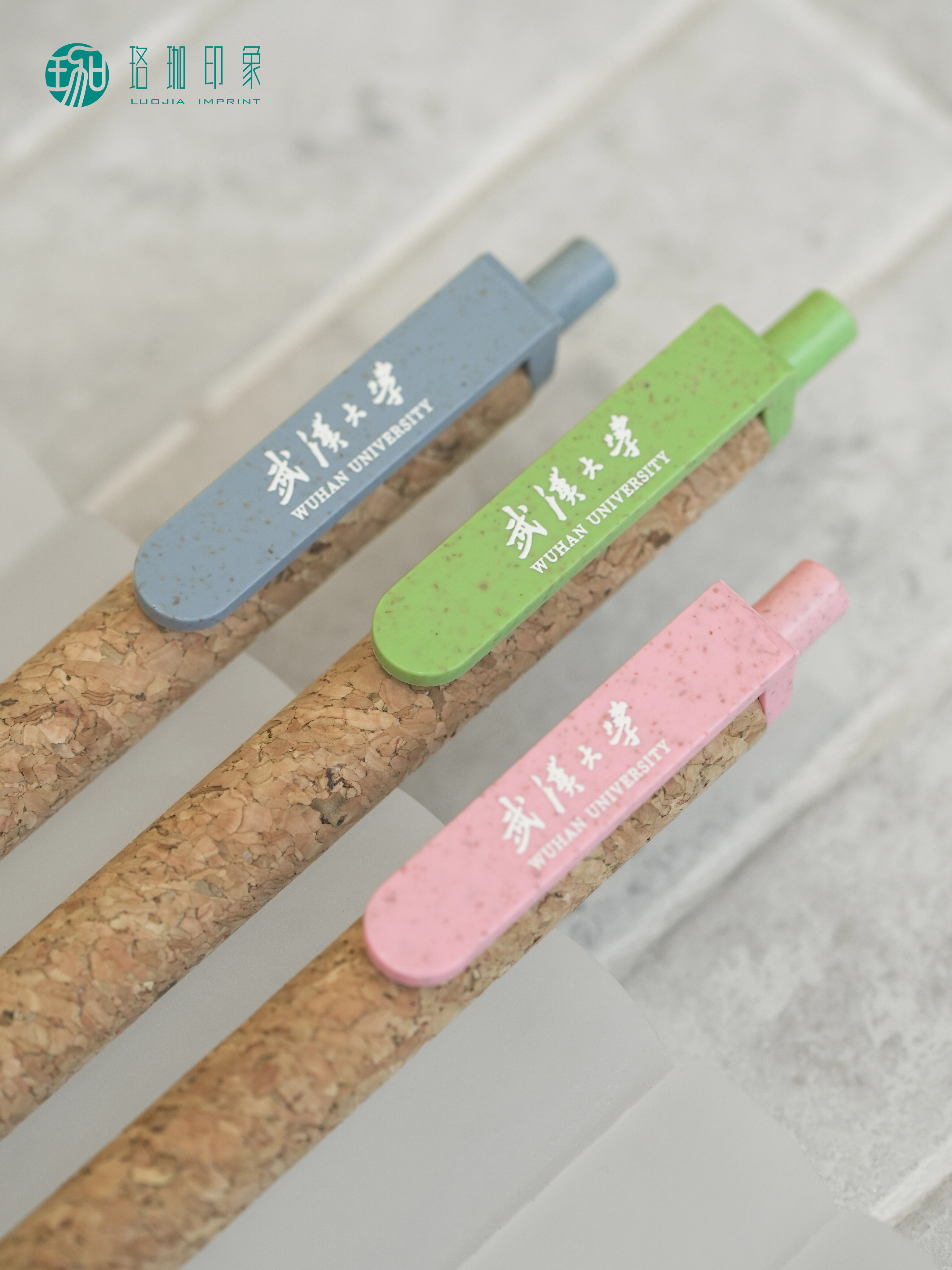 笔夹处印刻武大校名标识,粉蓝绿三色可选,笔杆上的细微气孔,是树木留给世界的吻痕,你的每一次书写,都在参与这场跨越大陆的绿色循环。
