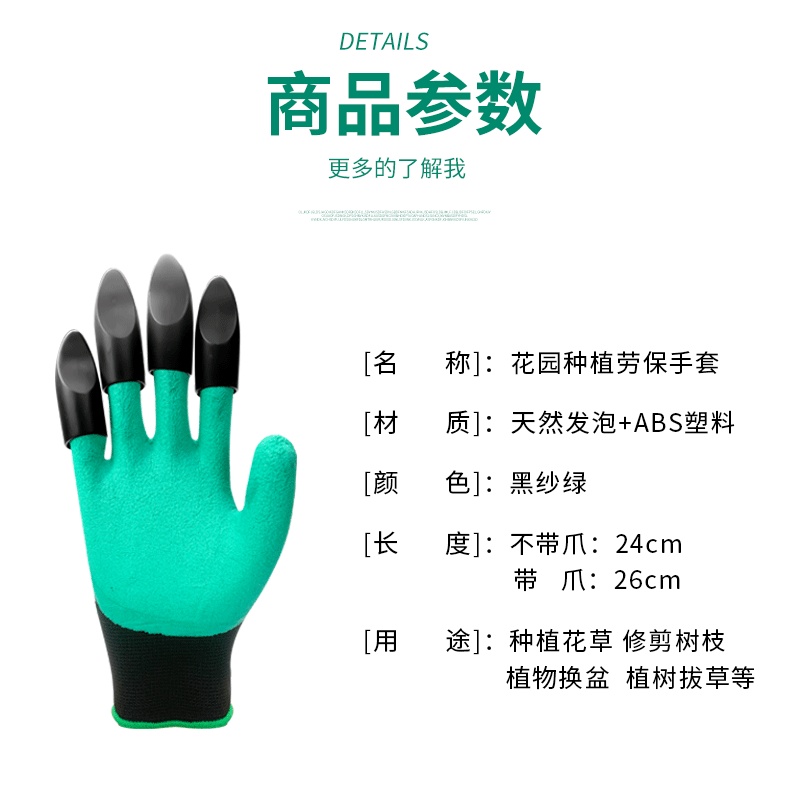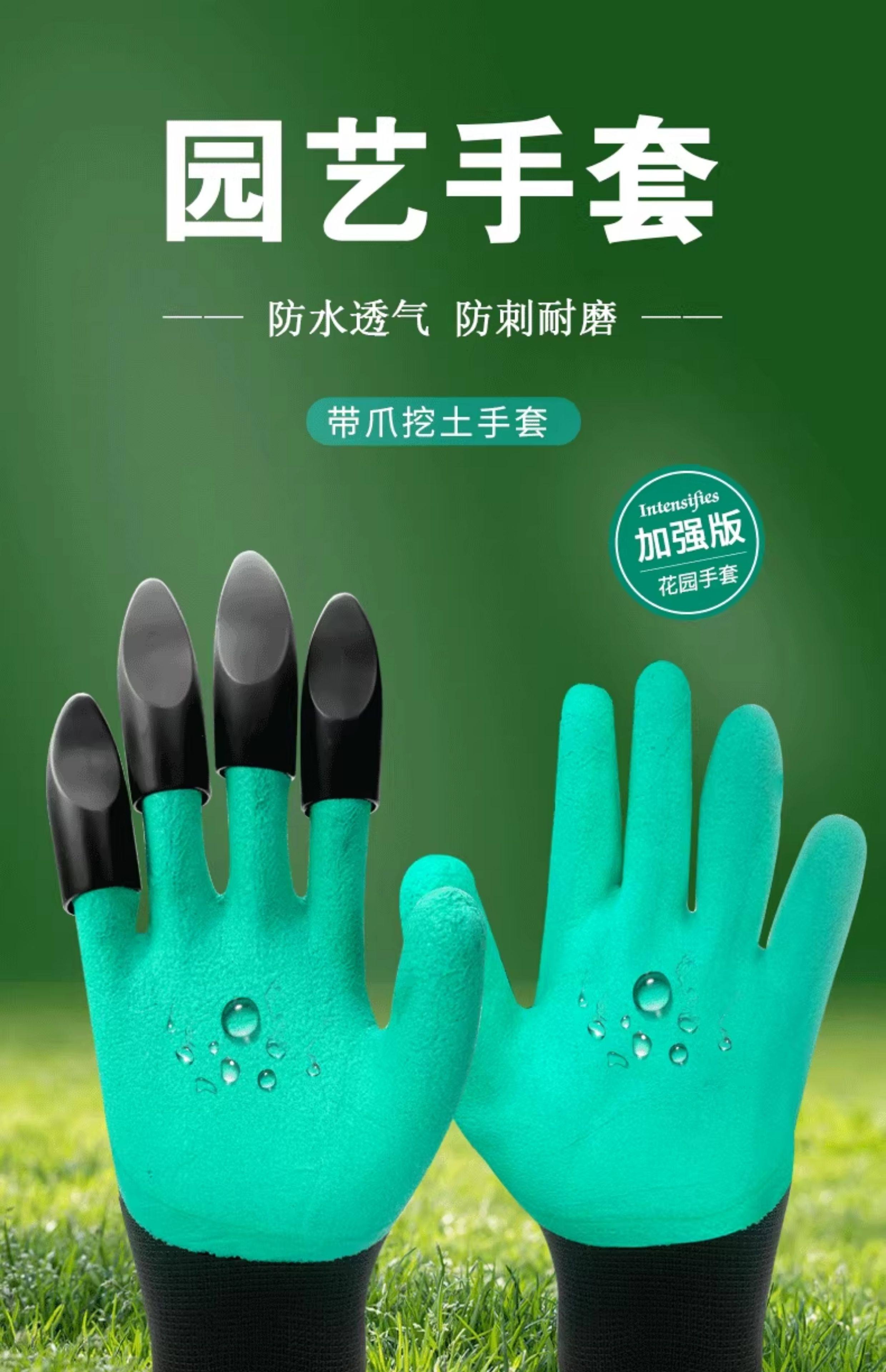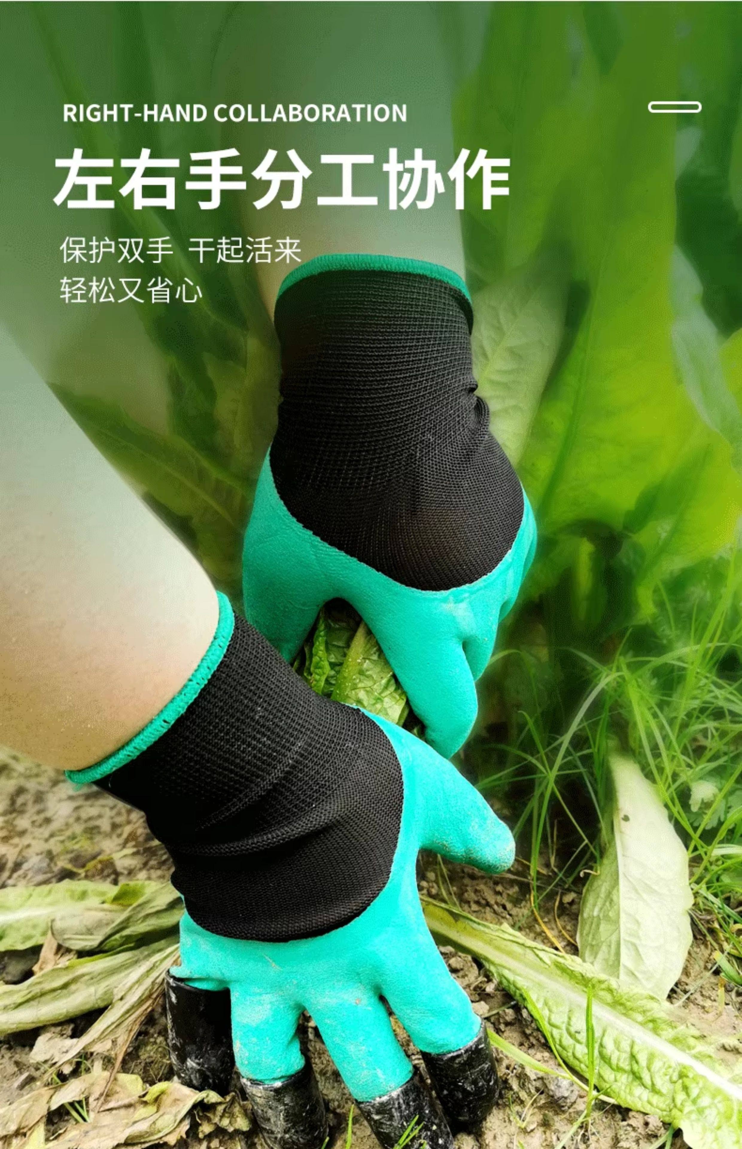 一对 高品质多功能园林园艺专用手套带爪 工作种植挖土种花防扎防刺