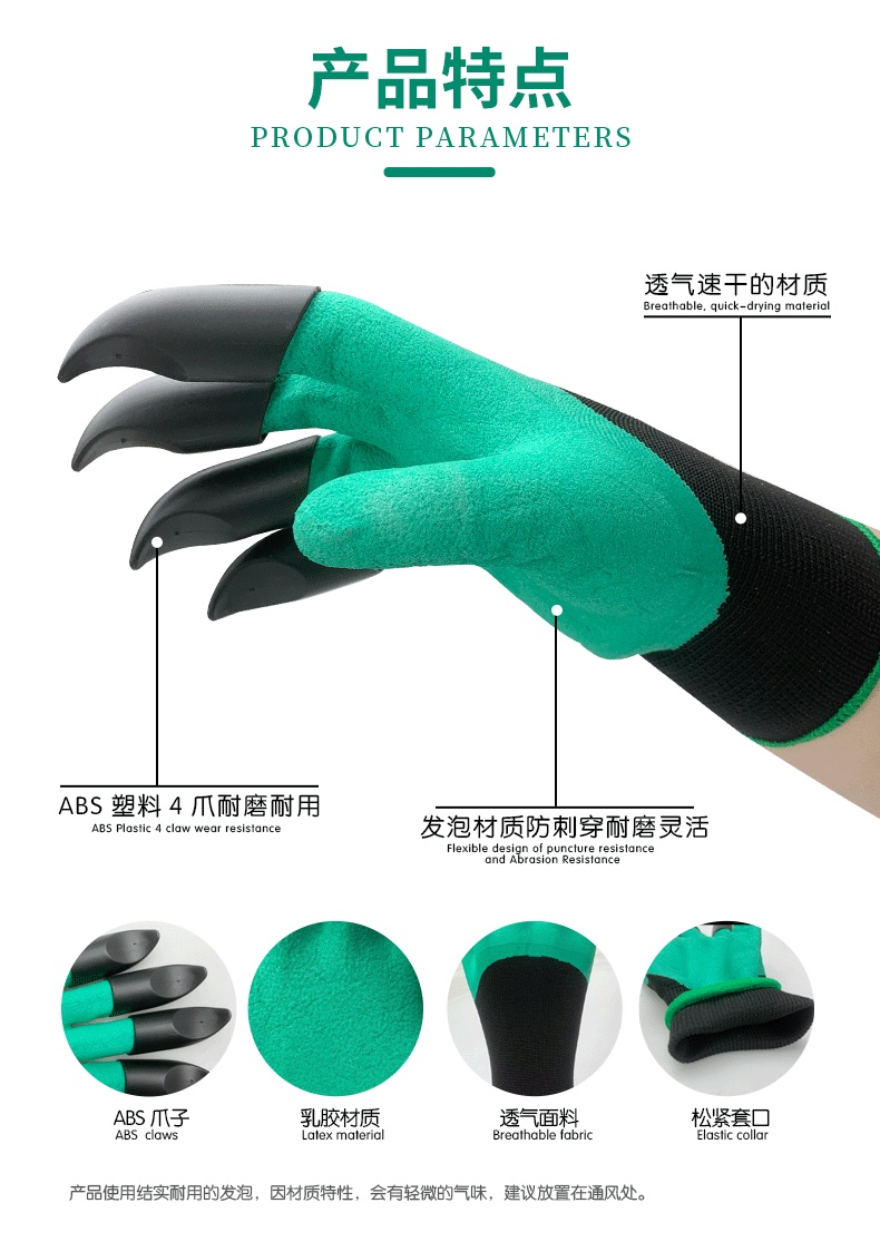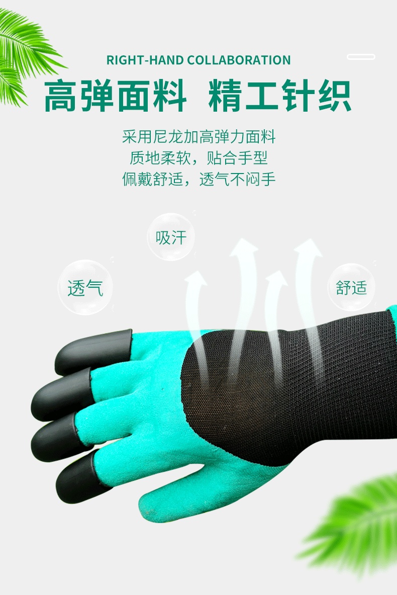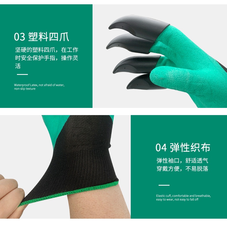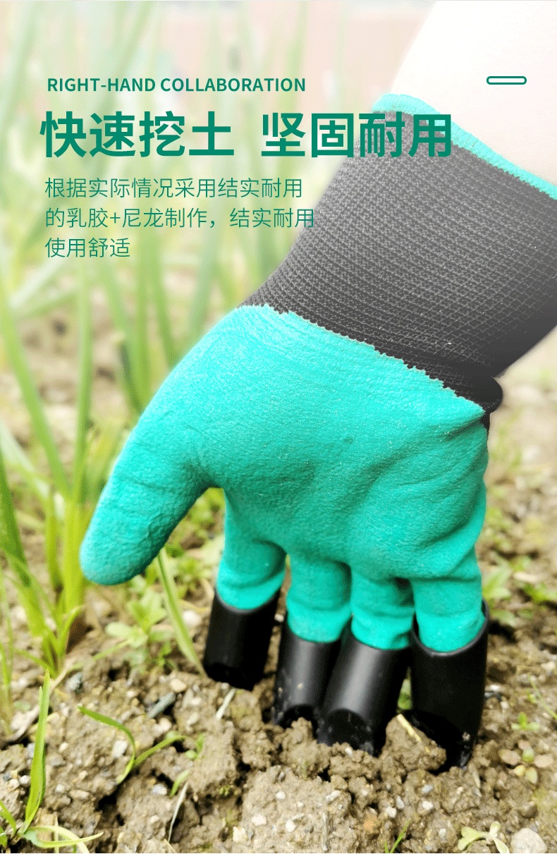一对 高品质多功能园林园艺专用手套带爪 工作种植挖土种花防扎防刺