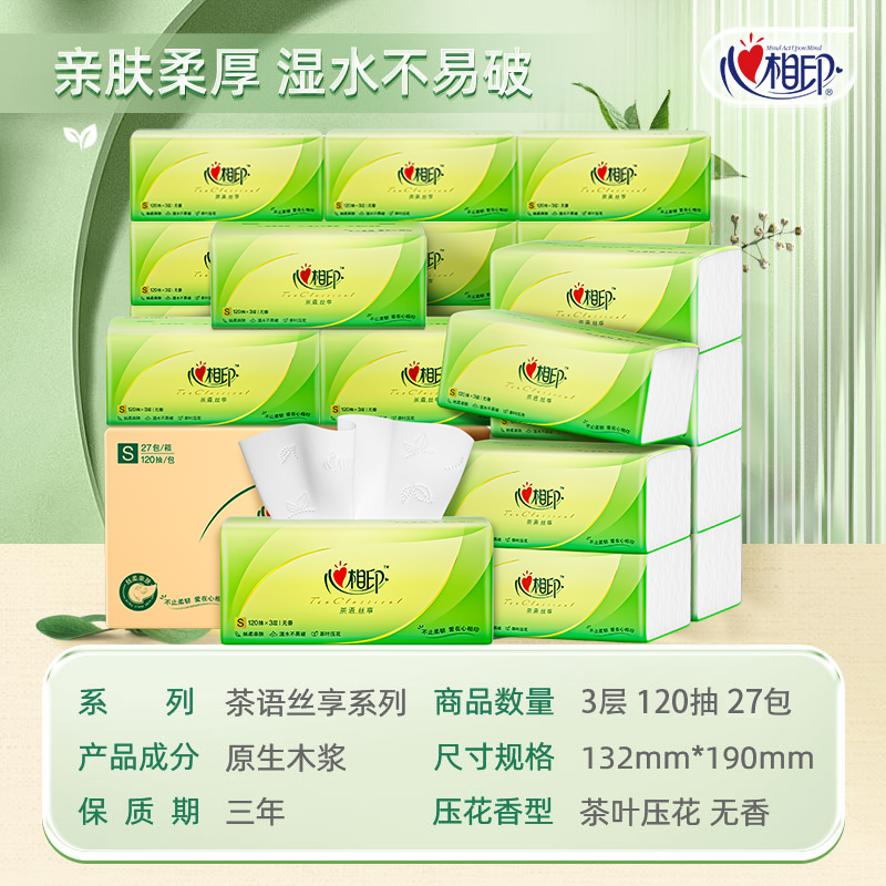 心相印 纸巾 DT15120(箱装)茶语丝享系列120抽18包装三层塑装纸面巾