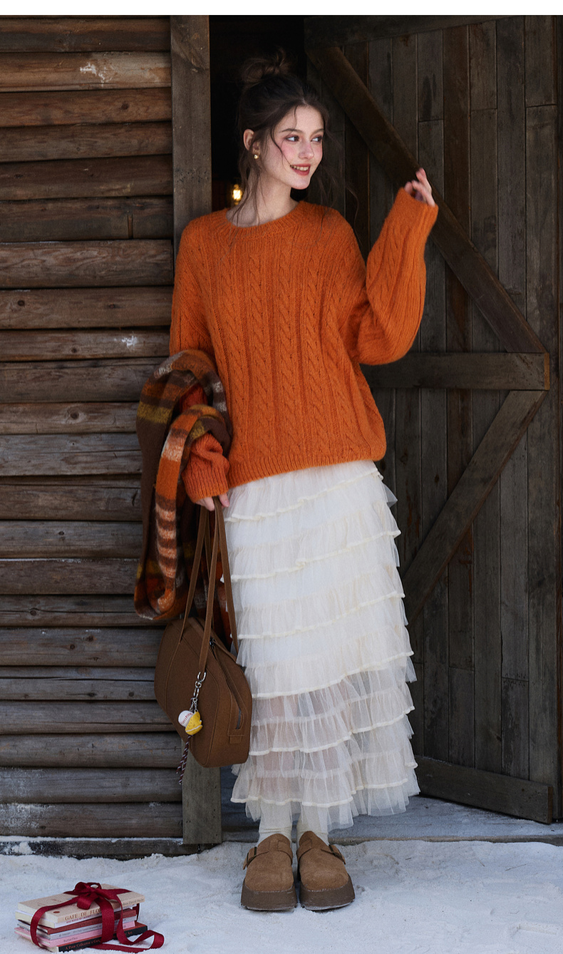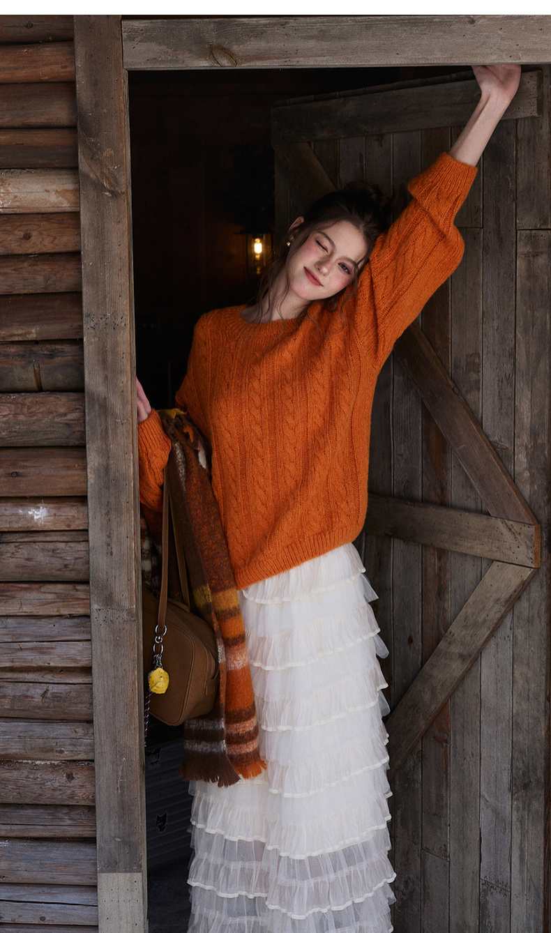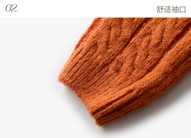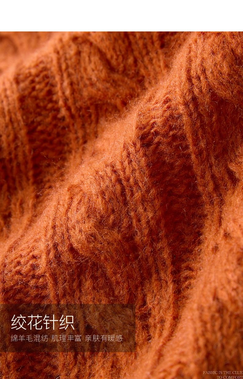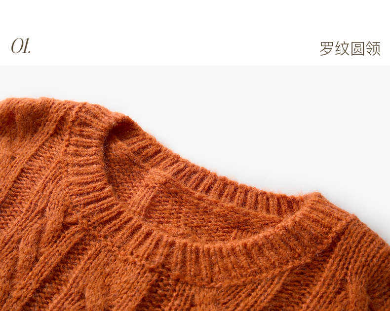 三彩2025冬季新款休闲简约绞花肌理针织衫长袖圆领套头毛衫上衣M