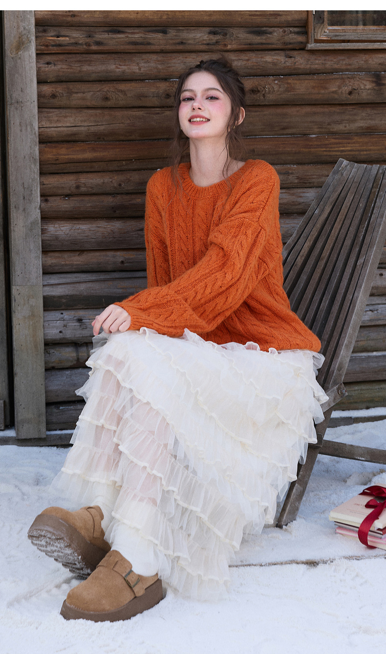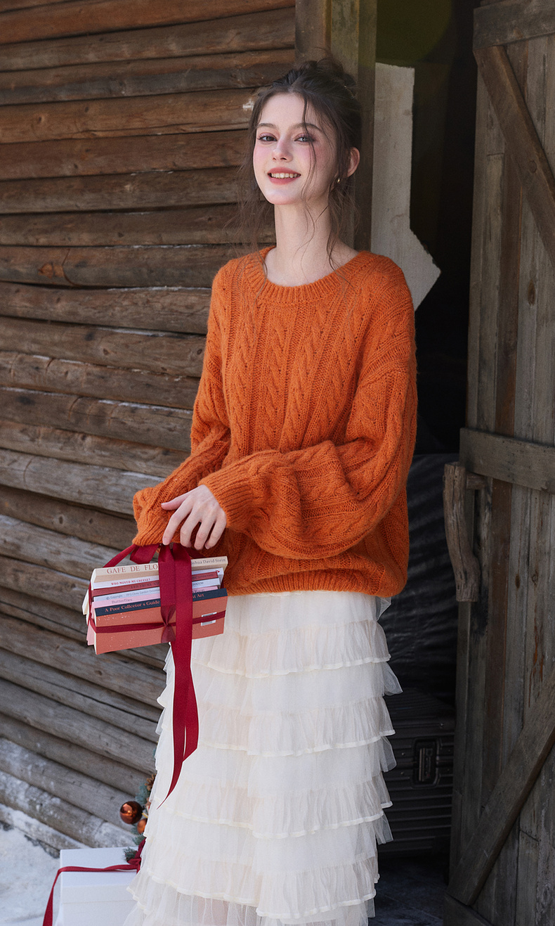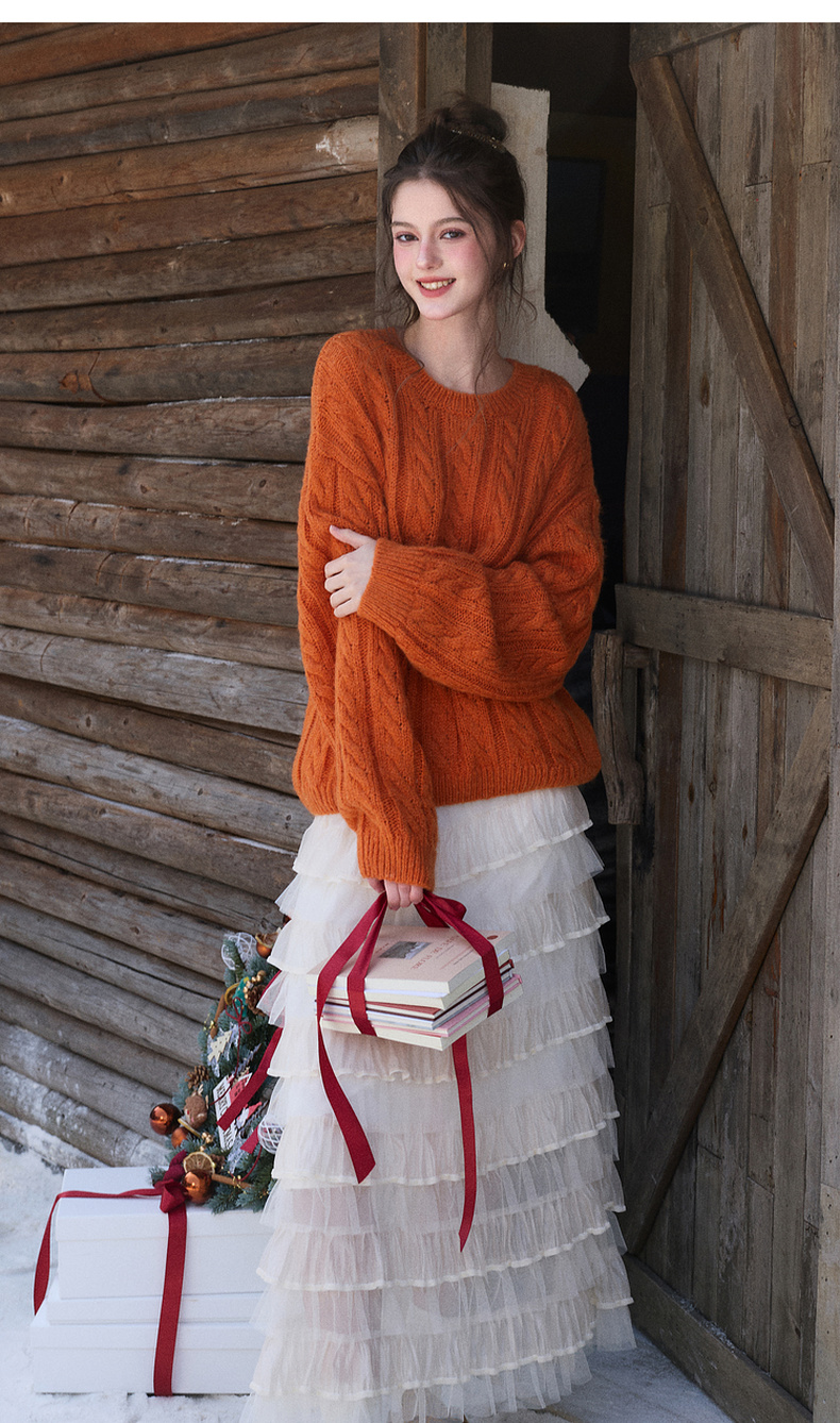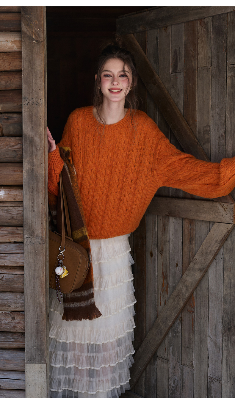 三彩2025冬季新款休闲简约绞花肌理针织衫长袖圆领套头毛衫上衣M