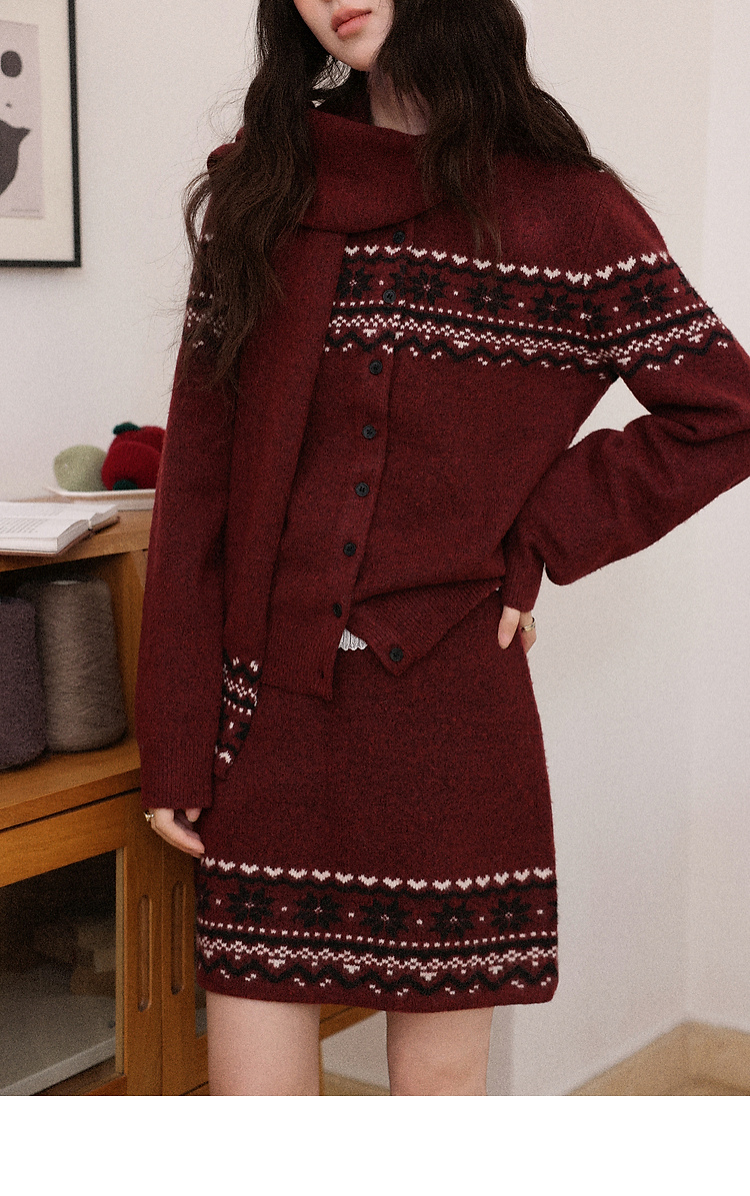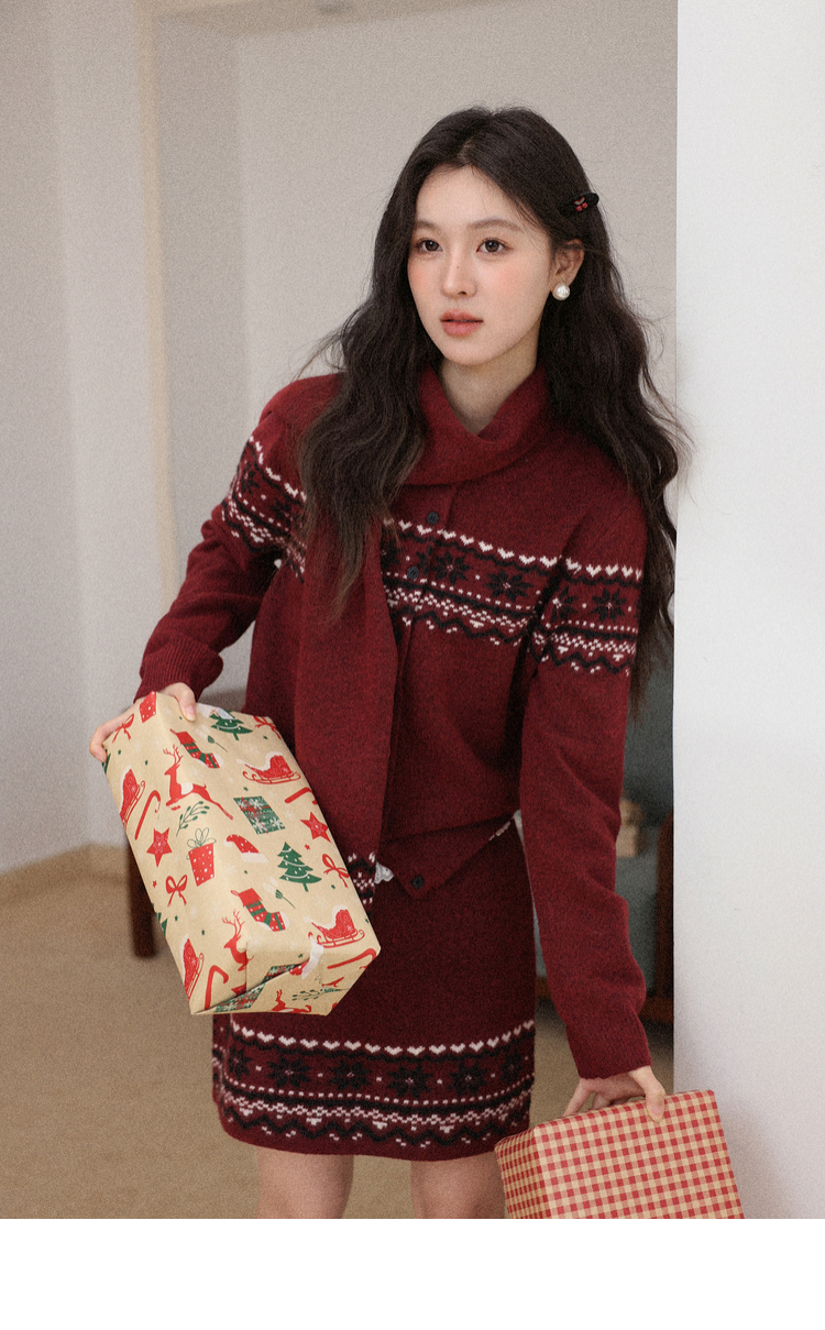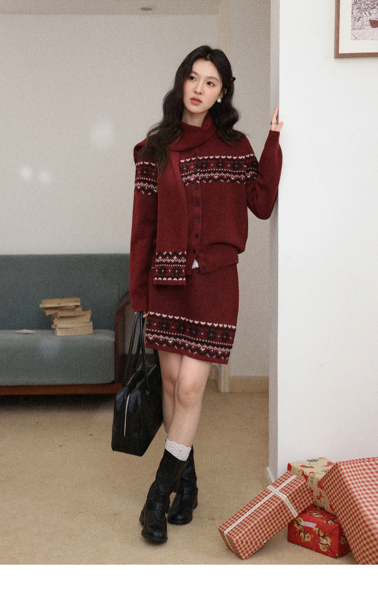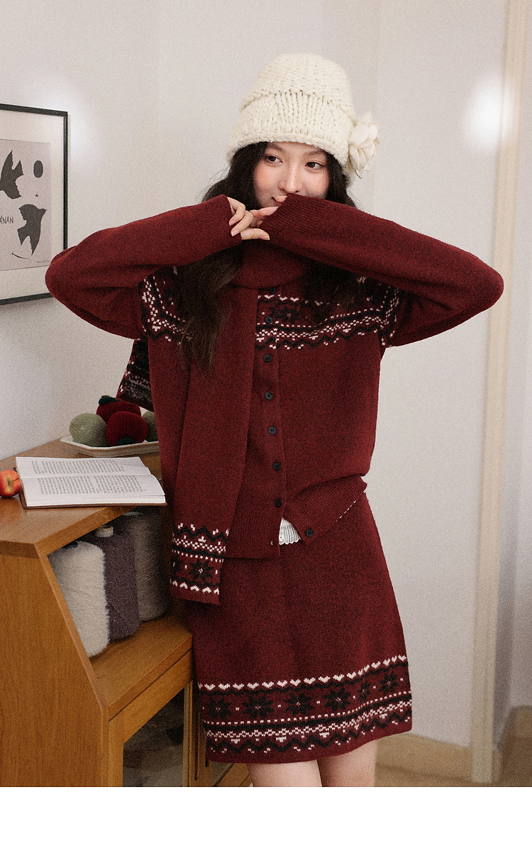 鹿向南「暗恋旋律」红色长袖毛衣冬季款显瘦半身裙小众时尚套装女
