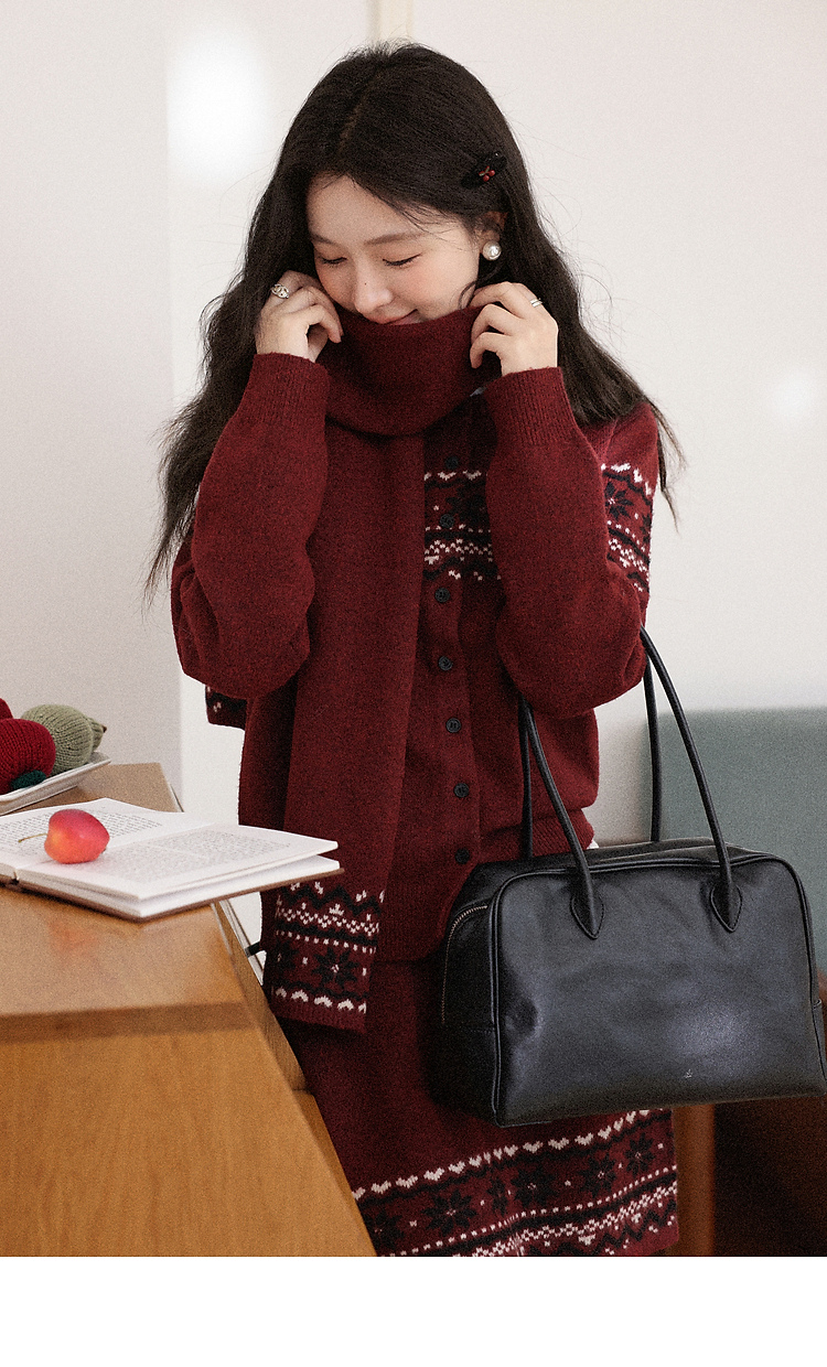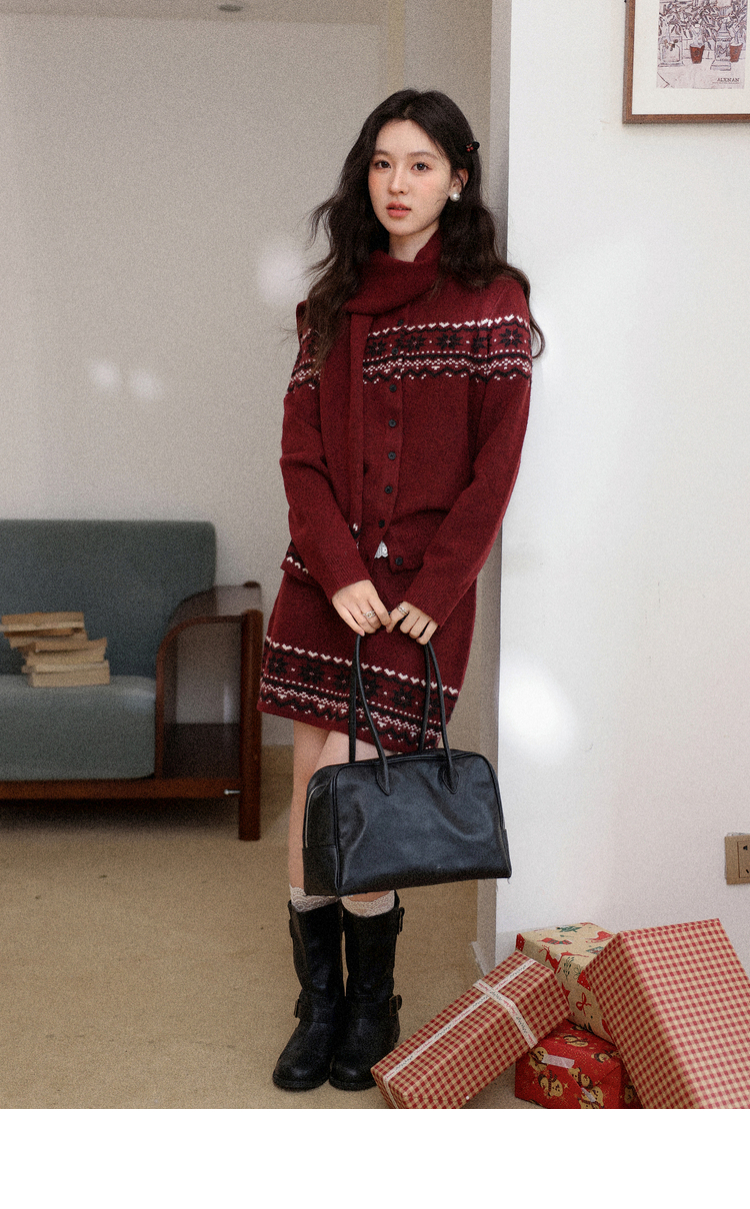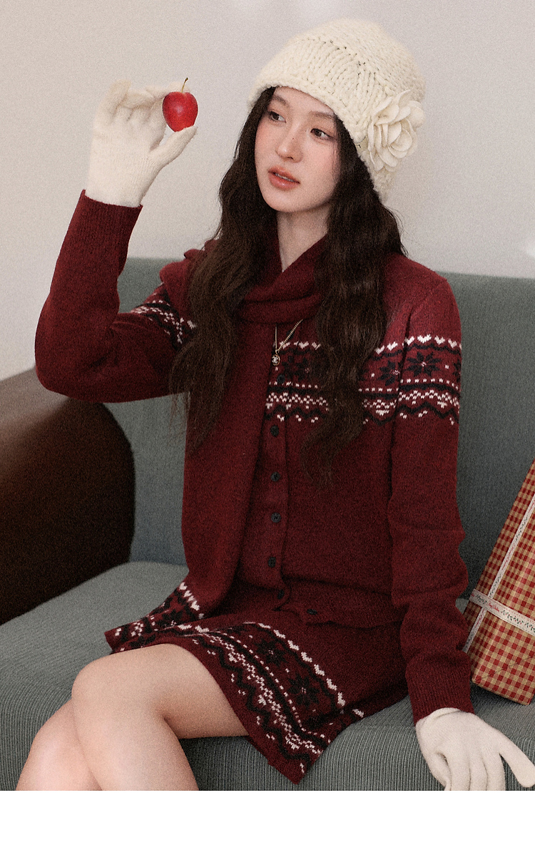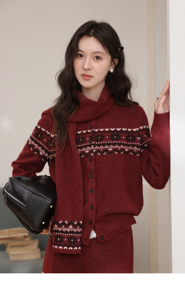 鹿向南「暗恋旋律」红色长袖毛衣冬季款显瘦半身裙小众时尚套装女