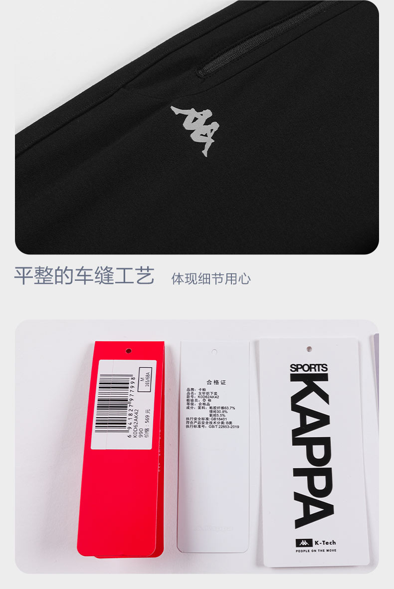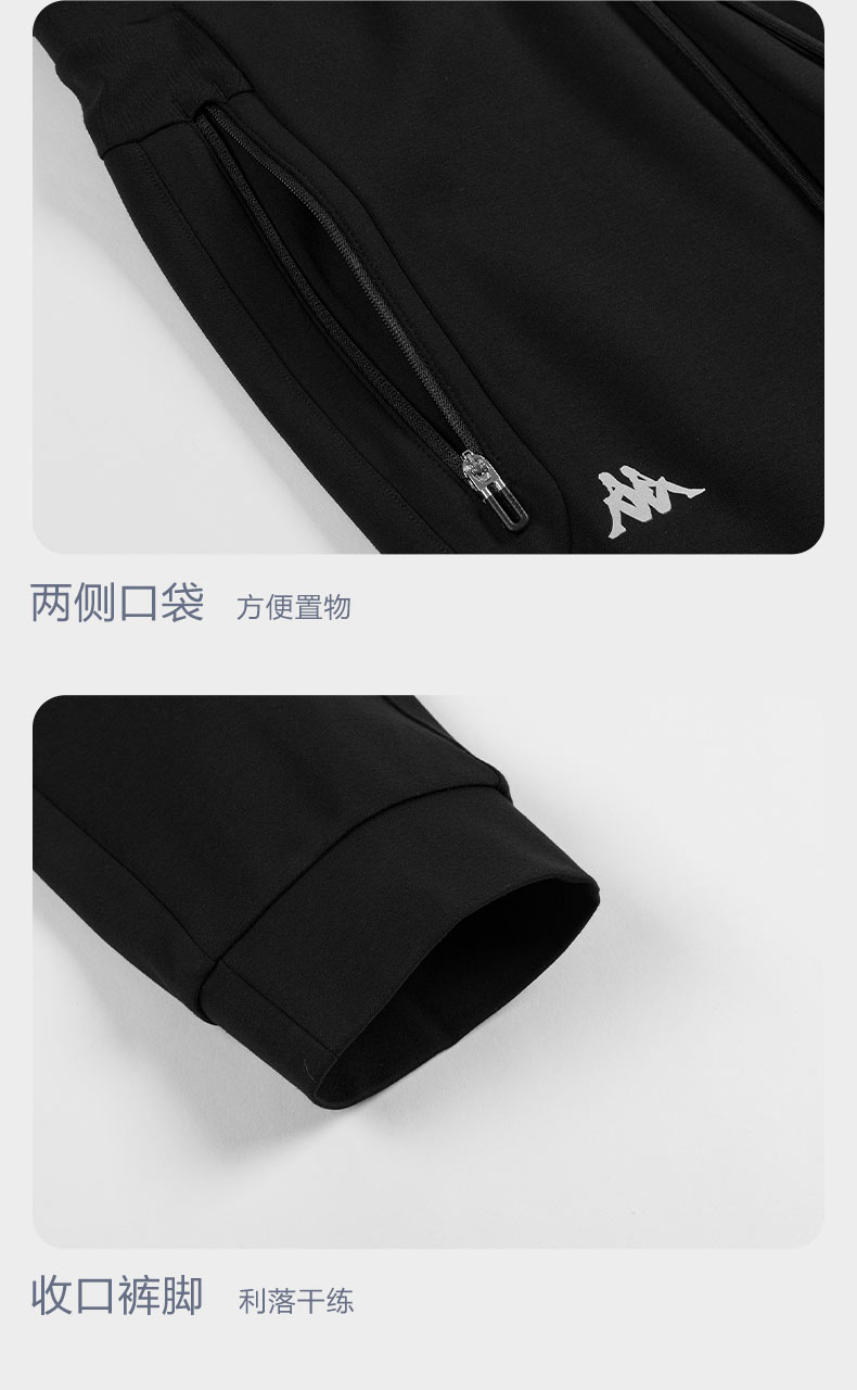 Kappa卡帕运动裤女秋弹力高腰长裤休闲裤黑色小脚卫裤K0D62AK42