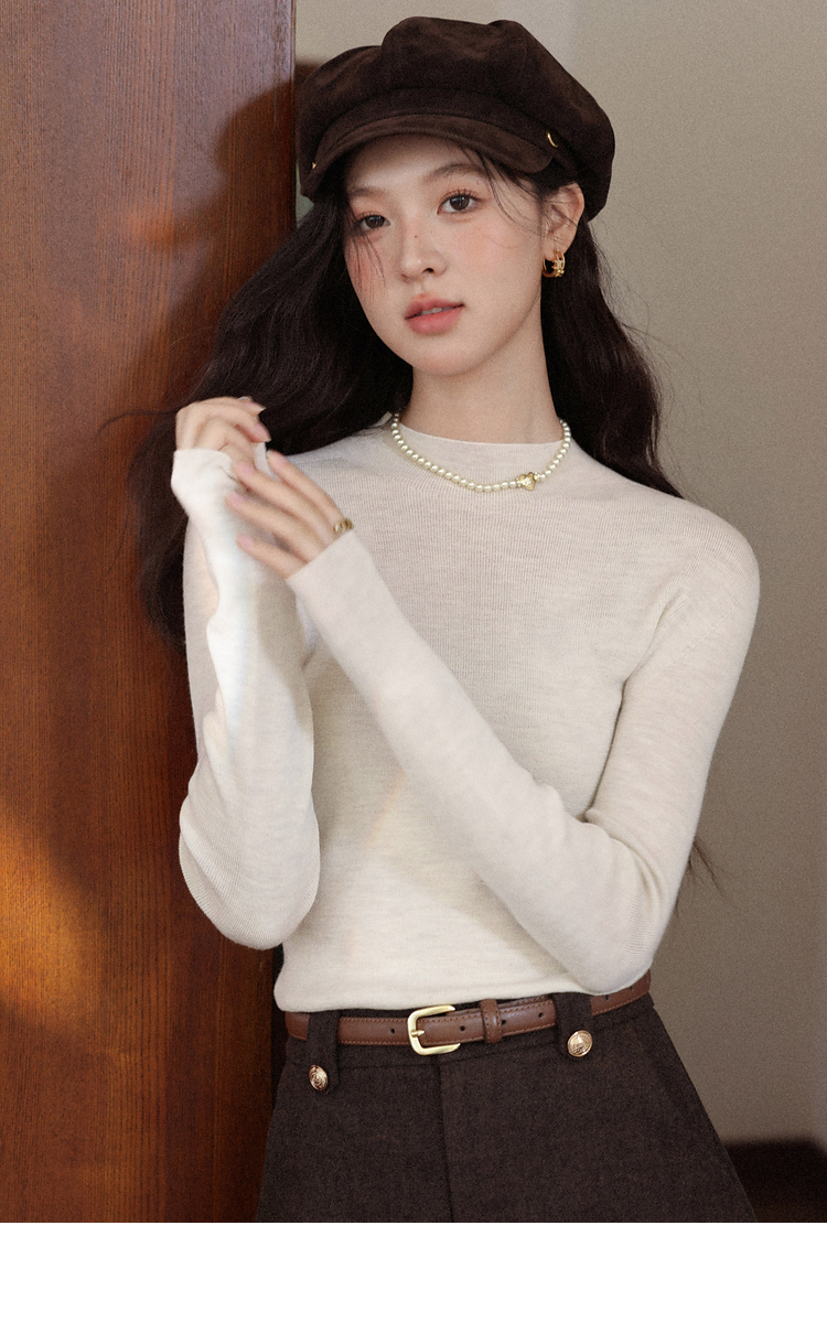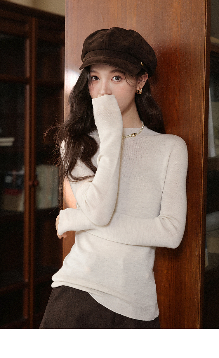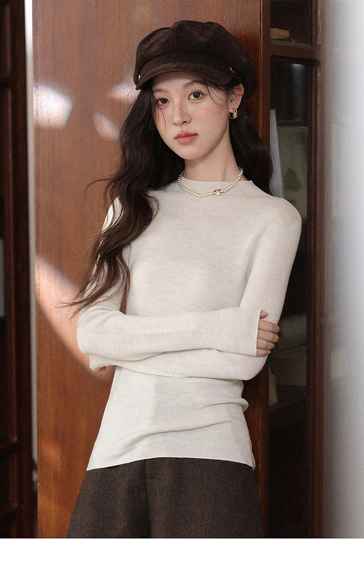 鹿向南「光织白墙」米白色修身内搭长袖针织衫秋冬新款简约上衣女