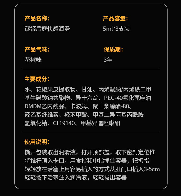 谜姬 男女用后庭缓痛润滑5ML装冻损无售后