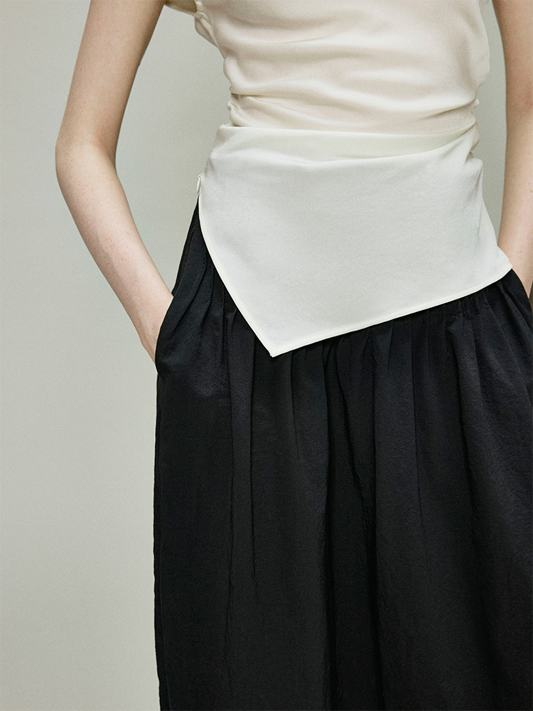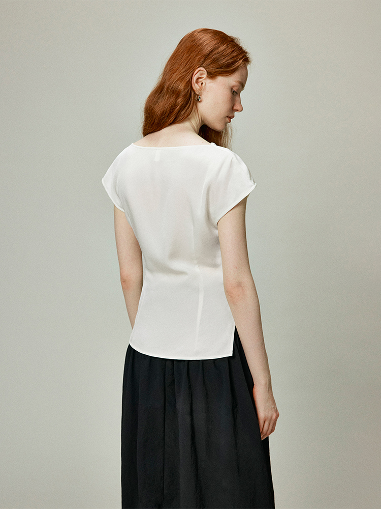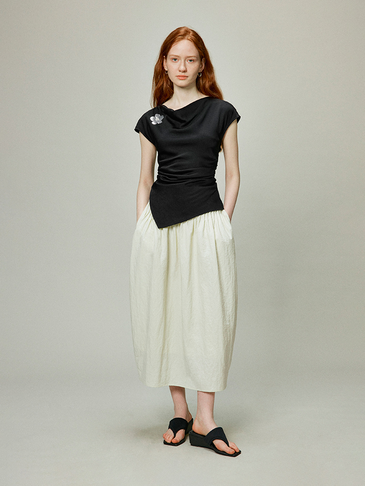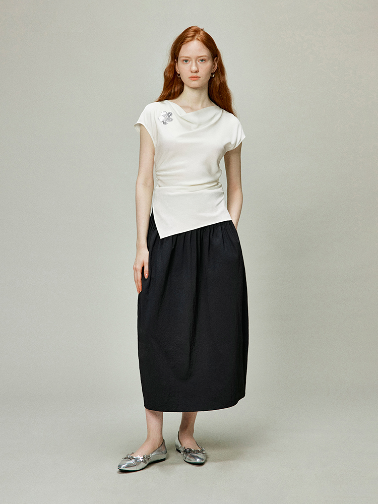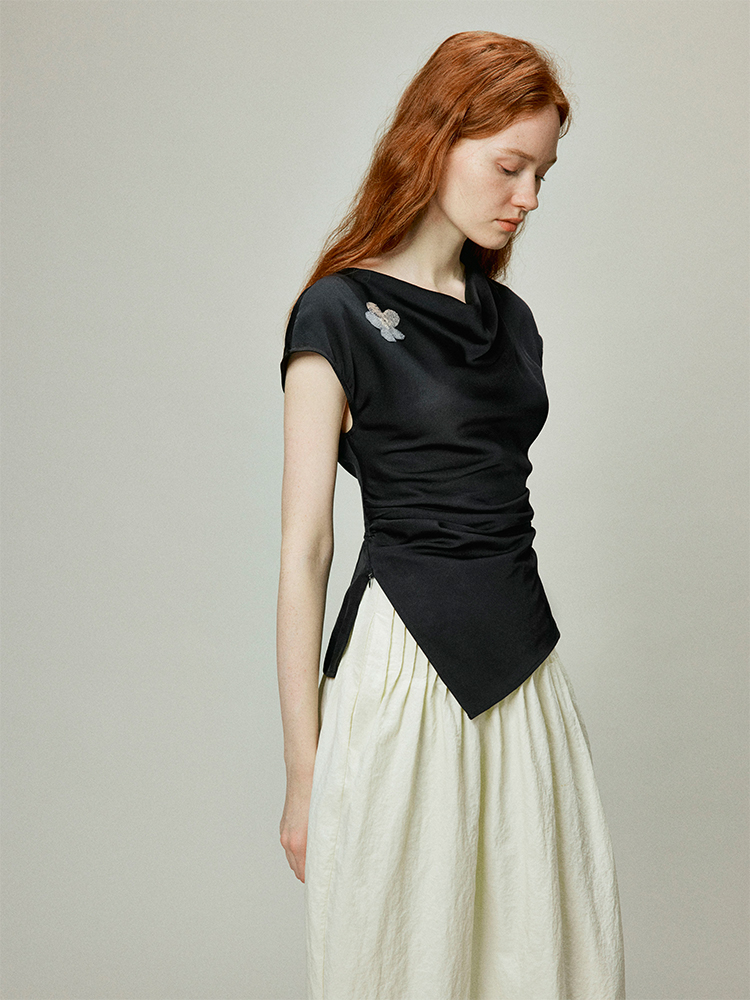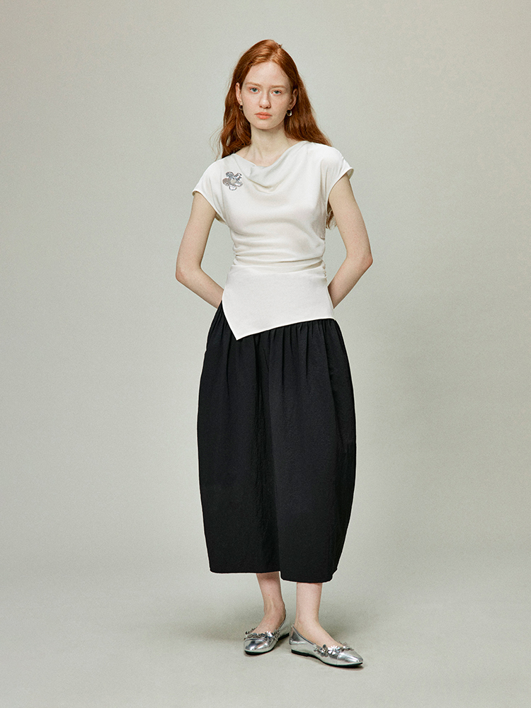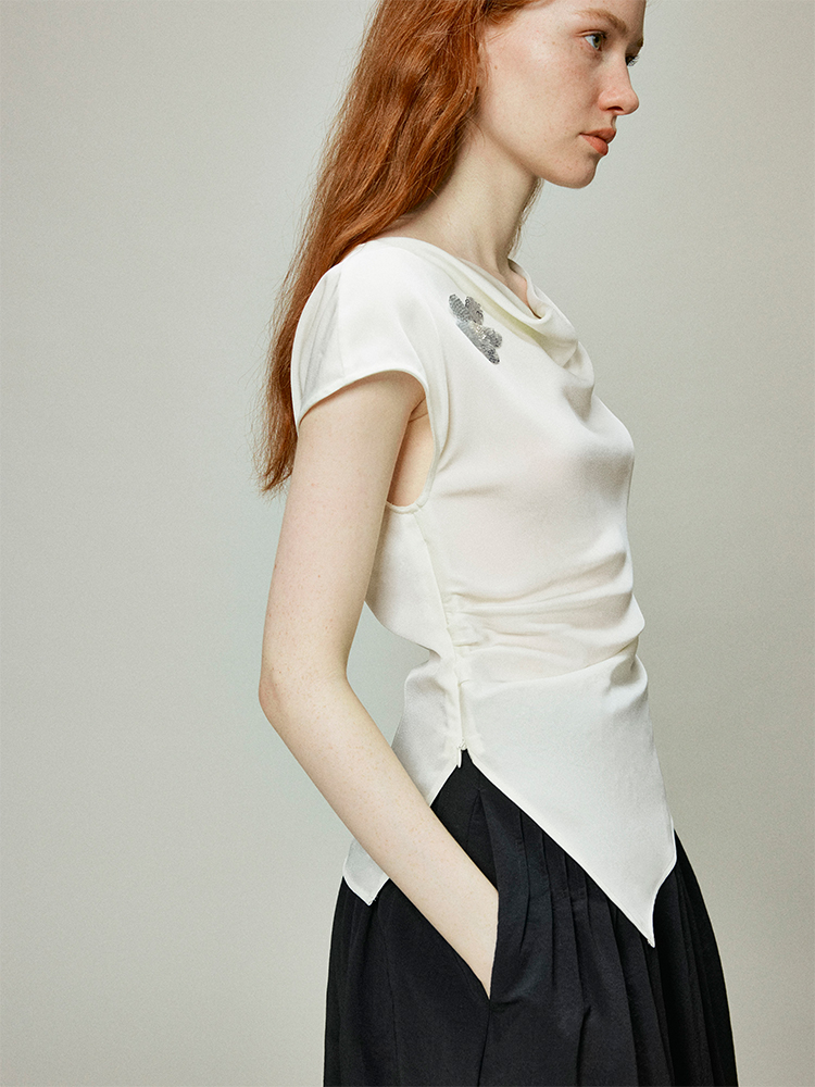 ForPoem 现货 24/SS夏季花朵系列醋酸荡领银色花朵刺绣收腰褶皱短袖