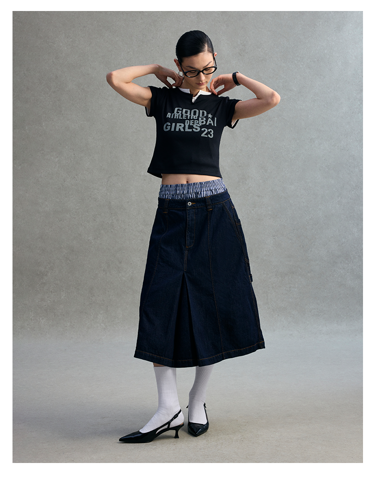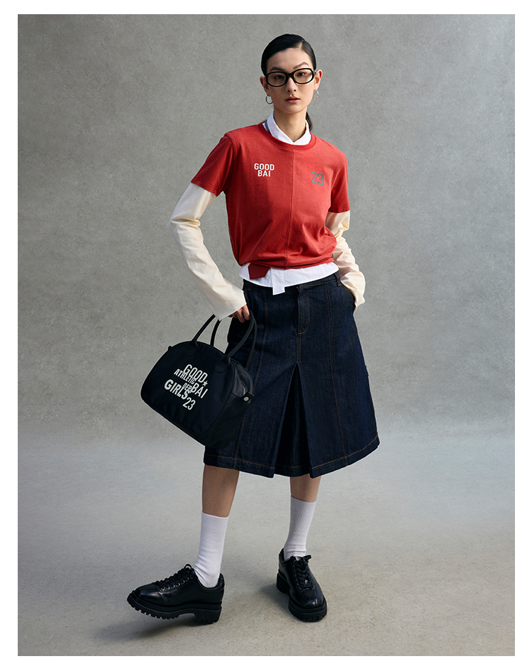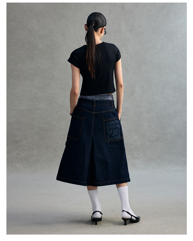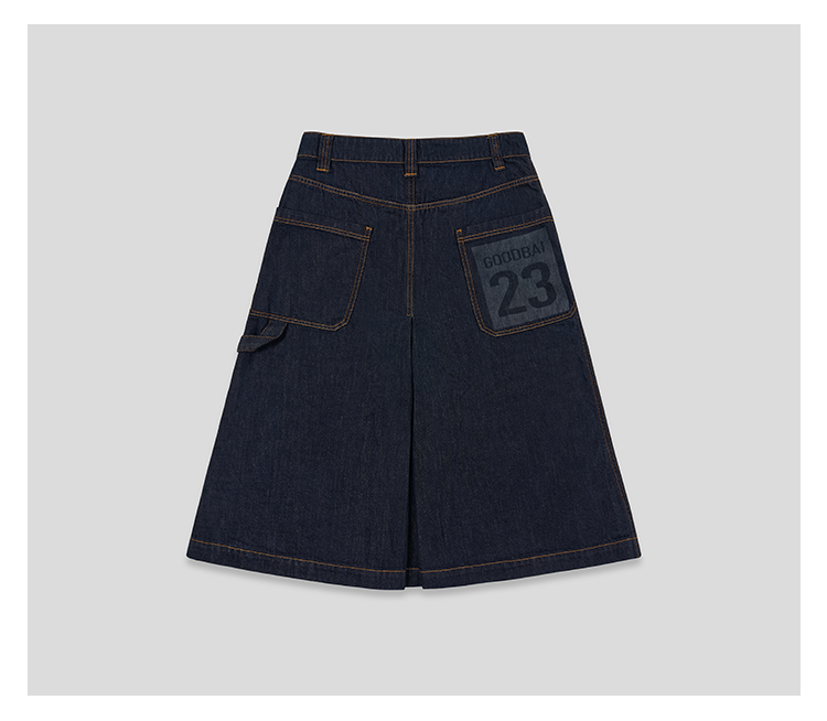 GOODBAI 23编号logo印花口袋高腰打褶A版半身裙