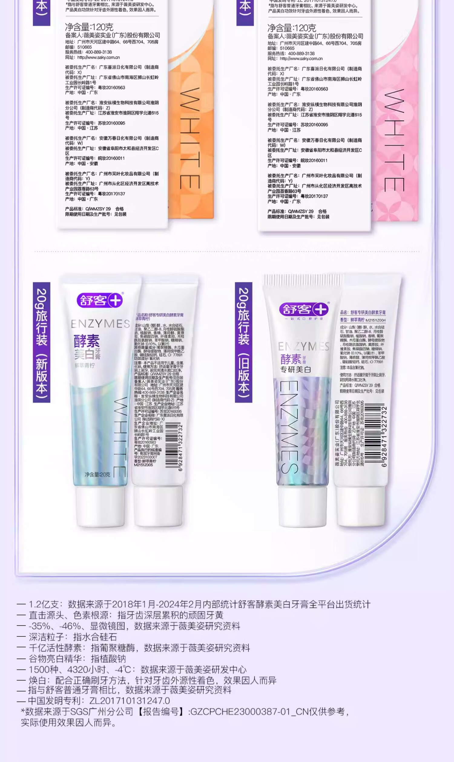 舒客专研美白酵素牙膏120克(鲜萃青柠)