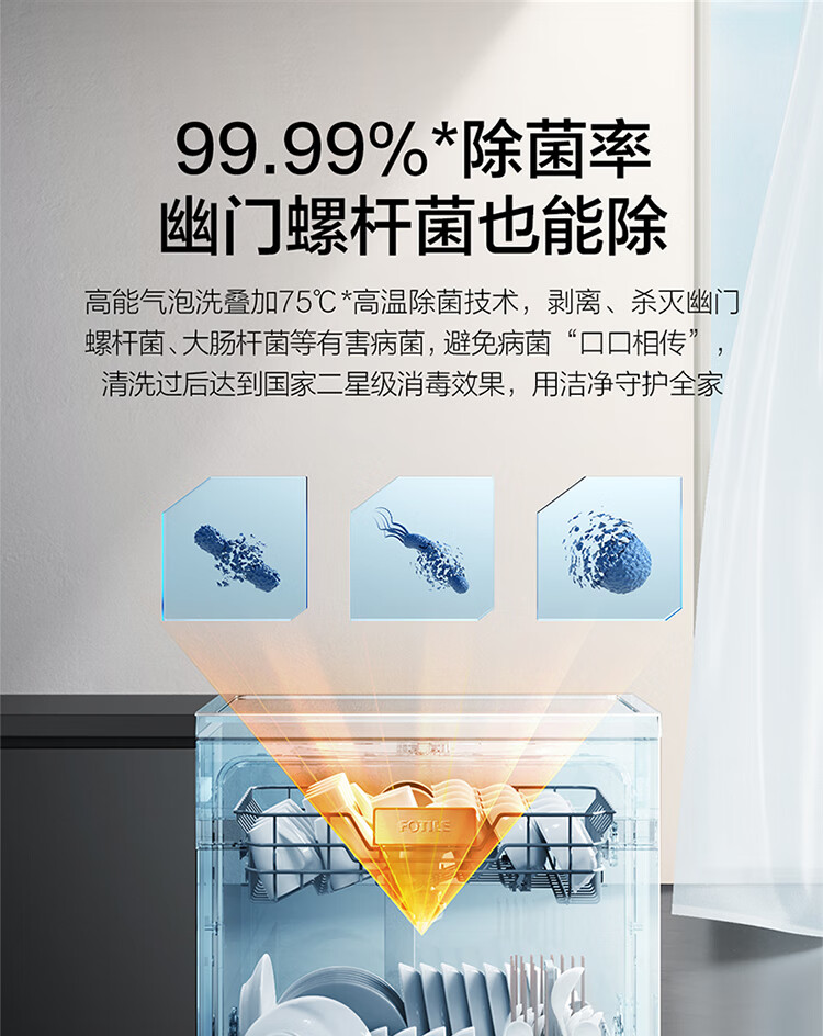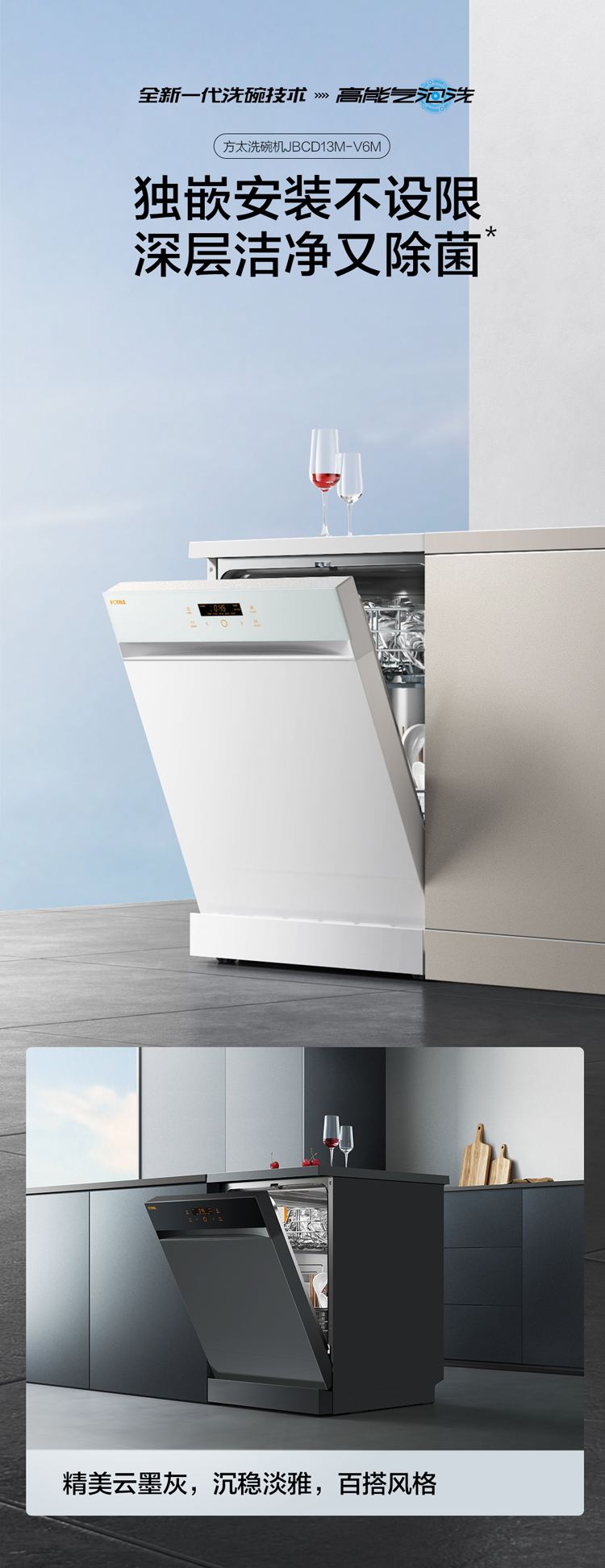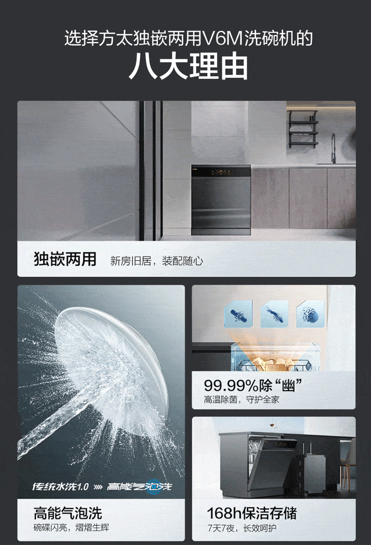方太洗碗机嵌入式家用 高能气泡洗 13套大容量 独嵌两用 除幽门螺旋杆菌 7天干燥长存 V6M 白