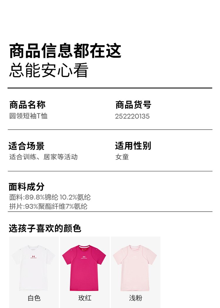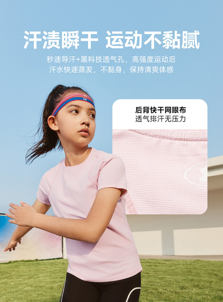 【12月-特惠福利】UnderArmour安德玛女童凉感速干圆领短袖T恤252220135
