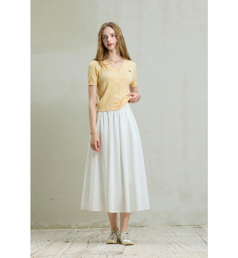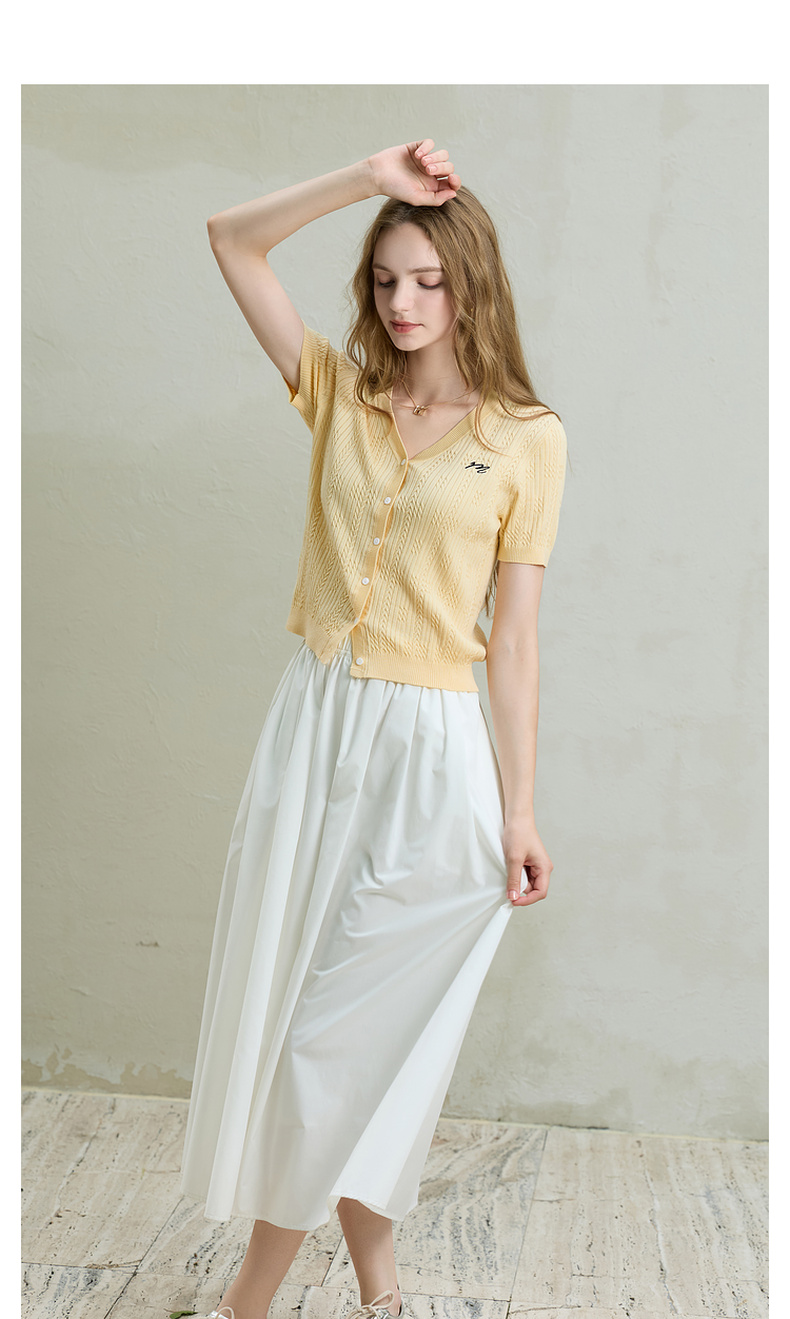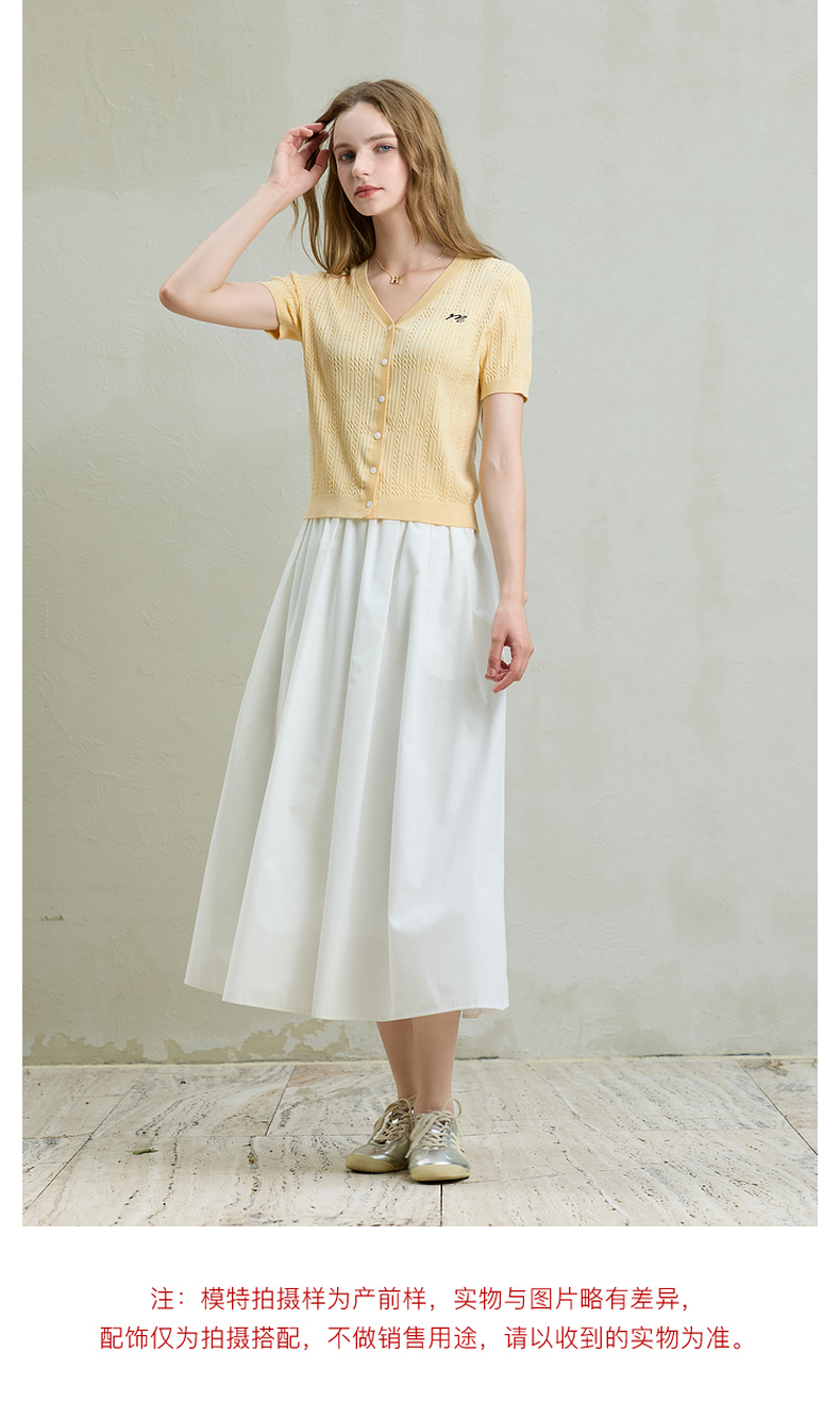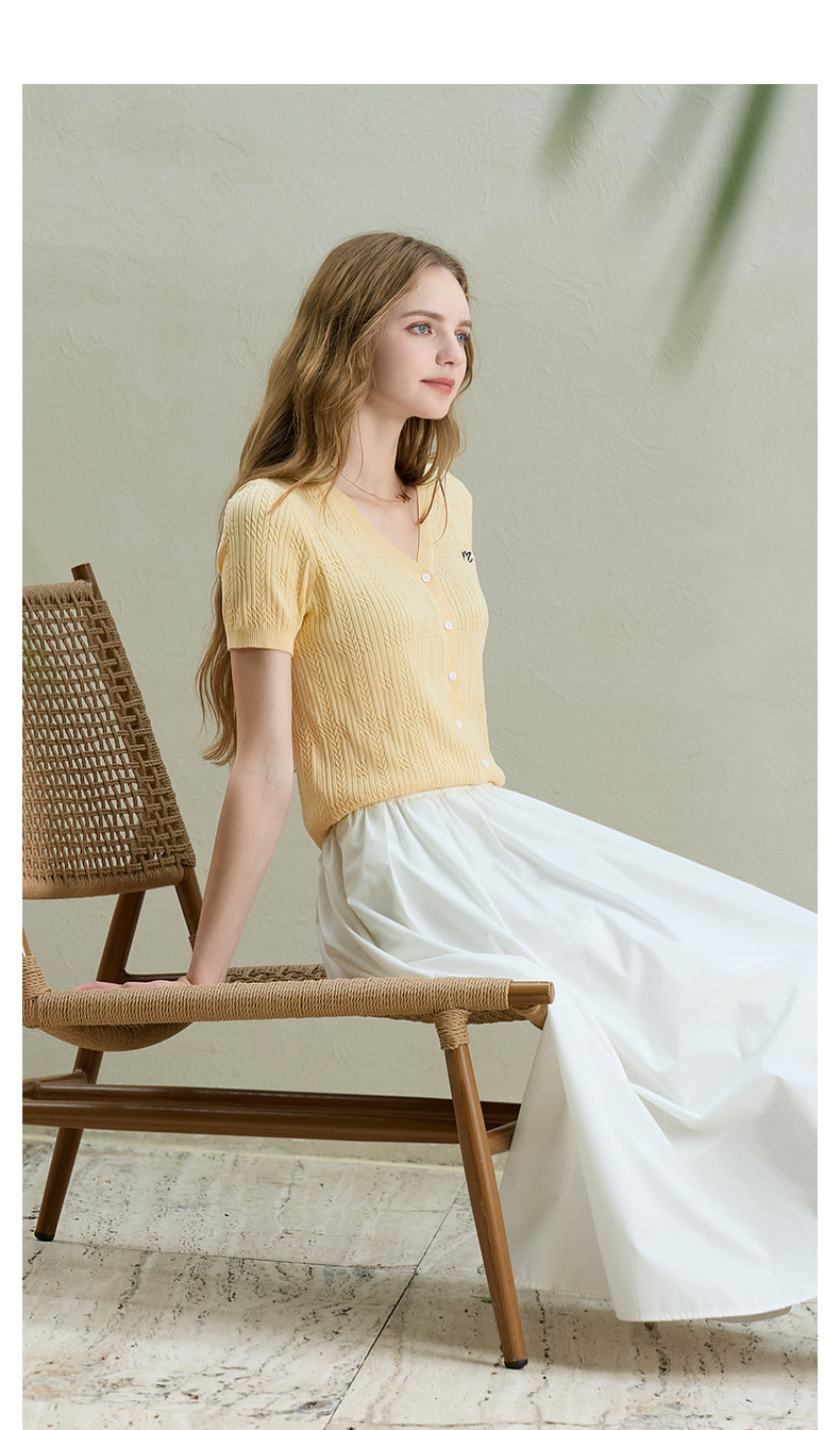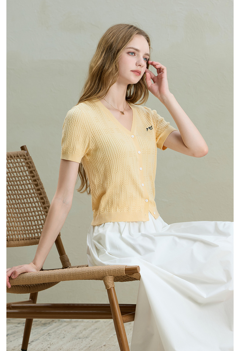 【莱赛尔】三彩2025秋季新款刺绣针织衫肌理感V领短袖修身M