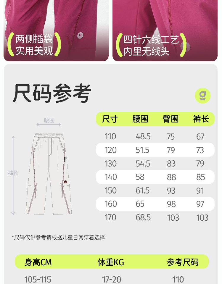 onmygame【爽身裤】女童运动裤夏季儿童快干长裤户外防蚊休闲裤子