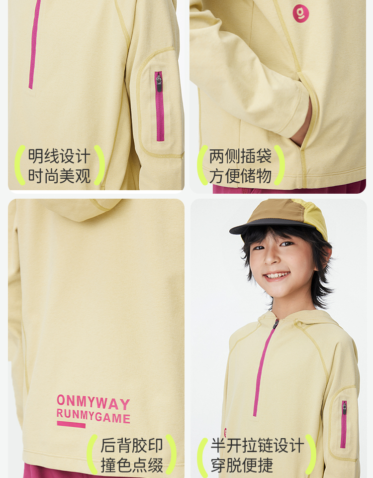 onmygame男童外套春装儿童防风防泼水童装户外运动连帽外套