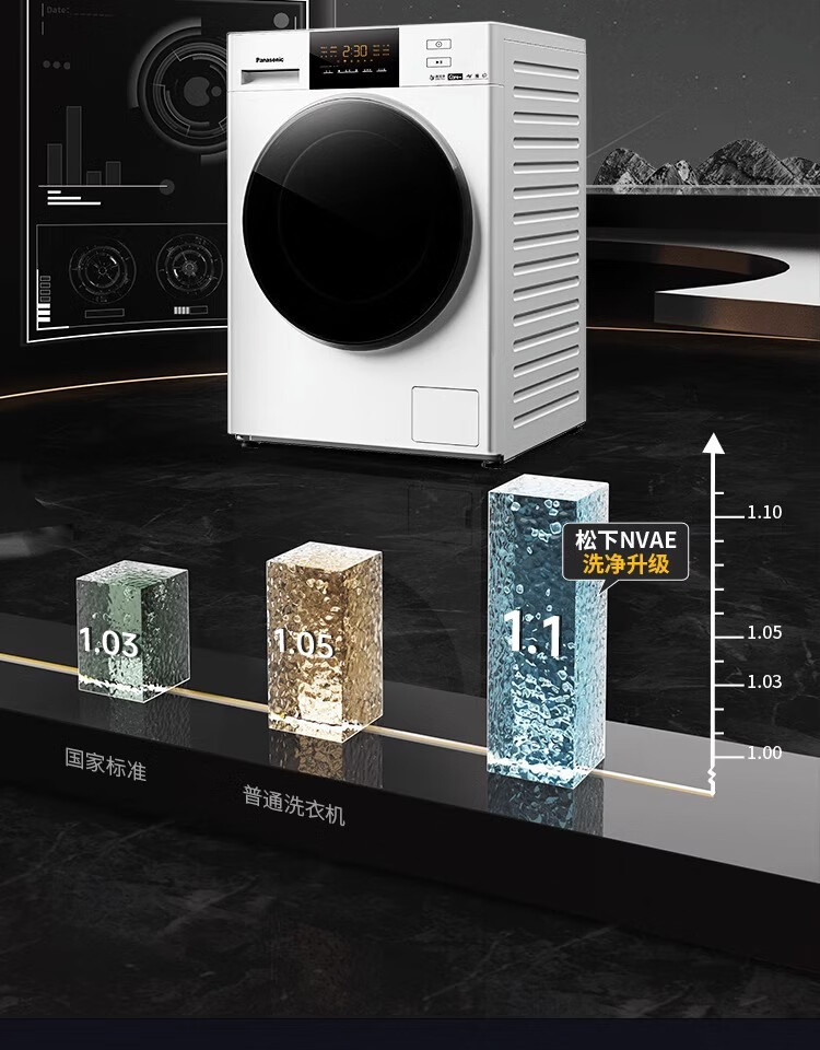【限天津区域】松下/洗衣机/XQG100-NV1K/热泵变频10kg滚筒洗衣机全自动+10kg烘干机干衣机除菌烘泡沫净
