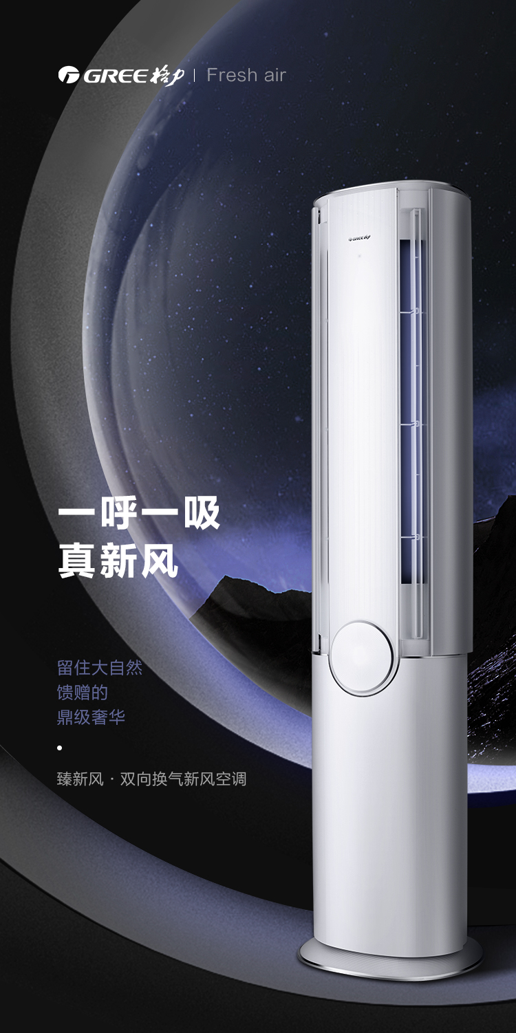 格力/空调/KFR-72LW/(72582)FNhCa-B1(WIFI)/臻新风 3匹 新风空调 新一级能效 变频冷暖 柜机空调