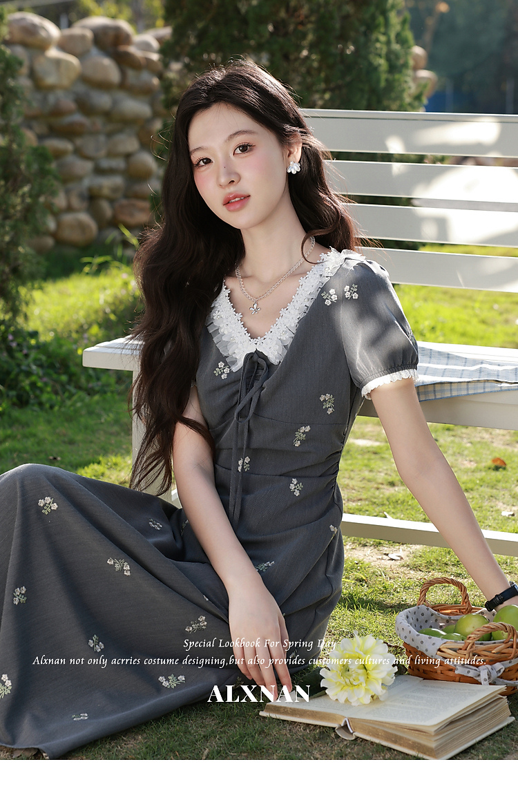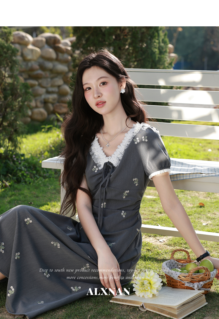 鹿向南【0417/20:00新品前1小时7折限量100件】小众灰色连衣裙女