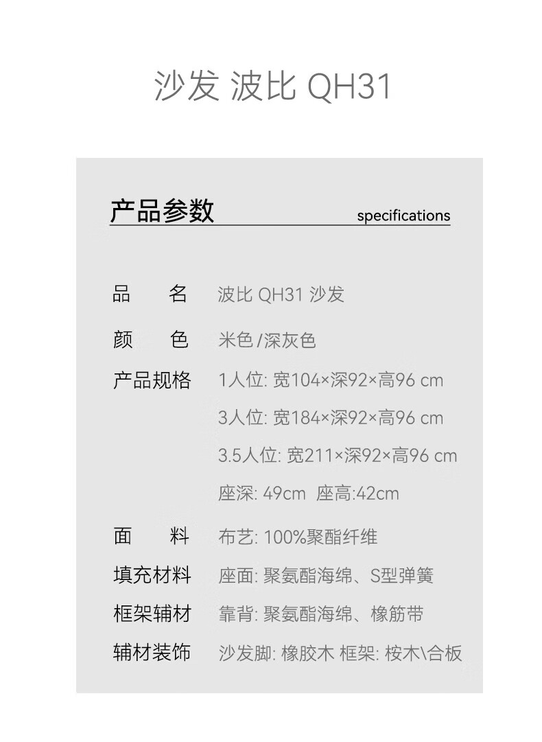 【家具】3人位布沙发 波比 QH-31