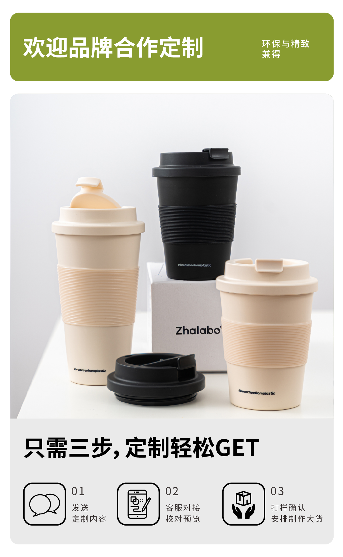 【定制产品不零售】Zhalabo环保可降解随行杯防漏PLA咖啡杯带盖便携直饮高颜值定制