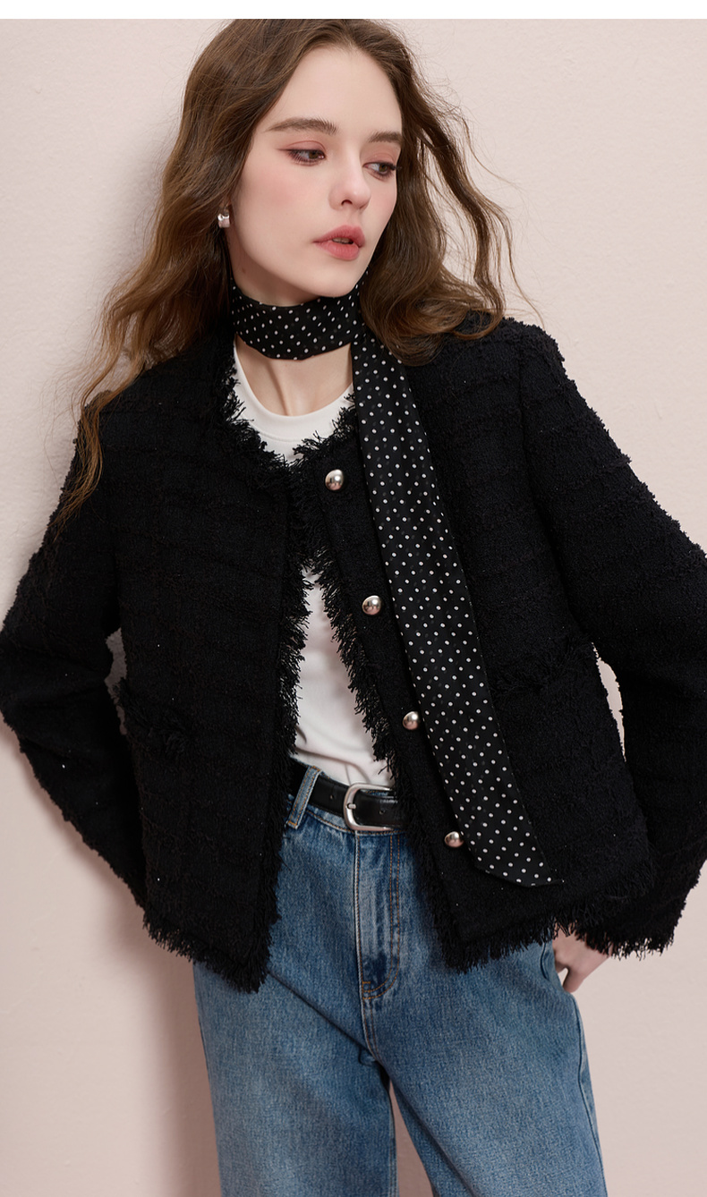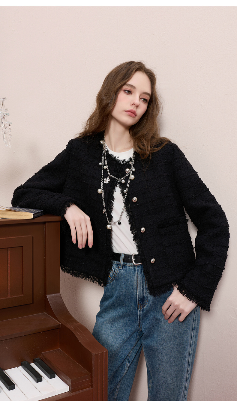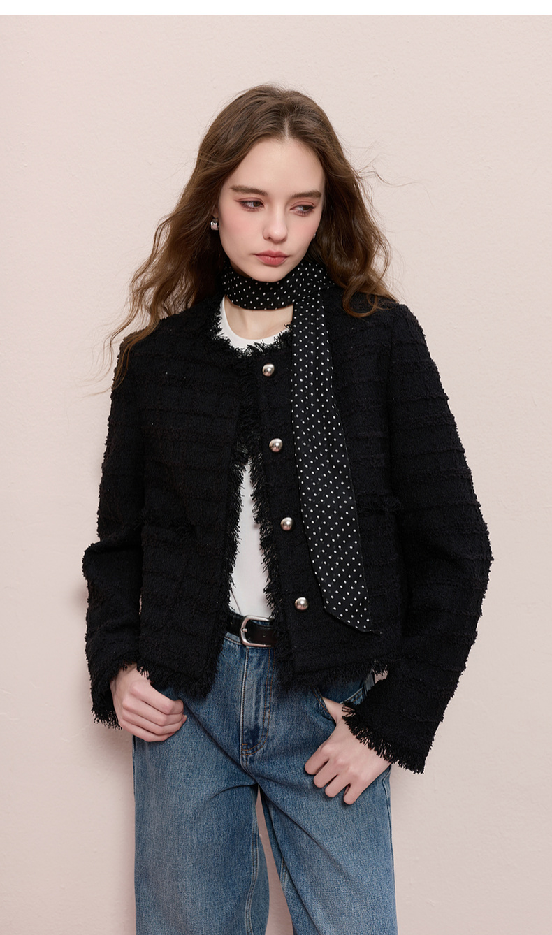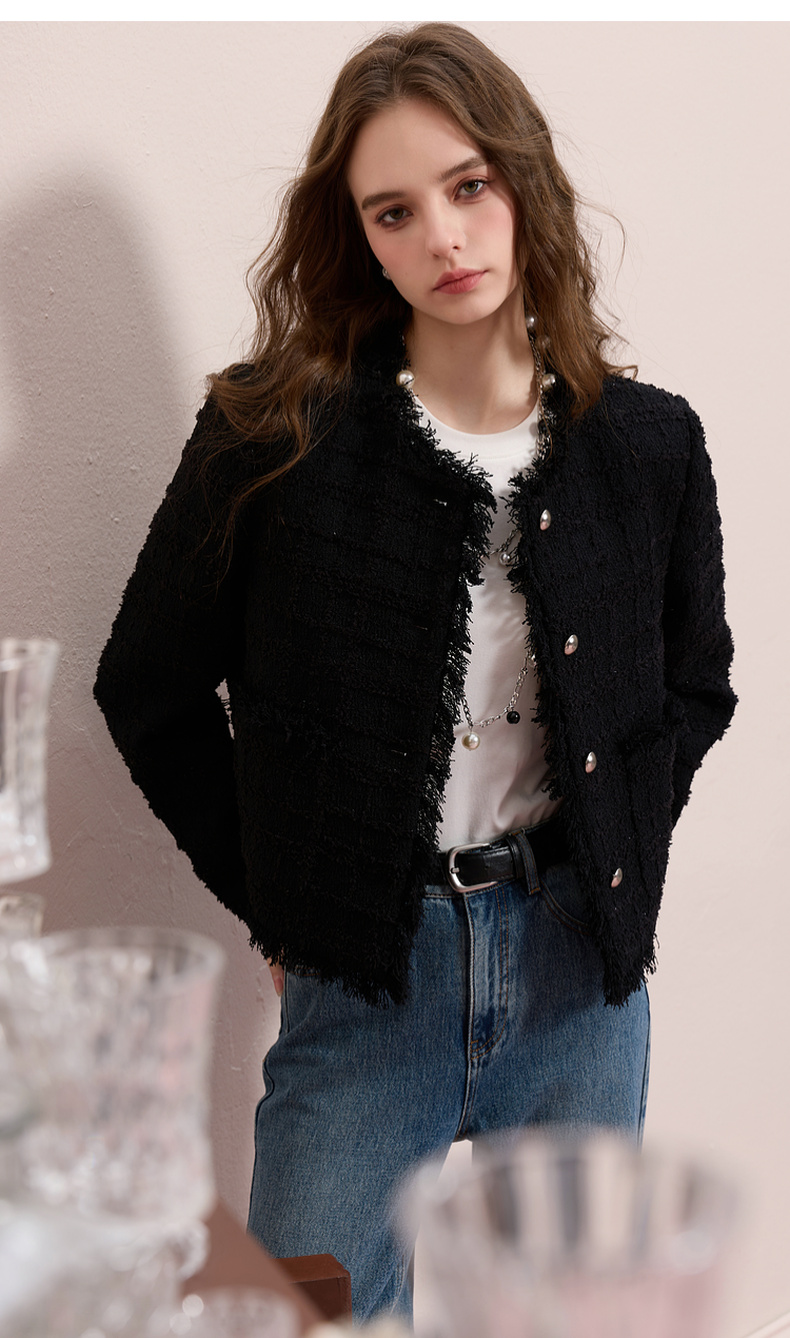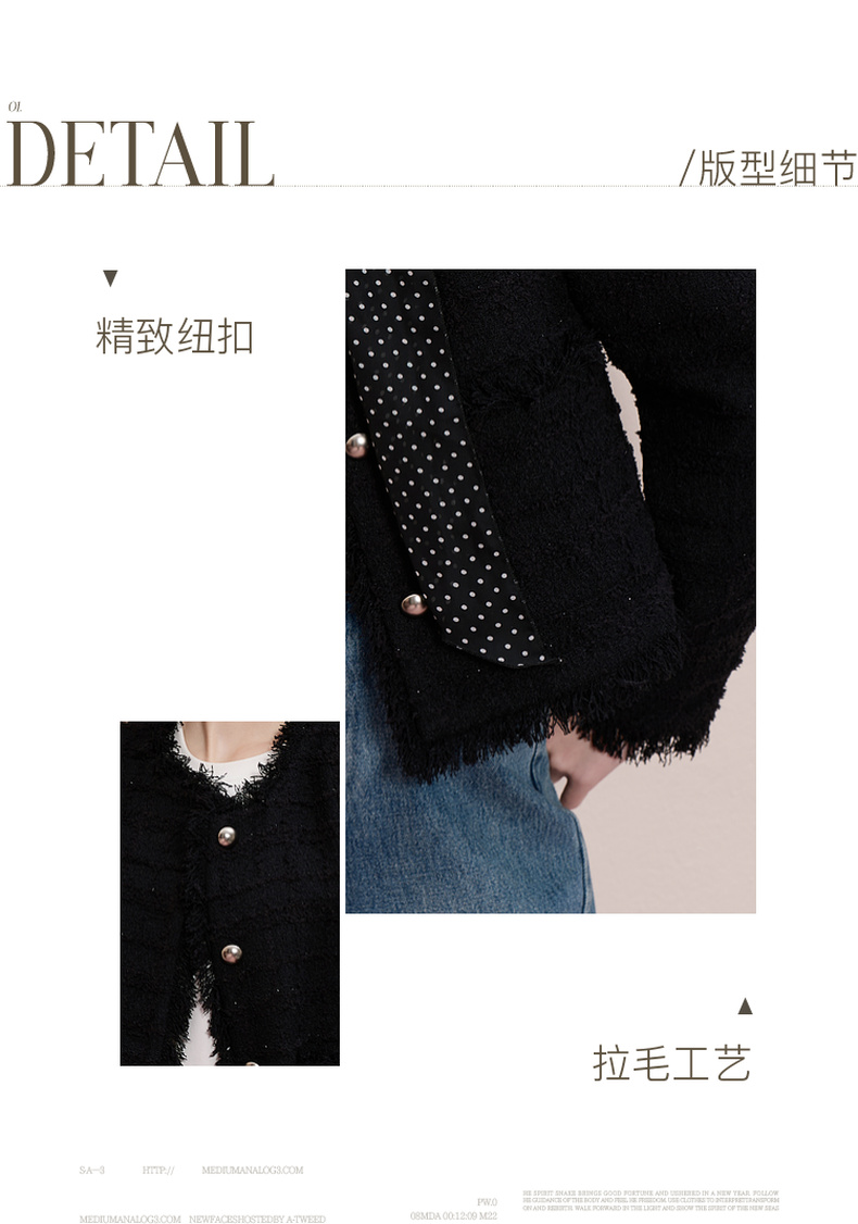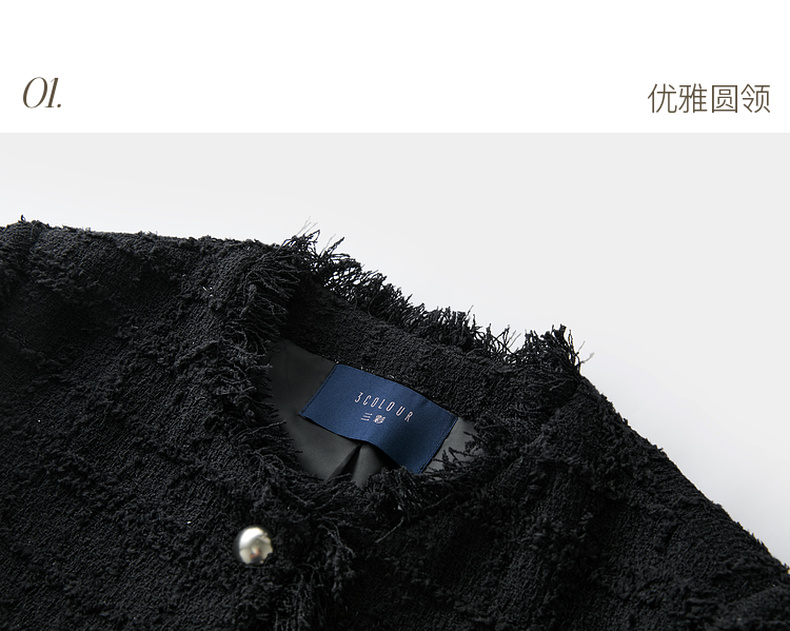 三彩2025冬季新款香风毛呢外套拉毛圆领短款大衣优雅M