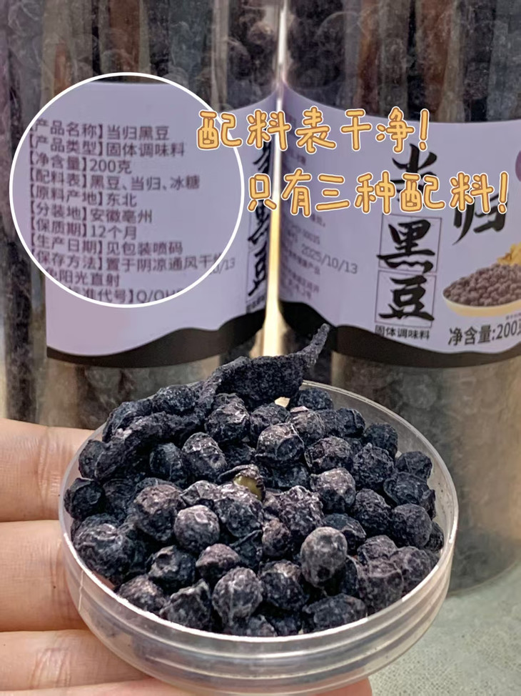 19.9到手3罐【当归黑豆】入口清甜😋哏啾有嚼劲, ✅精选东北当季黑豆🌾人工甄选,配道地当归、冰糖🍬文火慢熬,豆香回甘
