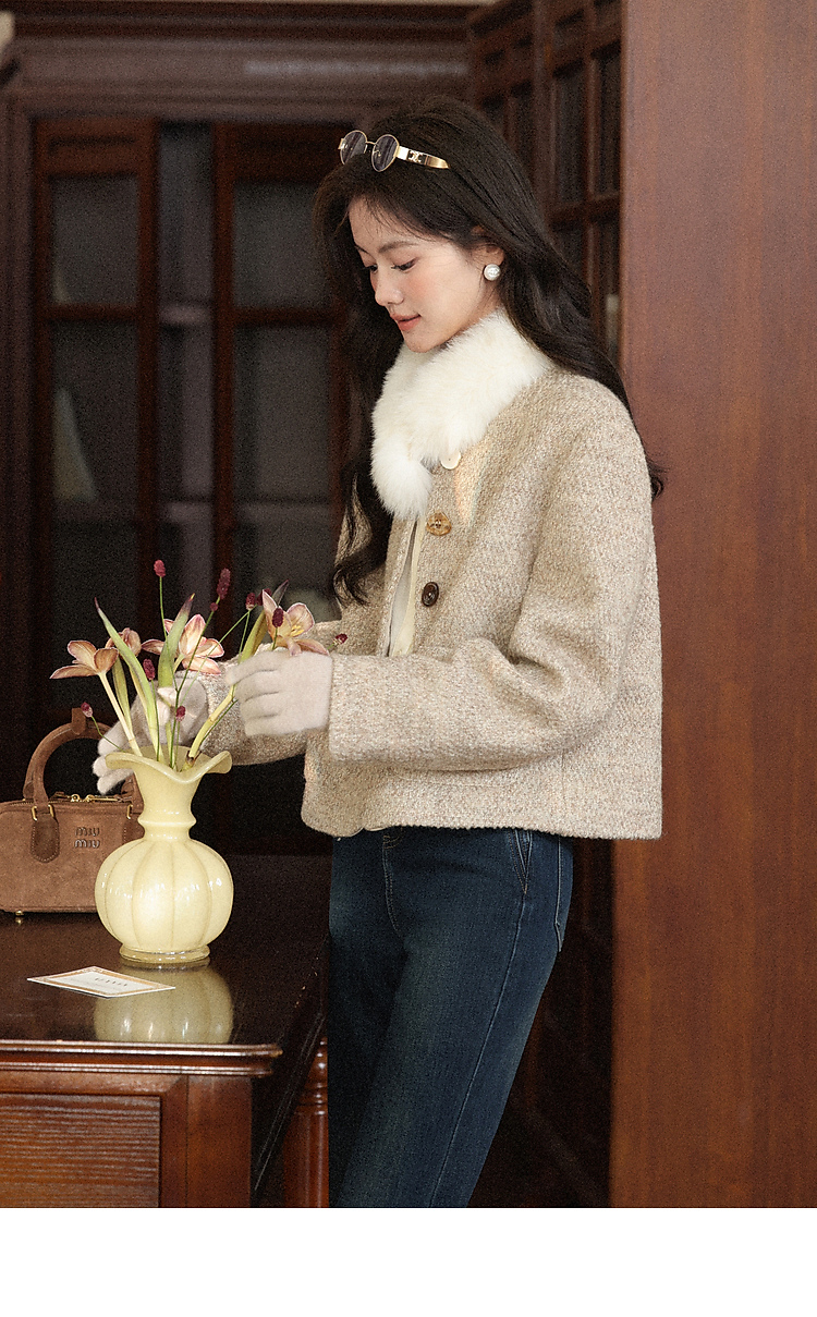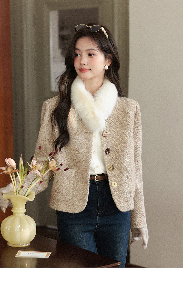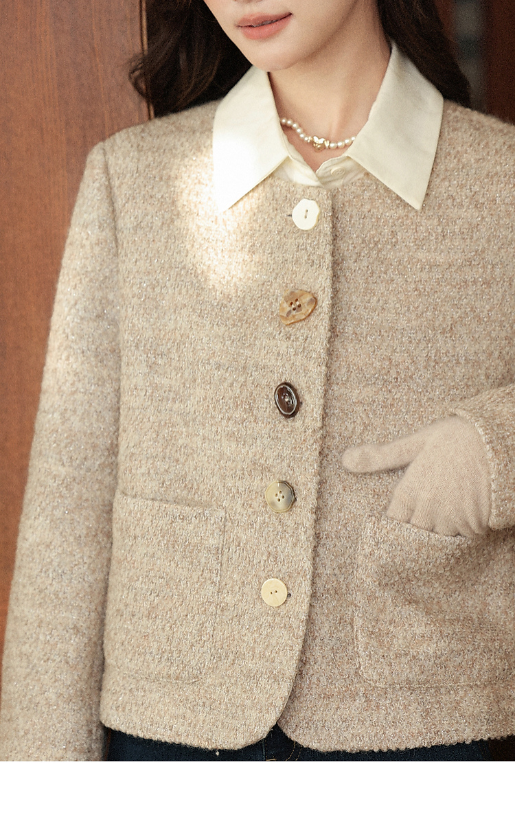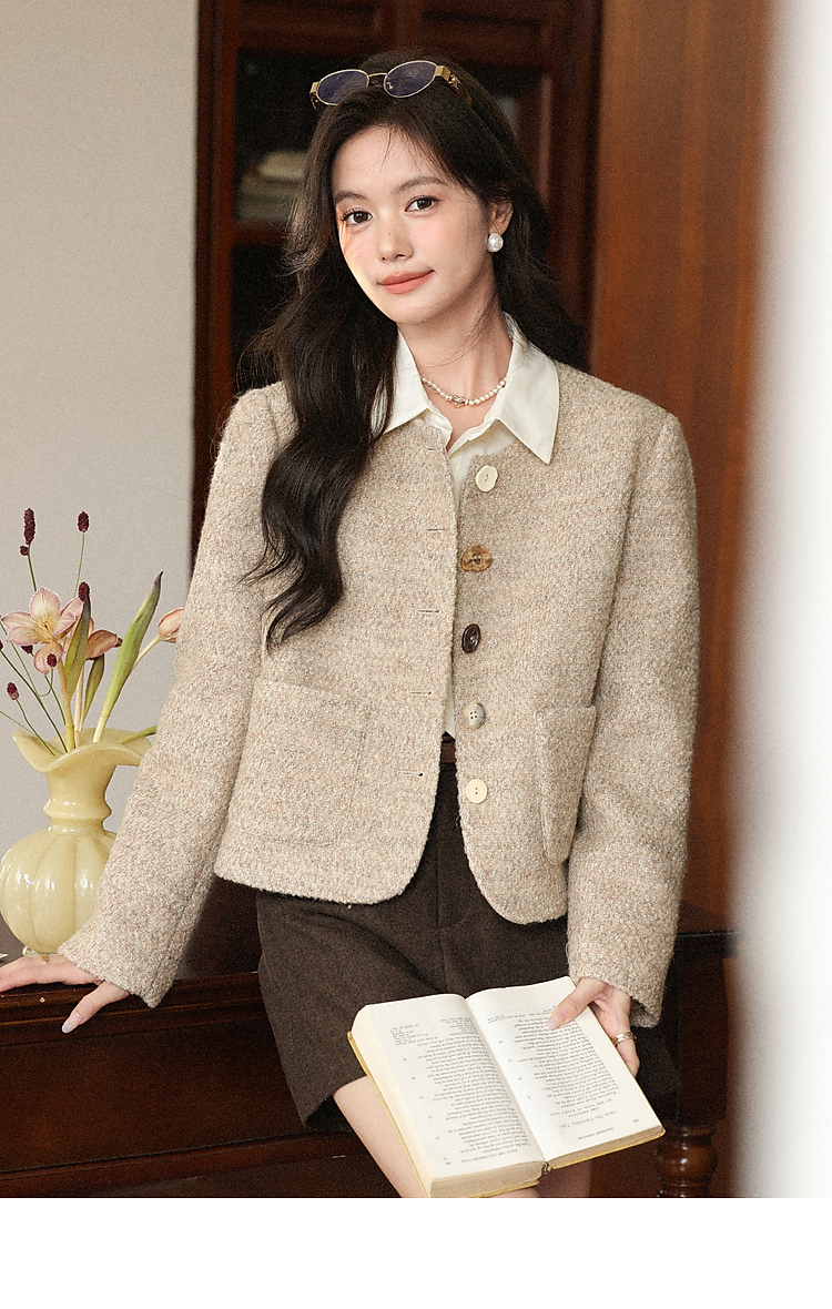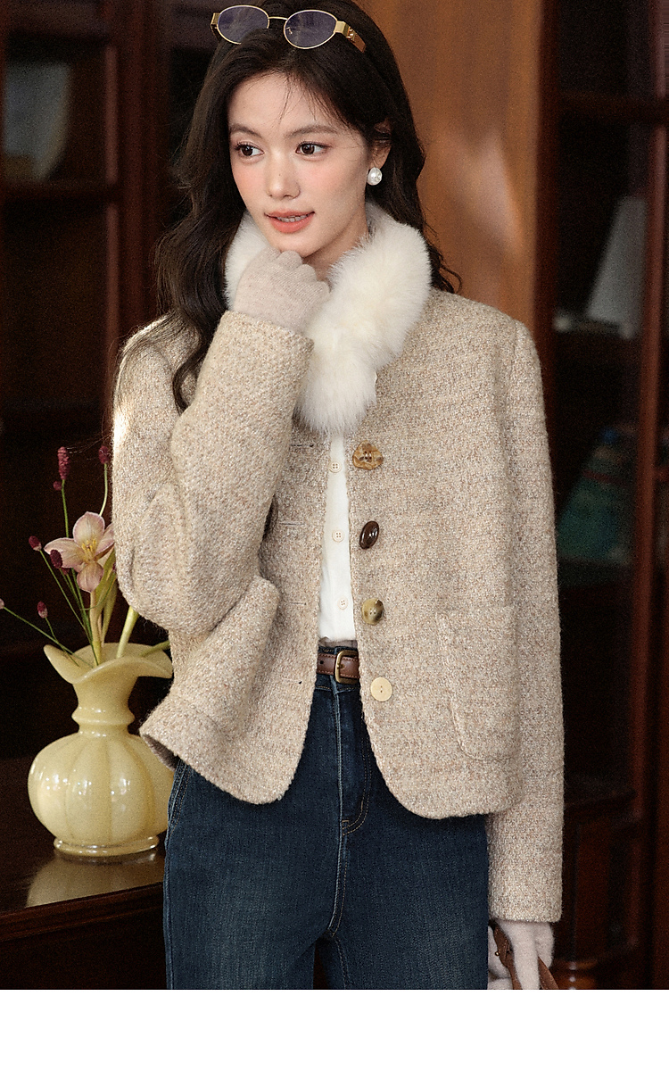 鹿向南「香榭晨露」燕麦色小香风短款外套女秋冬新款气质百搭上衣58767