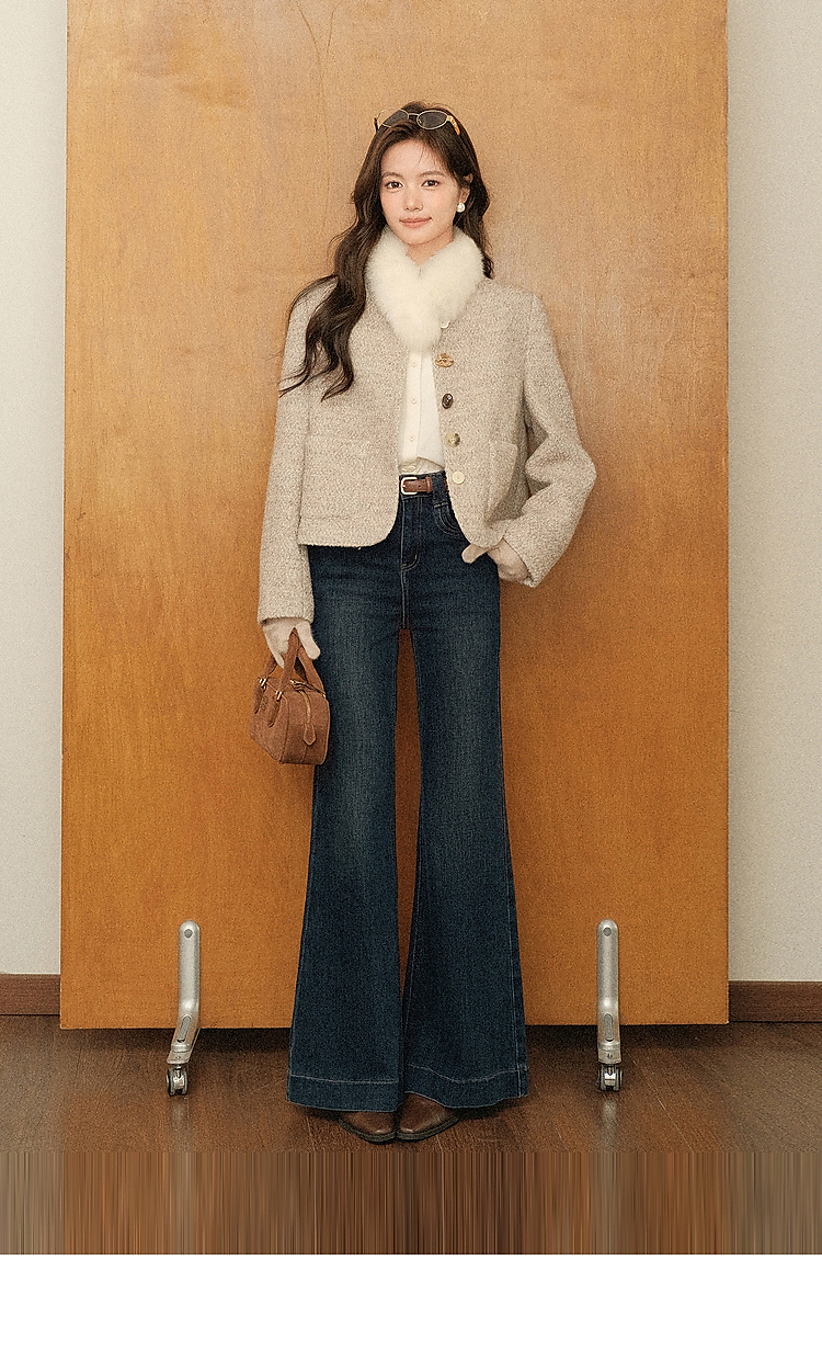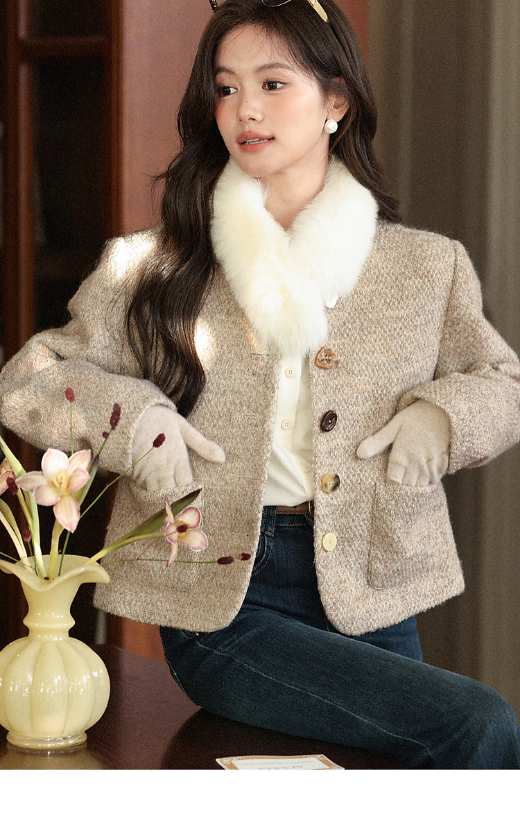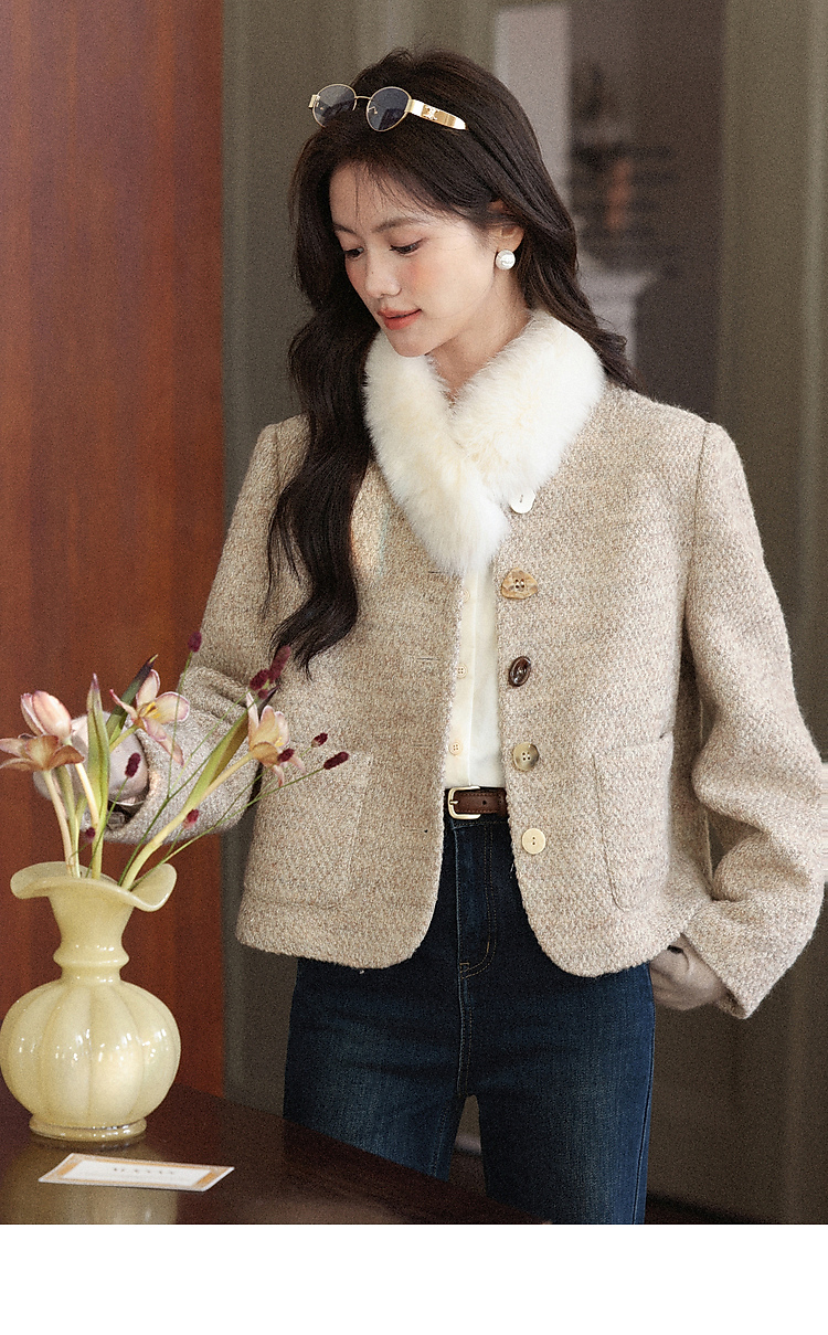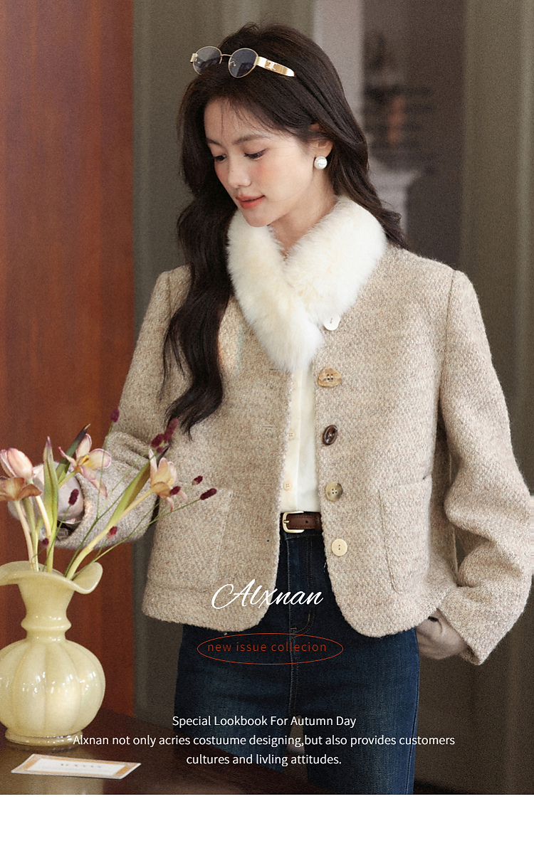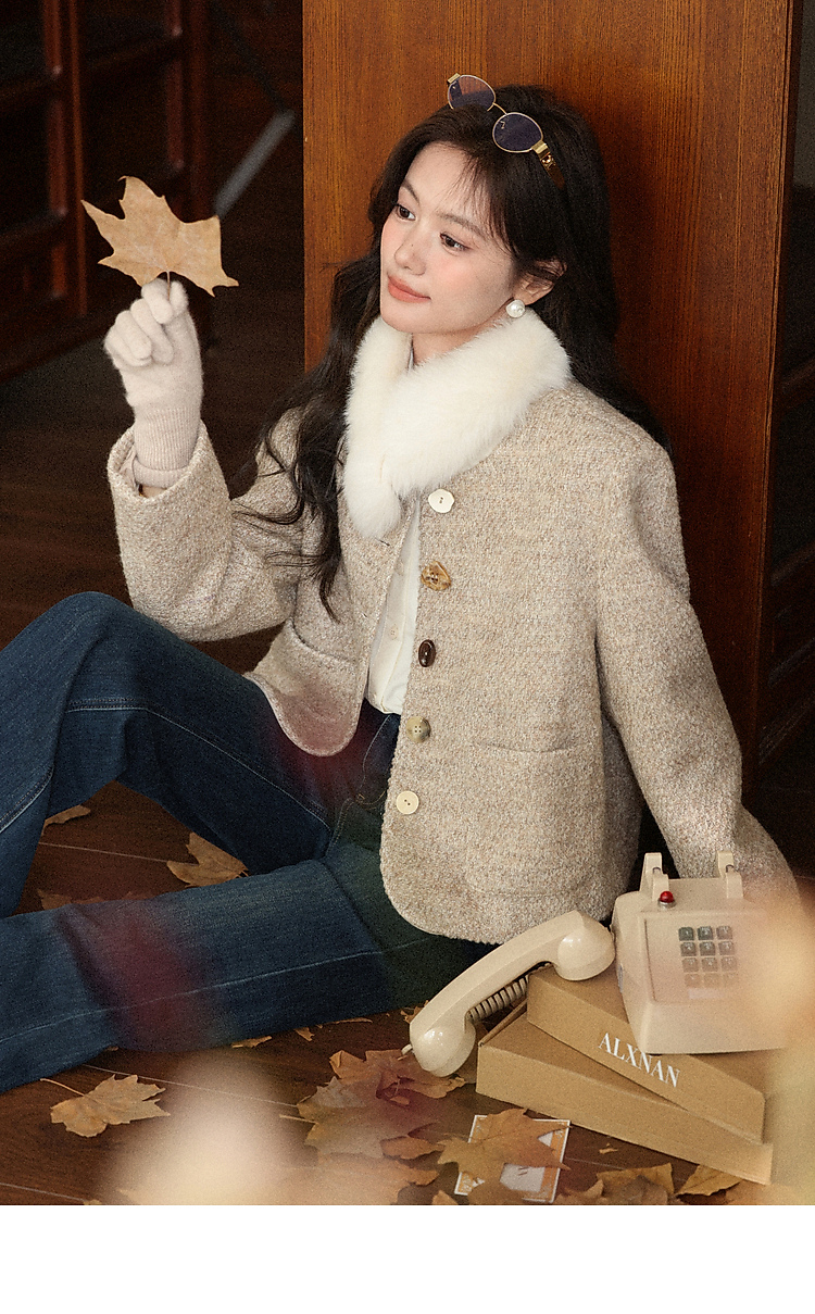鹿向南「香榭晨露」燕麦色小香风短款外套女秋冬新款气质百搭上衣58767