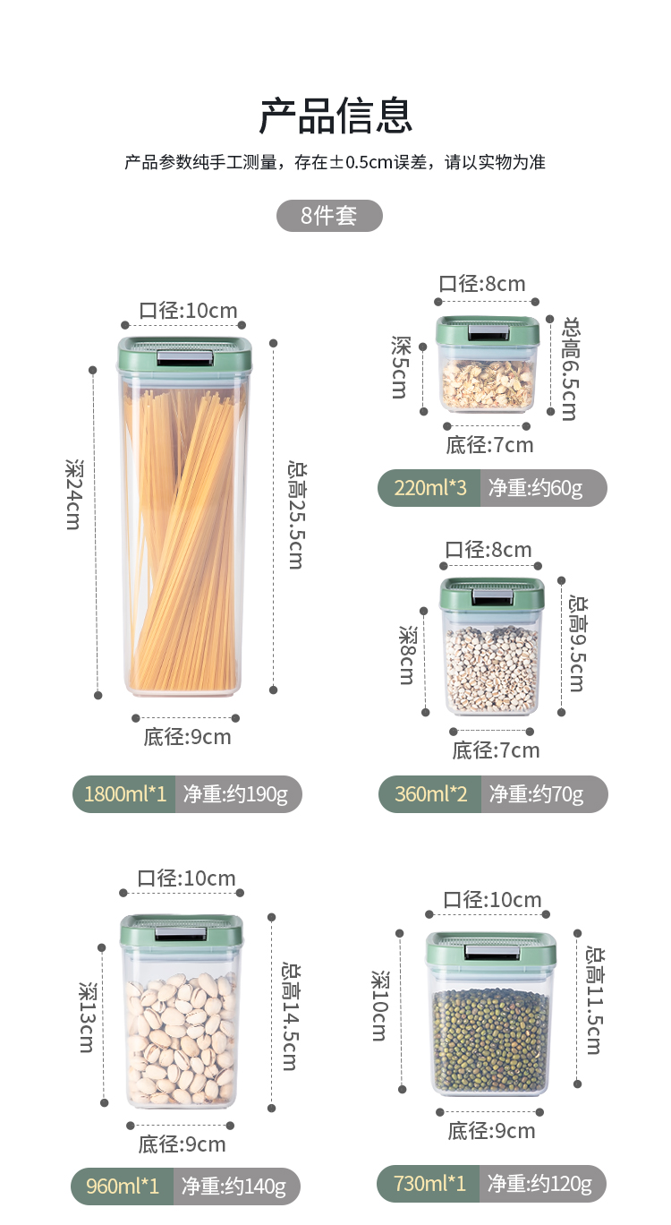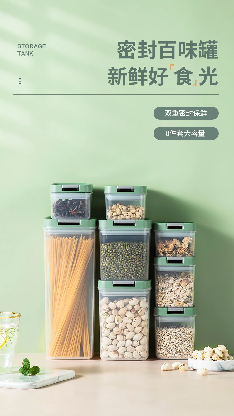 美厨多功能储物保鲜盒8件套(抹茶绿) MCPJ7850