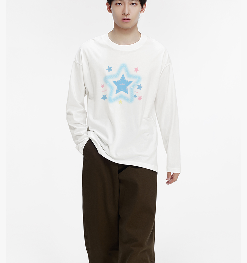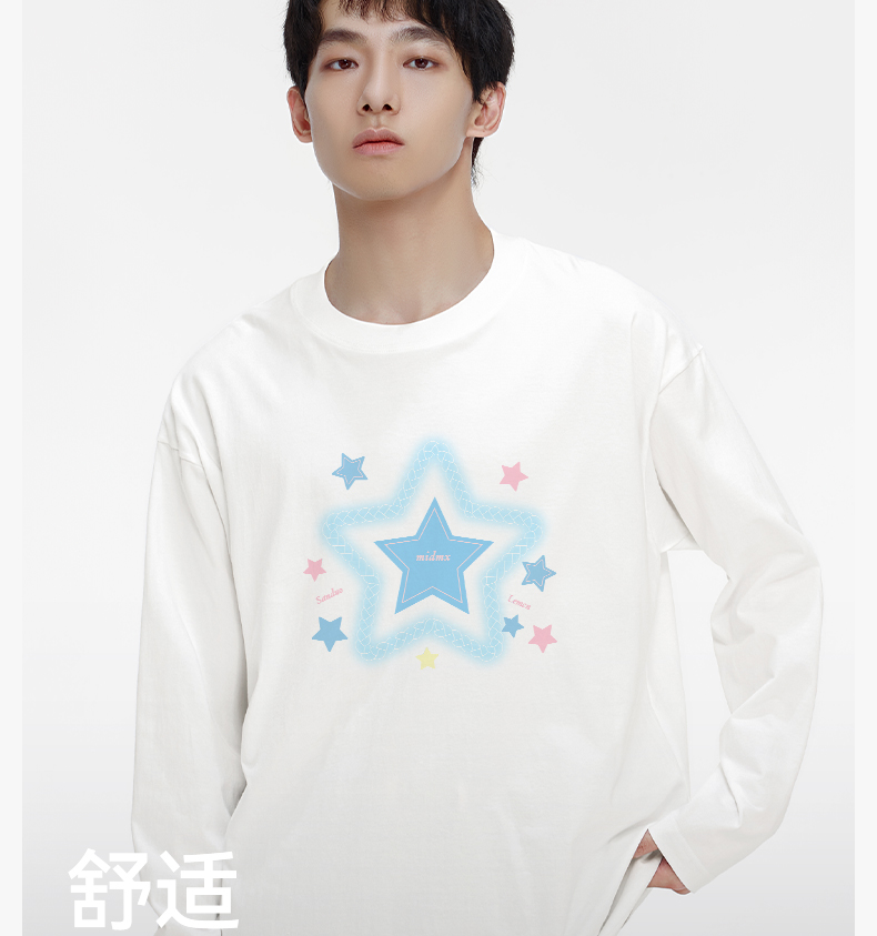 「棉的美学」萌趣卡通纯棉长袖T恤新款设计印花情侣同款打底上衣