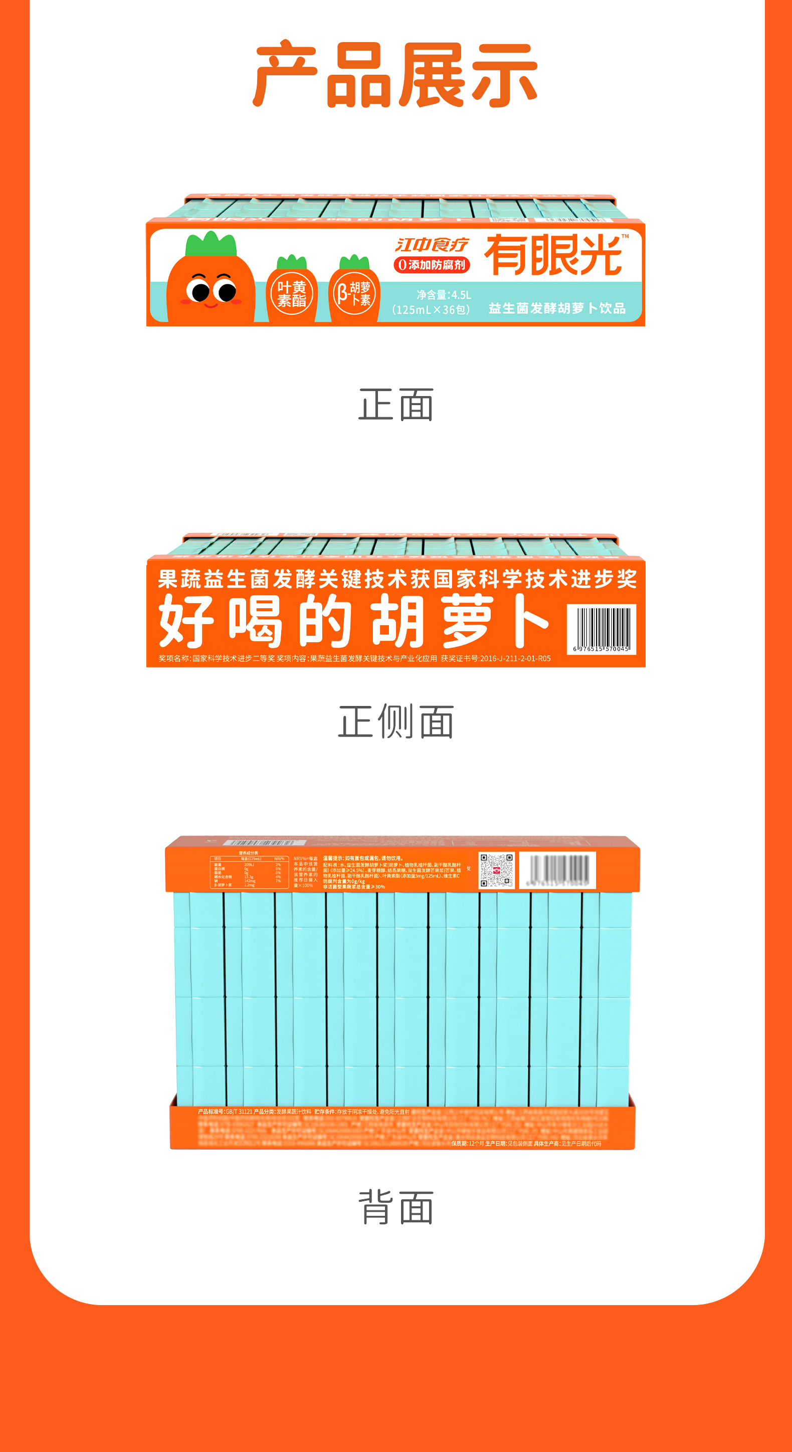 江中食疗有眼光益生菌发酵胡萝卜汁125ml*36盒家庭装—rxs