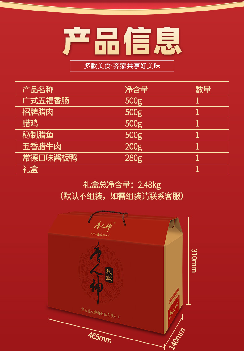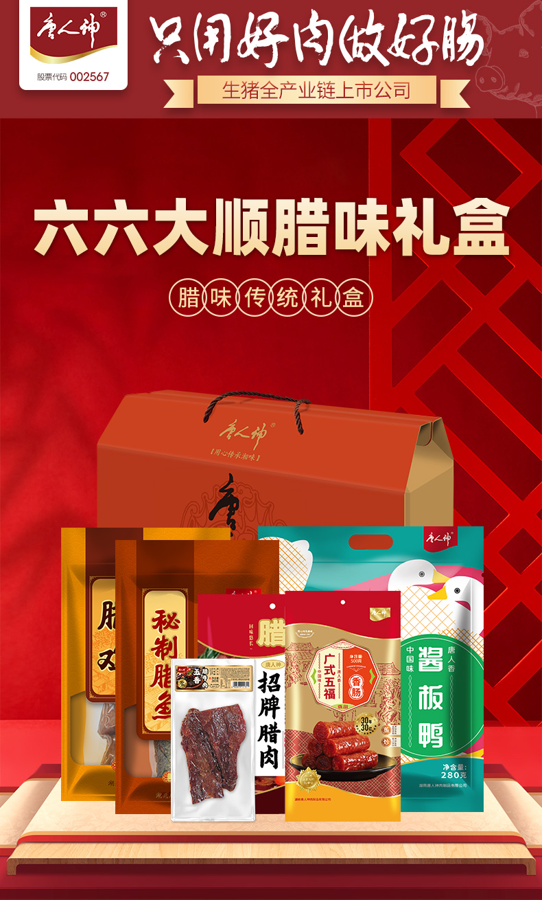 唐人神六六大顺礼盒伴手礼2.48kg香肠腊肉腊鸡腊鱼腊牛肉礼盒