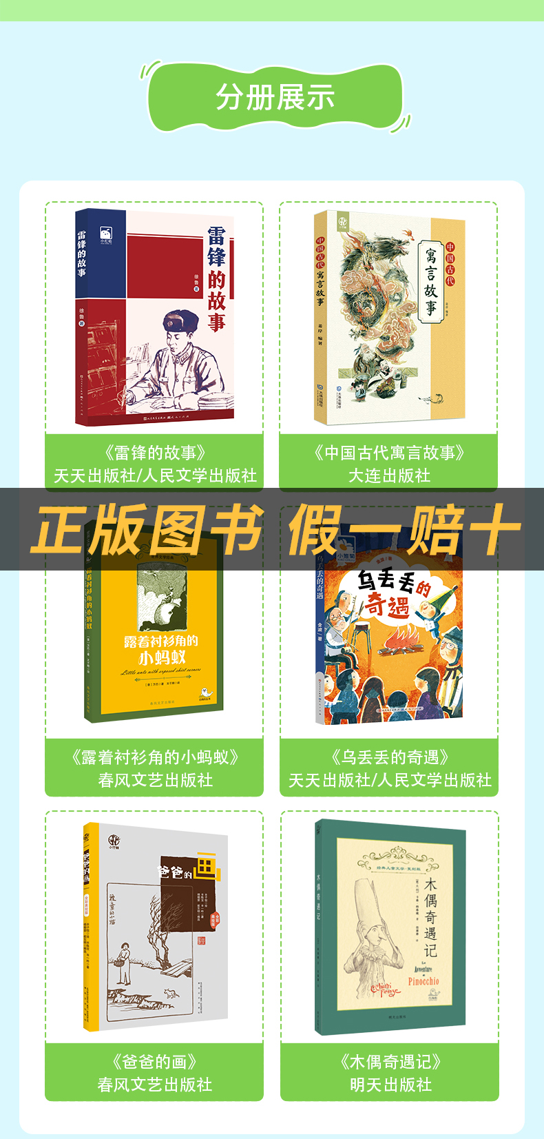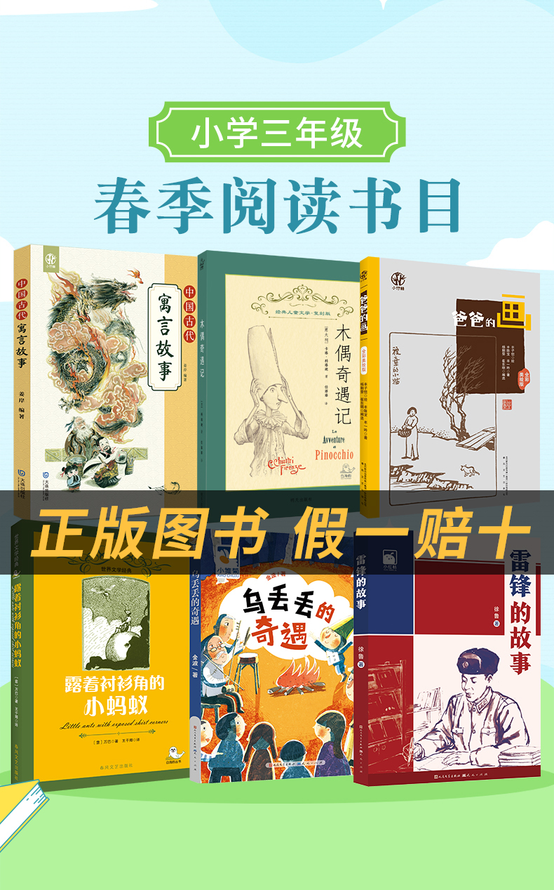 三年级适读《雷锋的故事》《中国古代寓言故事》《露着衬衫角的小蚂蚁》《乌丢丢的奇遇》《爸爸的画》《木偶奇遇记》
