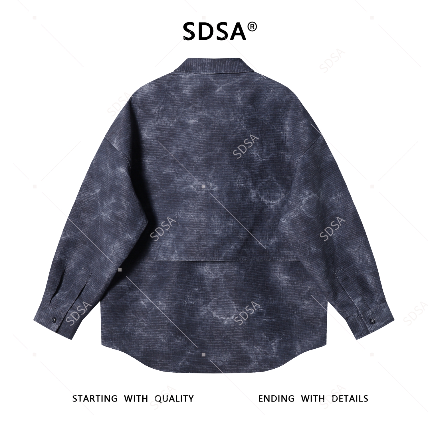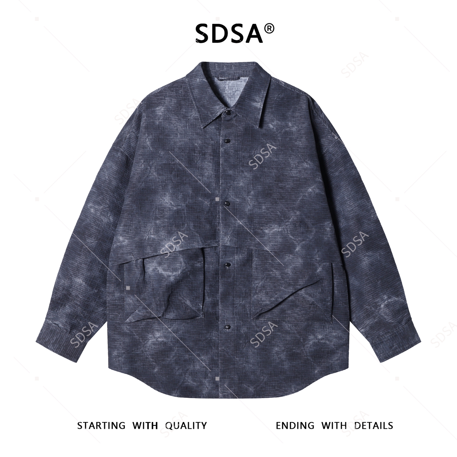 SDSA男士秋冬新款痞帅男装韩式扎染口袋翻领长袖衬衫百搭宽松衬衣