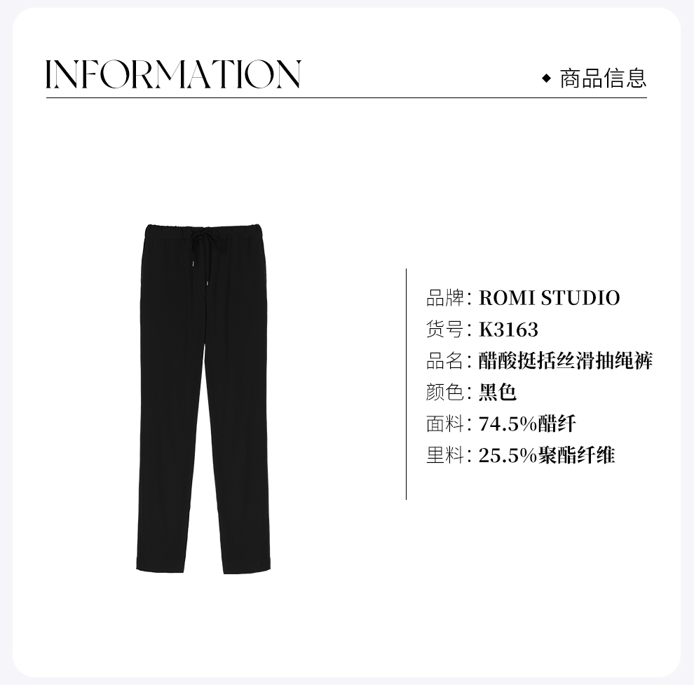 ROMI STUDIO“轻盈利落”高密醋酸挺括丝滑不易皱抽绳直筒裤K3163