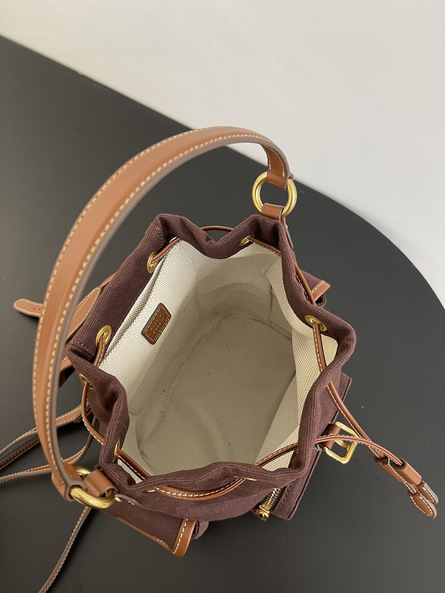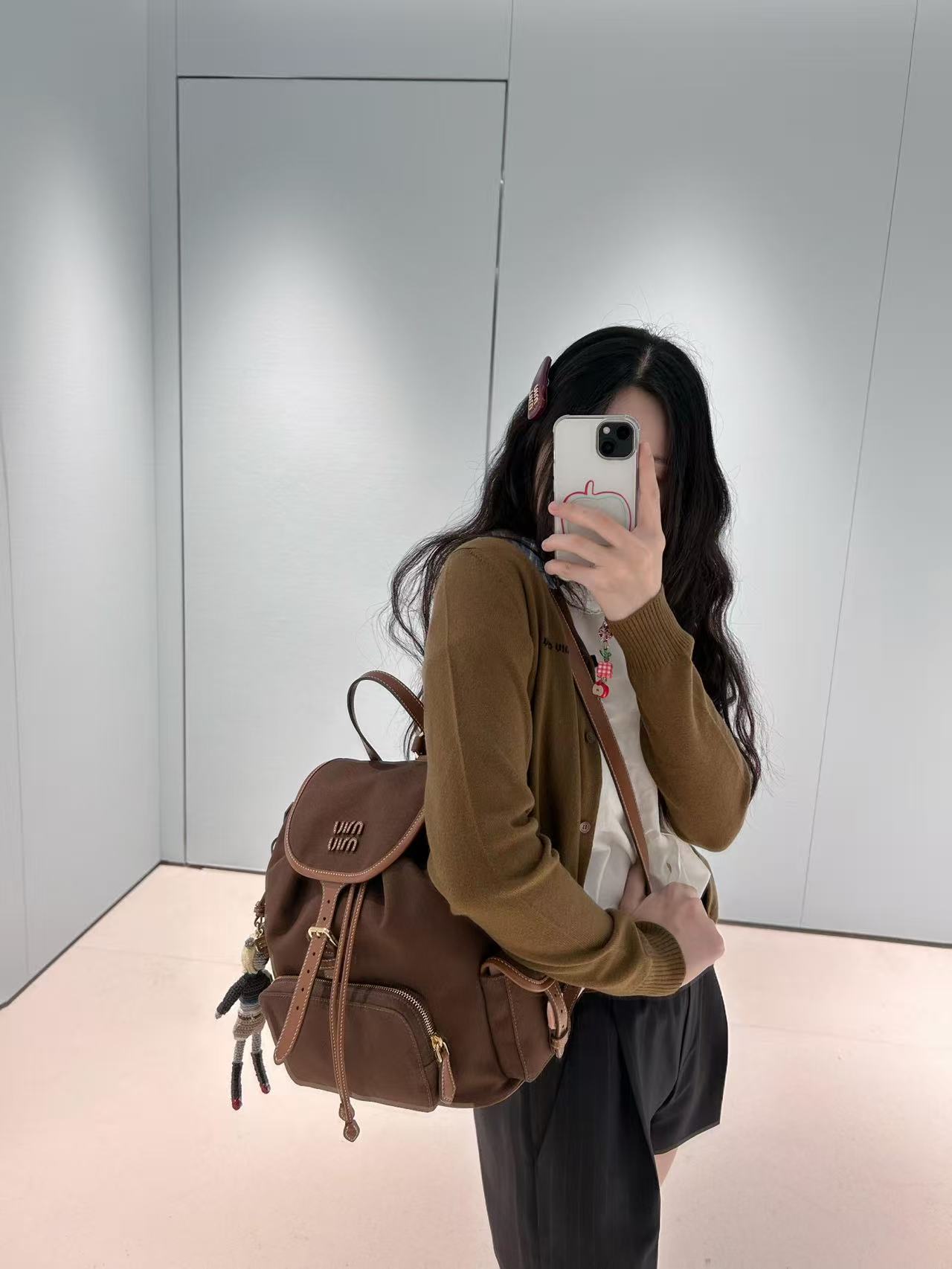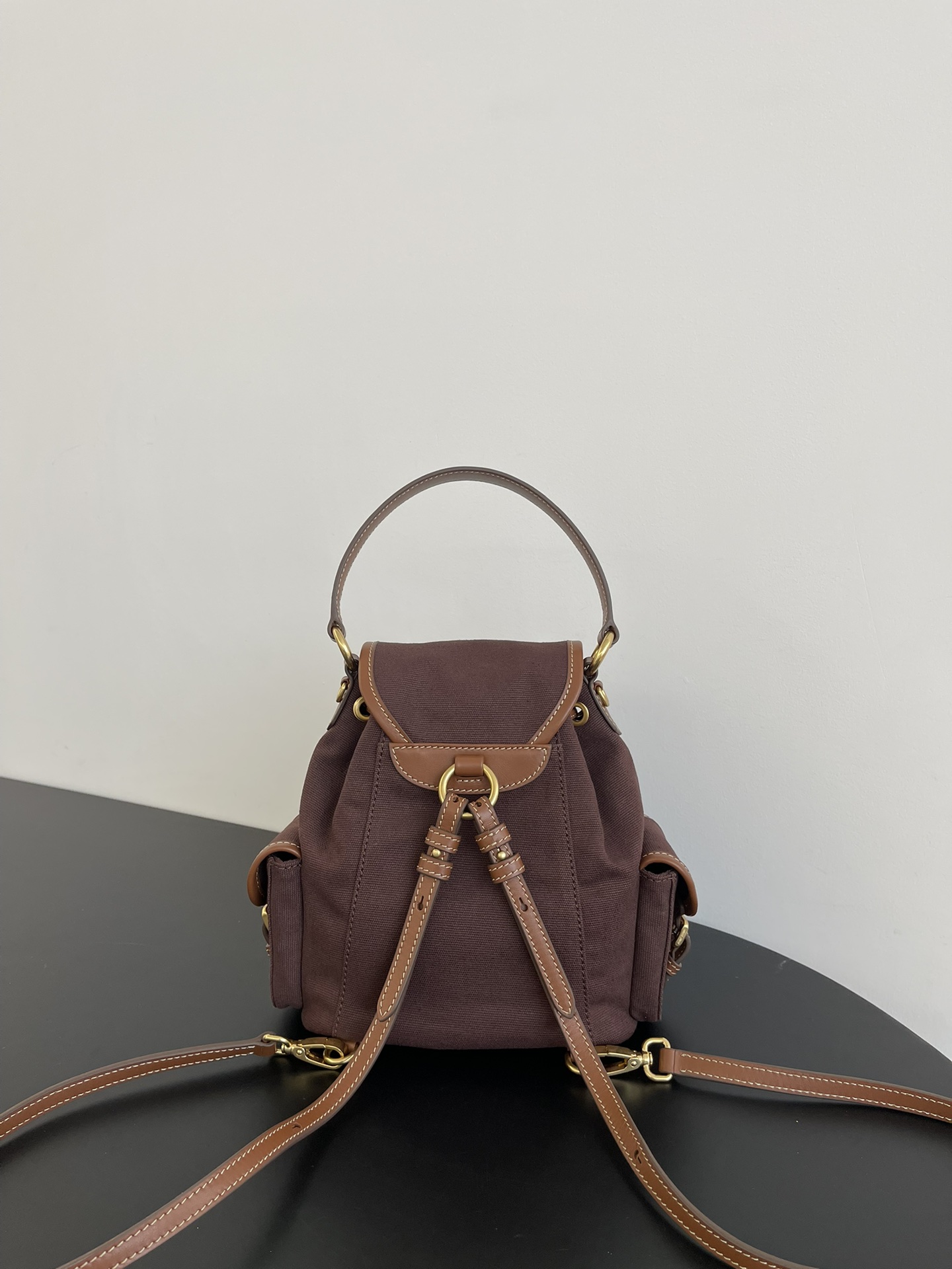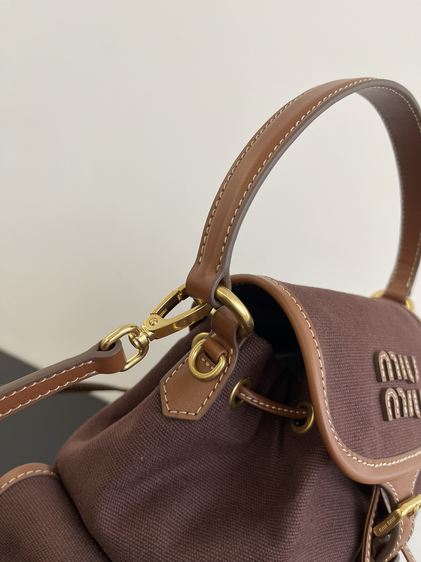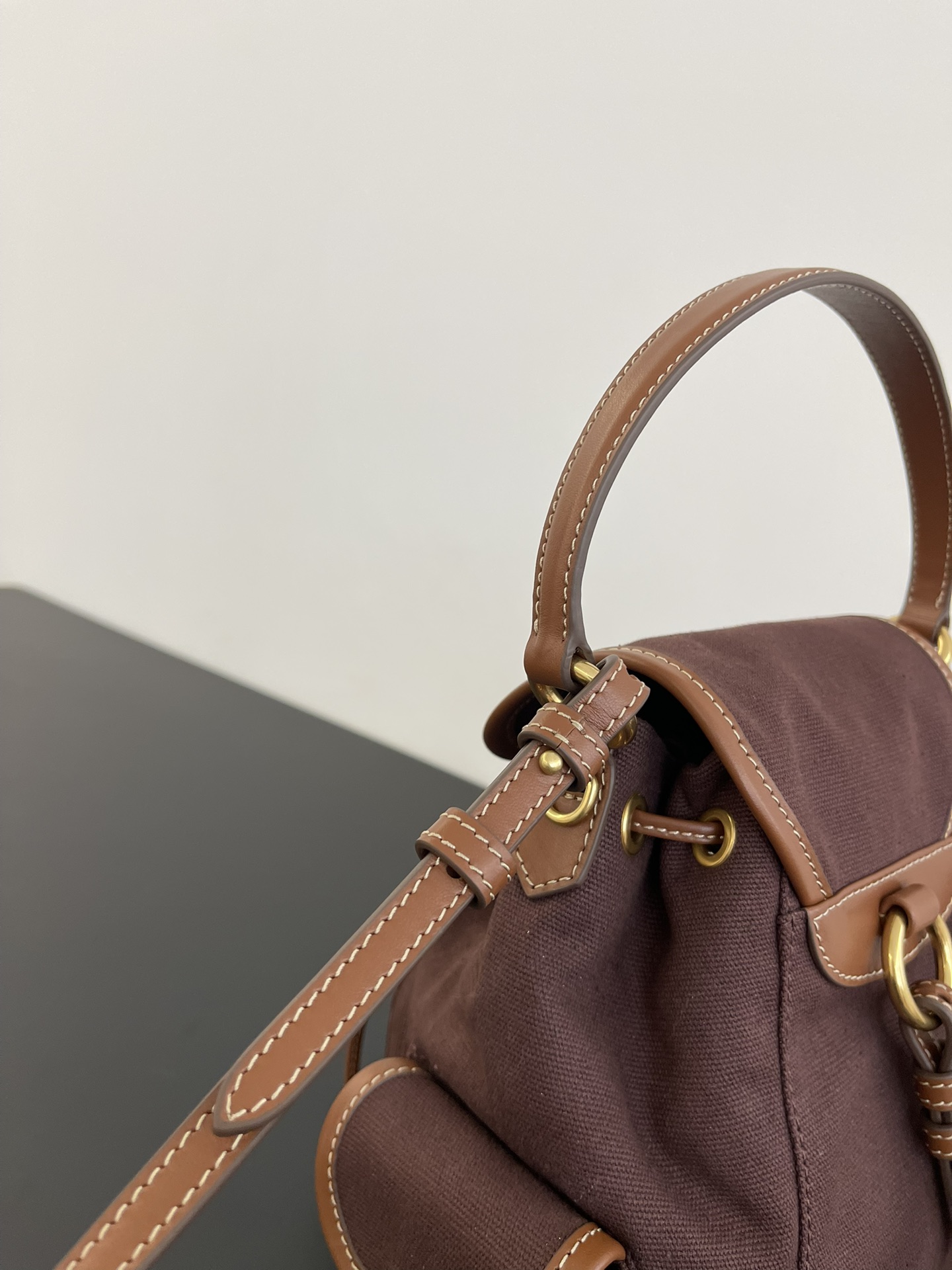 缪缪25ss春季爆火的帆布双肩包 石楠木色,棕色小牛皮搭配帆布的撞色设计,不要太出彩了,轻便又高级感十足,左右两个小口袋也太可爱了叭,手提肩背可随意转换,一包解锁各种风格,姐妹们,冲它不后悔!