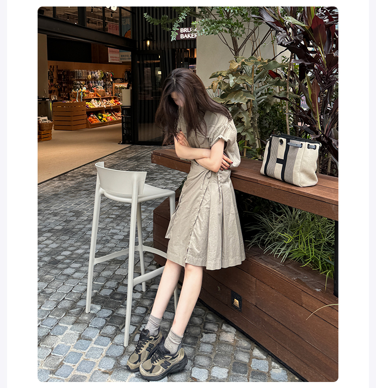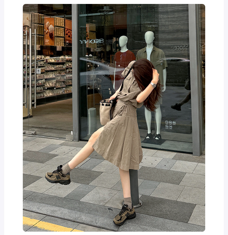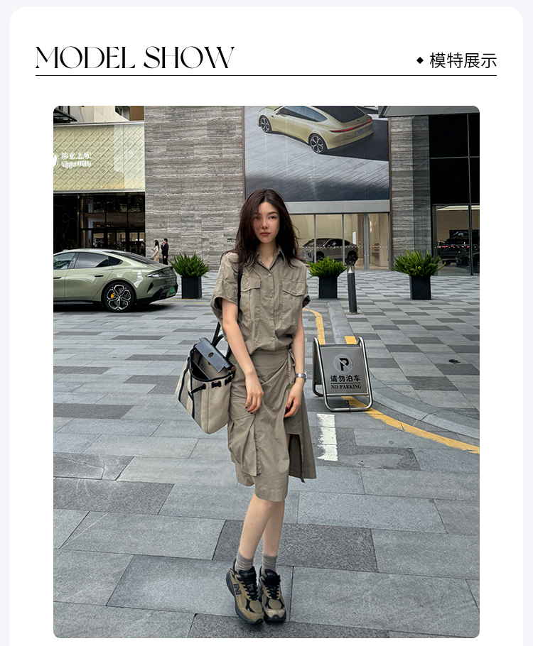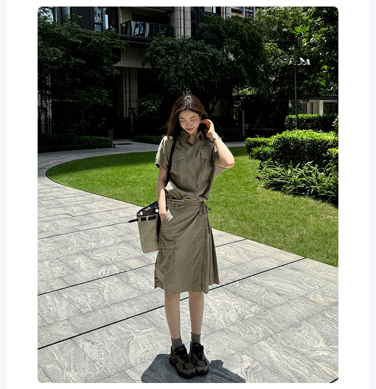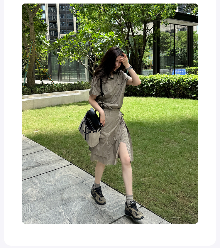 ROMI STUDIO“率性工装”棉麻混纺洗水做旧不规则小A字半裙421X3009