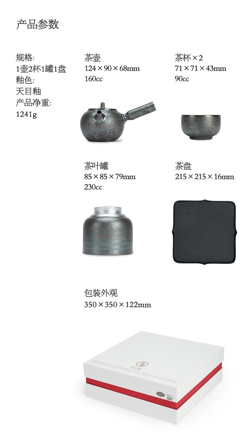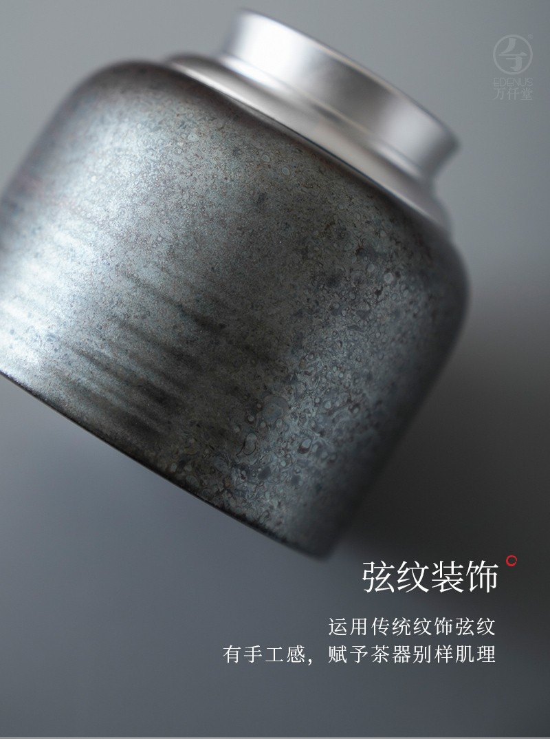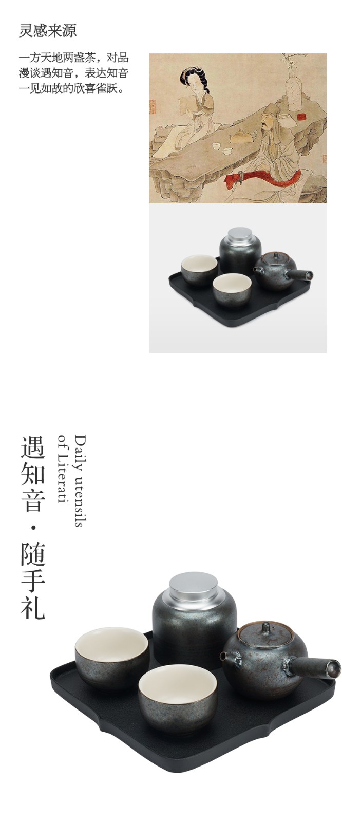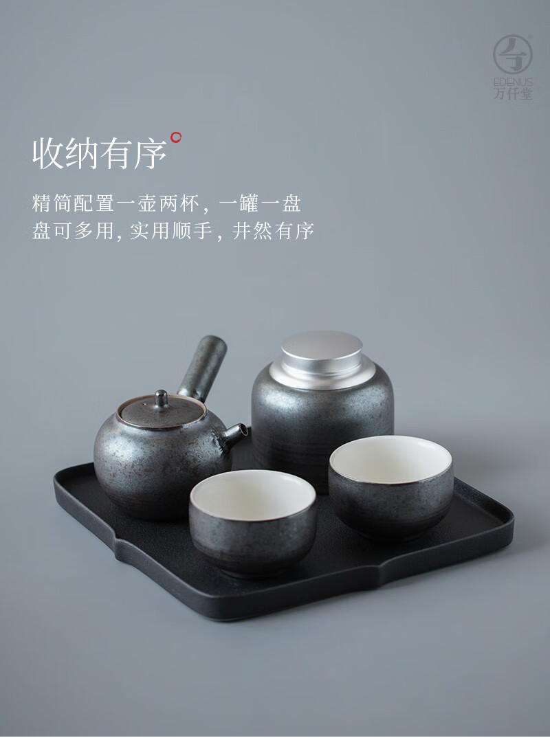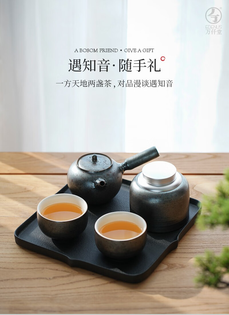 万仟堂(Edenus) 茶具套装陶瓷功夫茶具茶壶茶杯茶盘茶叶罐组 遇知音02 【1壶2杯1罐1盘】天目釉