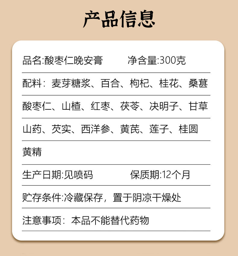 晚安酸枣仁膏英贝施睡眠助眠膏失多懵睡眠质量差晚夜晚好眠正品