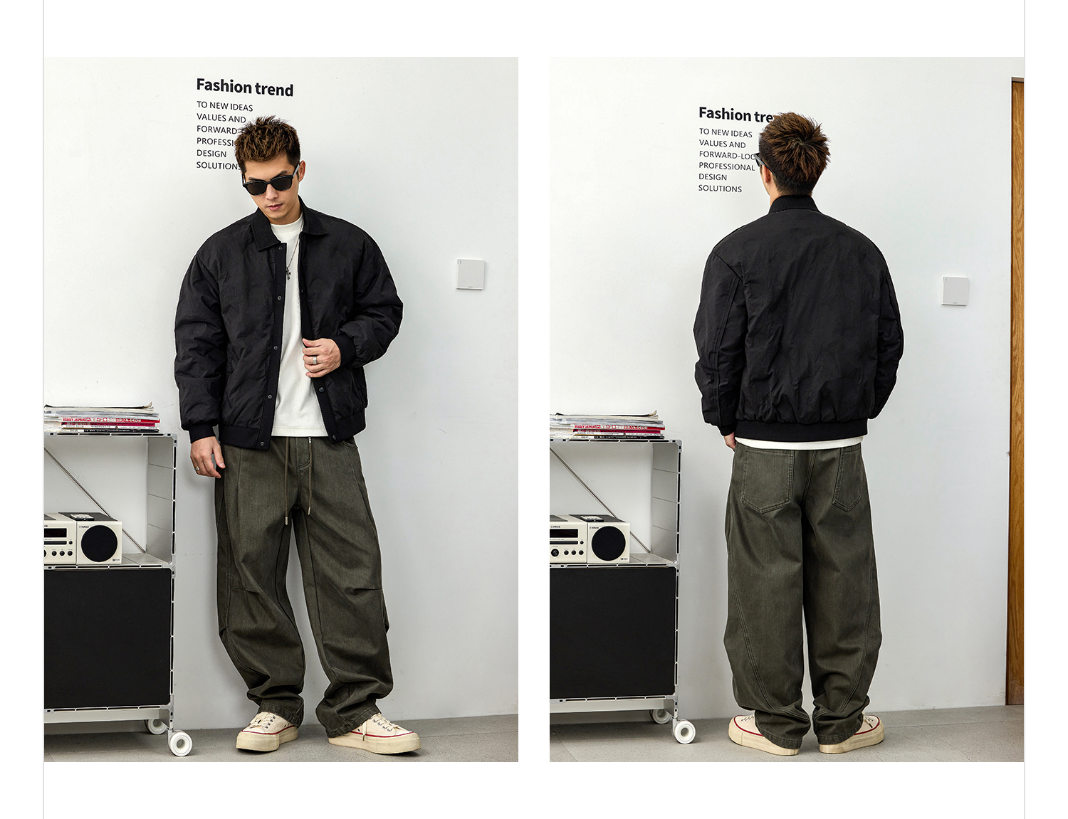 徐太浪【纽扣开襟 白鸭绒】翻领羽绒服男冬季厚款黑色防寒服外套