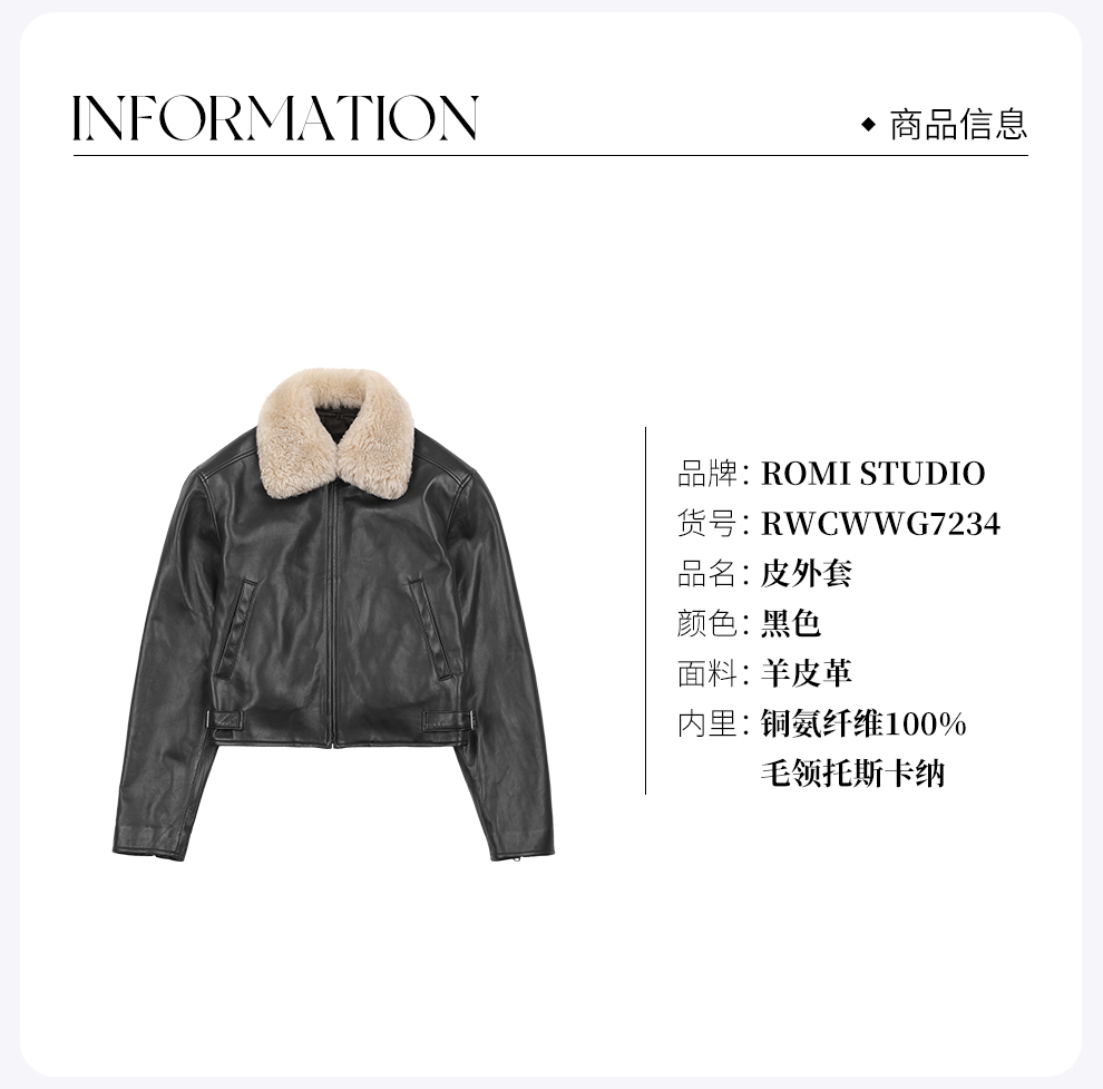 ROMI STUDIO可拆卸山羊绒毛领3M棉全件四季款皮夹克 RWCWWG7234