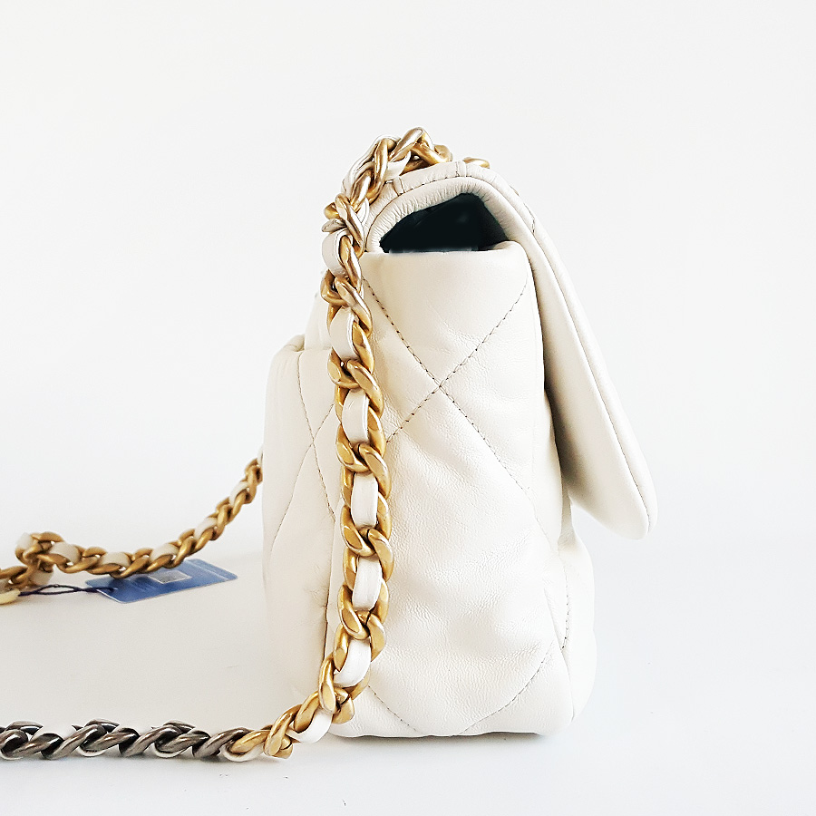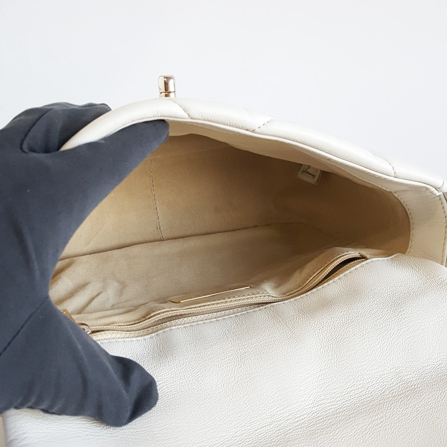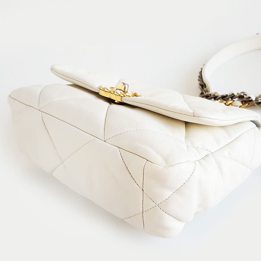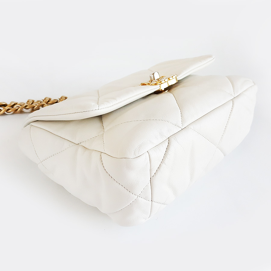 【95新】CHANEL香奈儿19BAGAS1160B0338610601小号白色金扣19BAG单肩手提斜挎包女士 171125NJS01