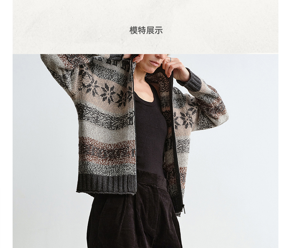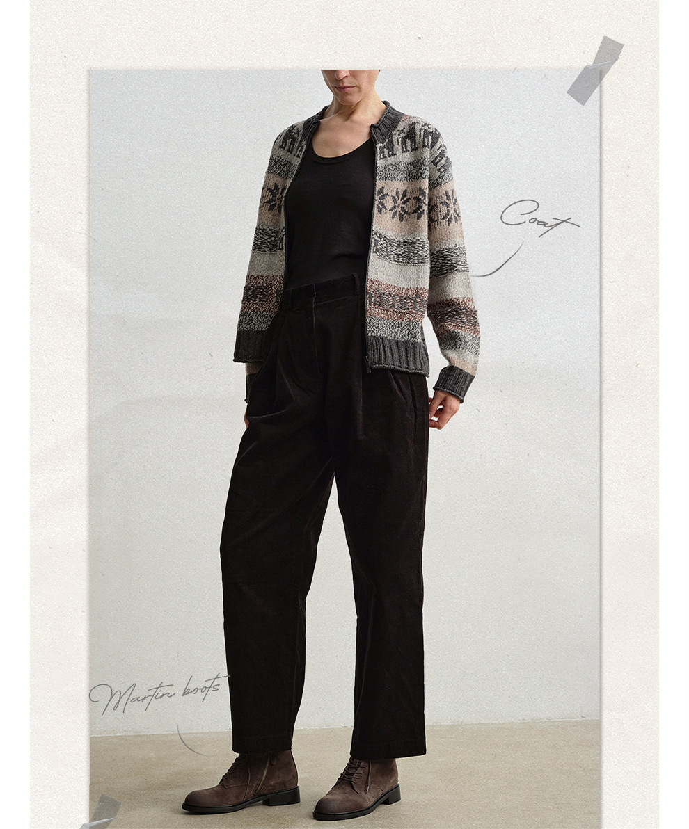 ROMI STUDIO100%羊毛人字纹肌理翻领廓形中长大衣RWCWWG7055
