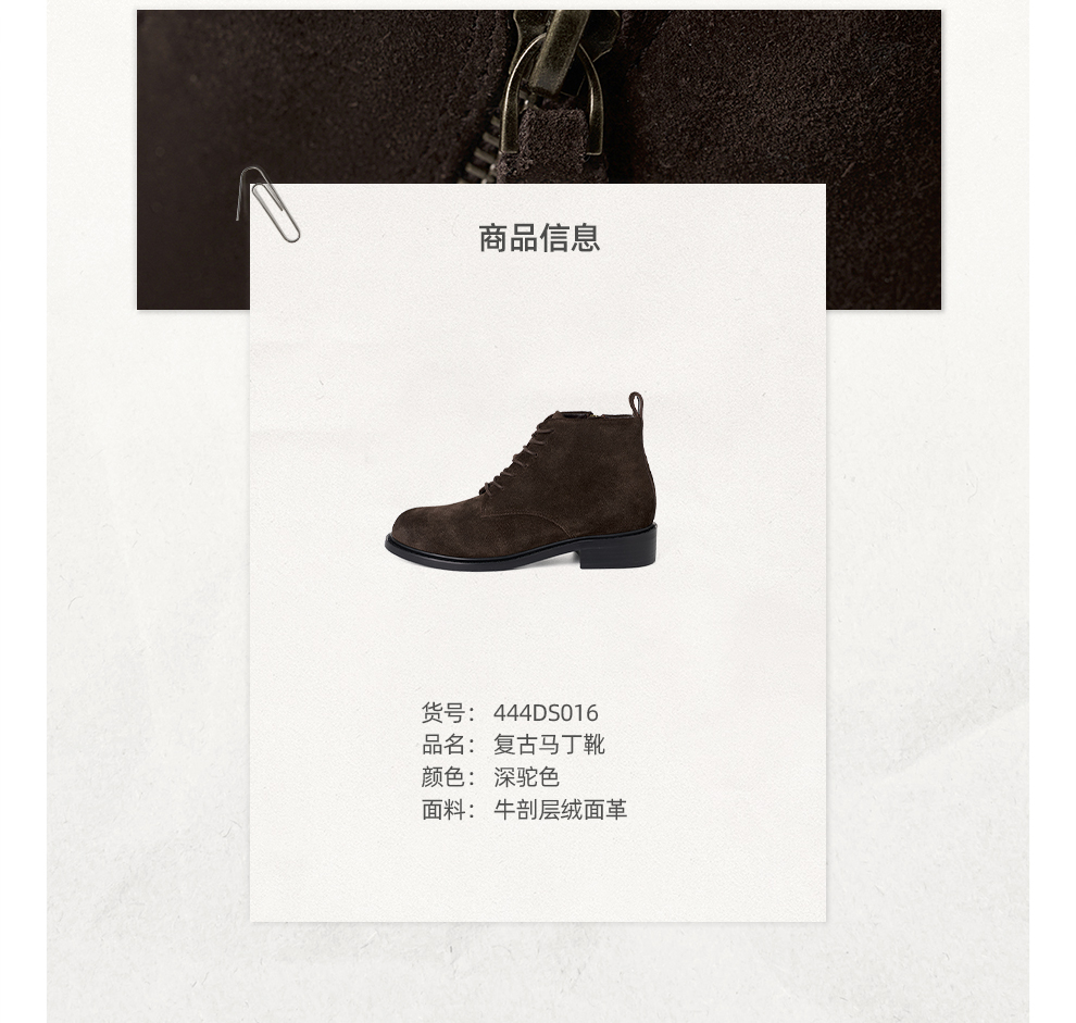 ROMI STUDIO“率性自我”进口绒面牛皮拼羊皮复古马丁靴 444DS016