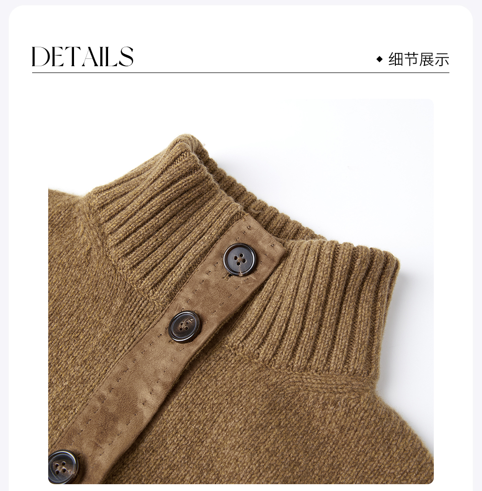 ROMI STUDIO“复古腔调”3针羊毛混纱牛角扣厚毛衣开衫RWCWST6681