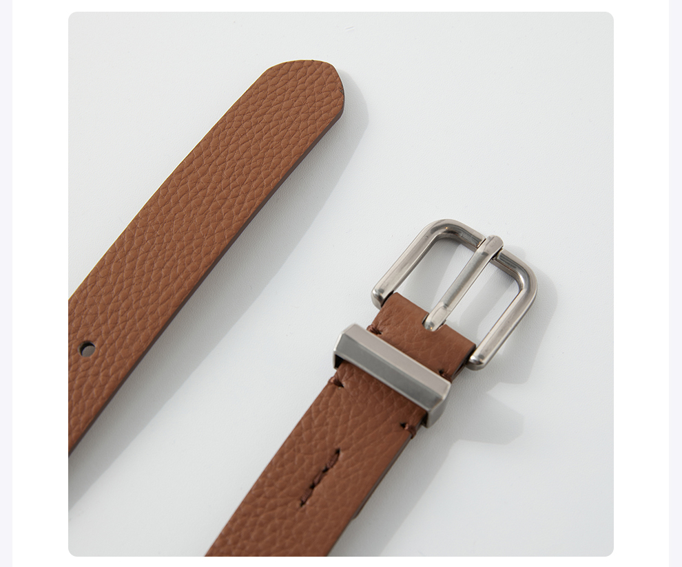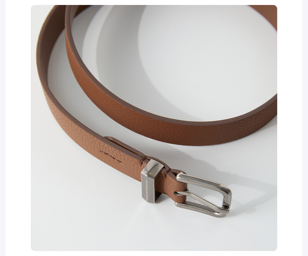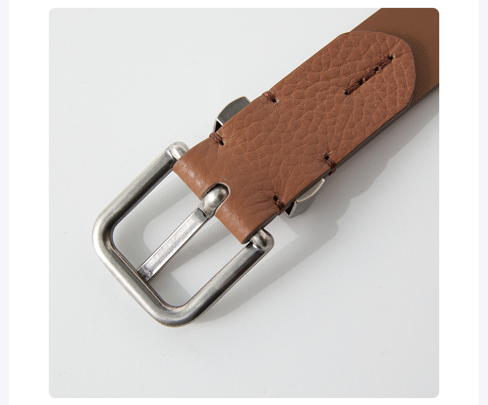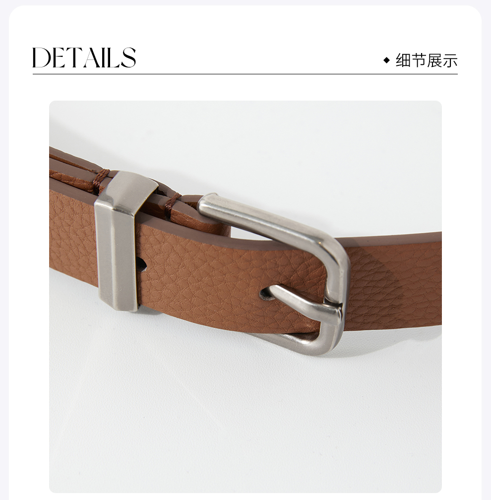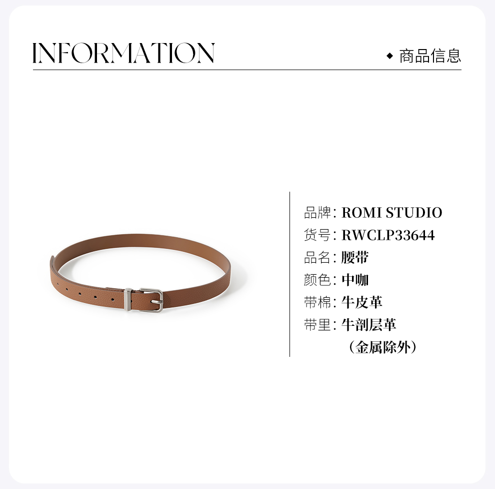 ROMI STUDIO天然牛皮纹复古银扣女士休闲咖色腰带RWCLP33644