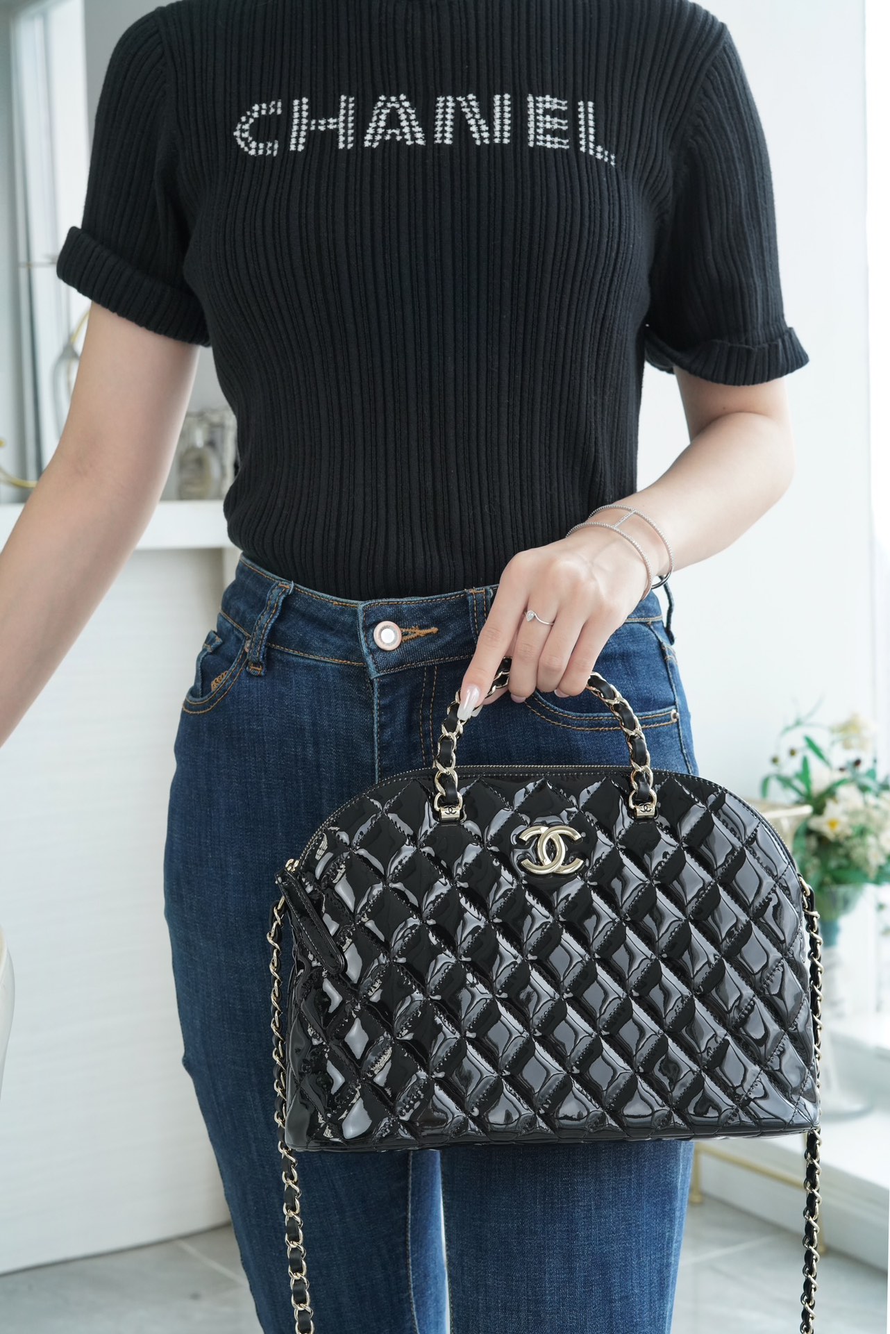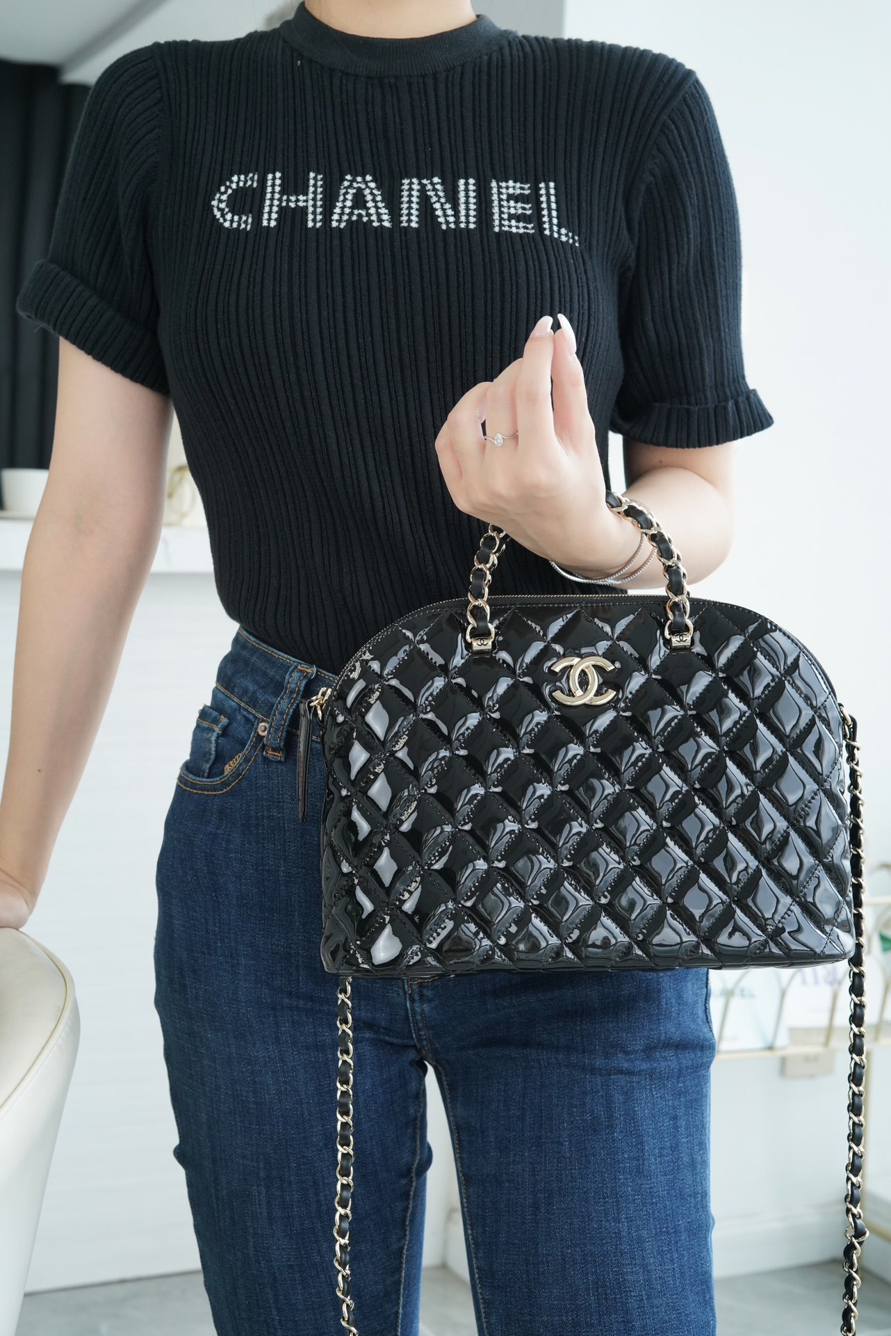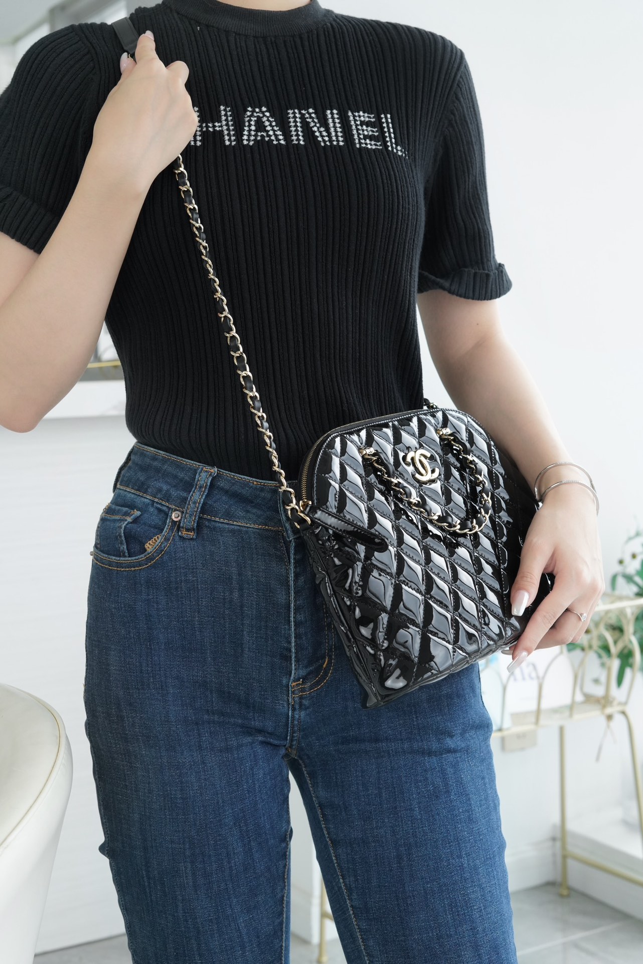 这只漆皮包又激起了满满的少女心!复古的贝壳包搭配皮穿链条,漆皮的材质摩登又高级,亮面的视觉效果大大增加了它的存在感,打理起来也非常省心,又一次狠狠心动了~