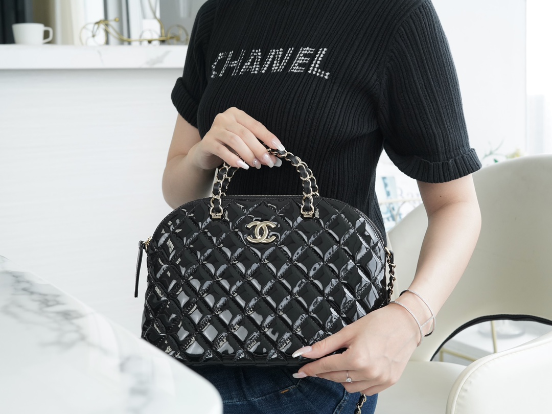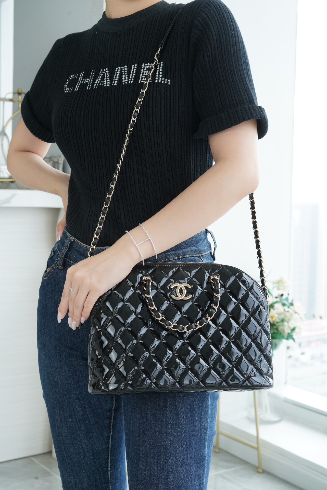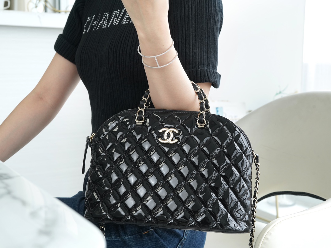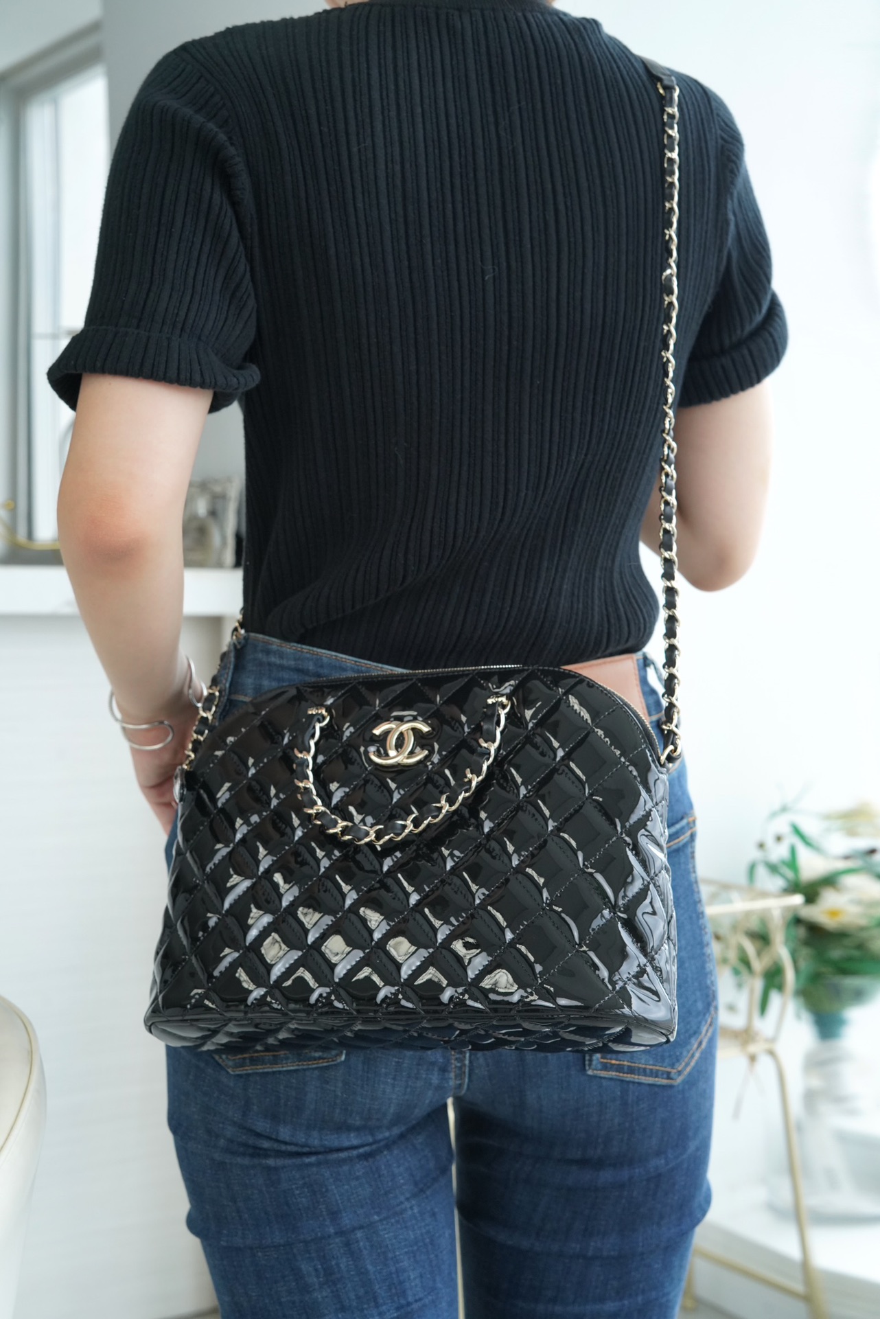 这只漆皮包又激起了满满的少女心!复古的贝壳包搭配皮穿链条,漆皮的材质摩登又高级,亮面的视觉效果大大增加了它的存在感,打理起来也非常省心,又一次狠狠心动了~