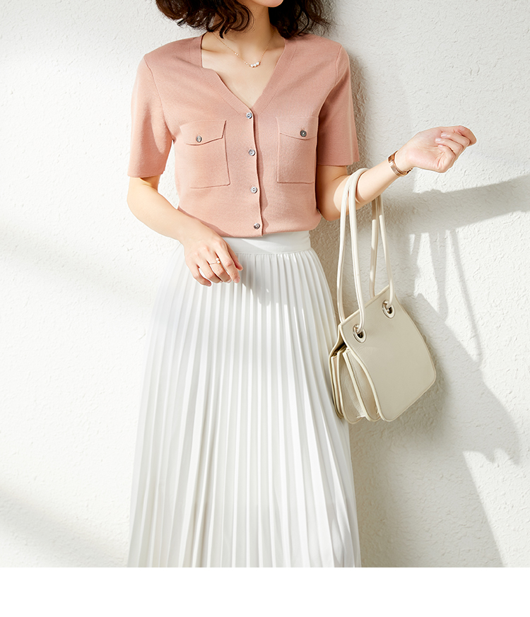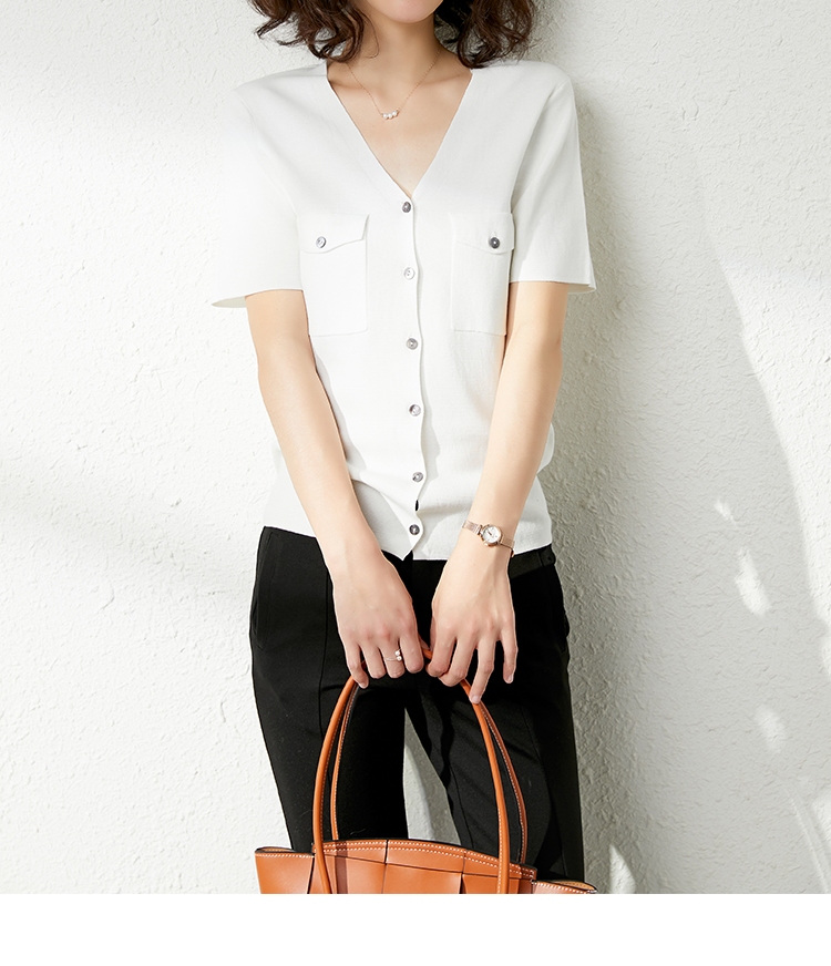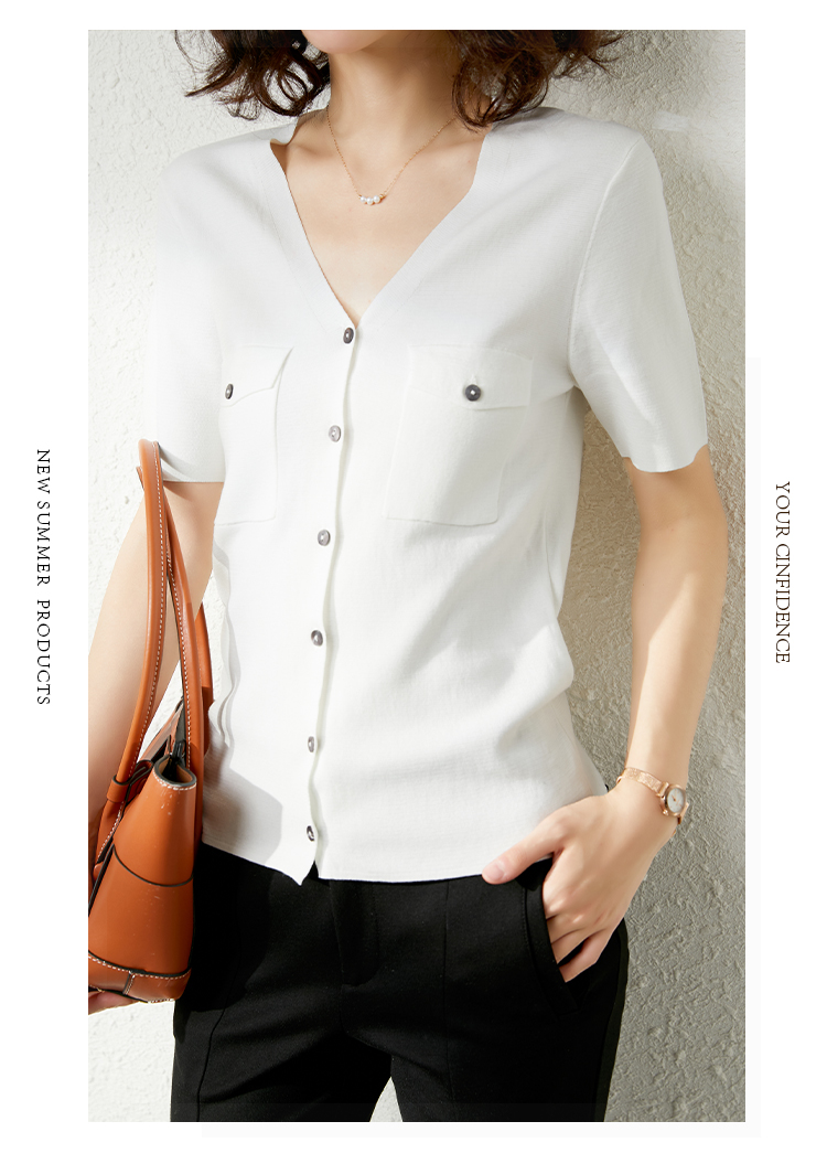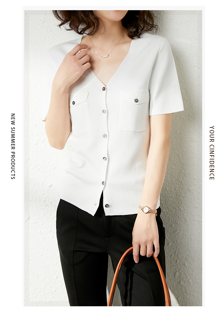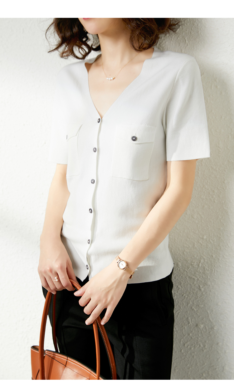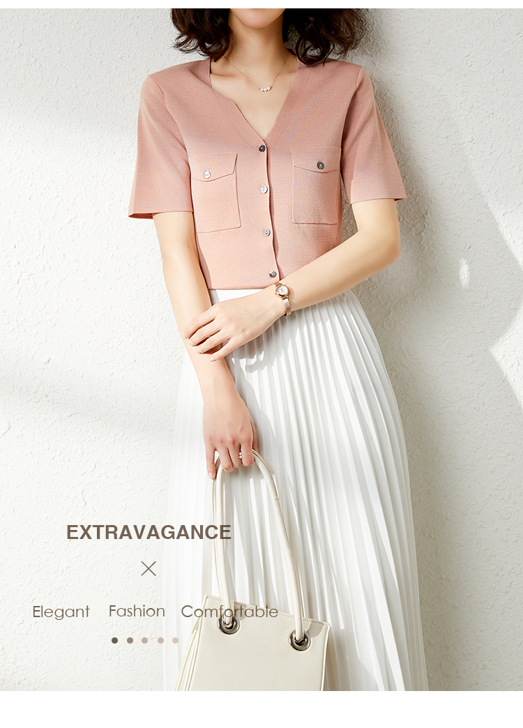 UG【现货7天】减龄气质薄款针织衫 2022夏季新款V领短袖单排扣开衫外套女